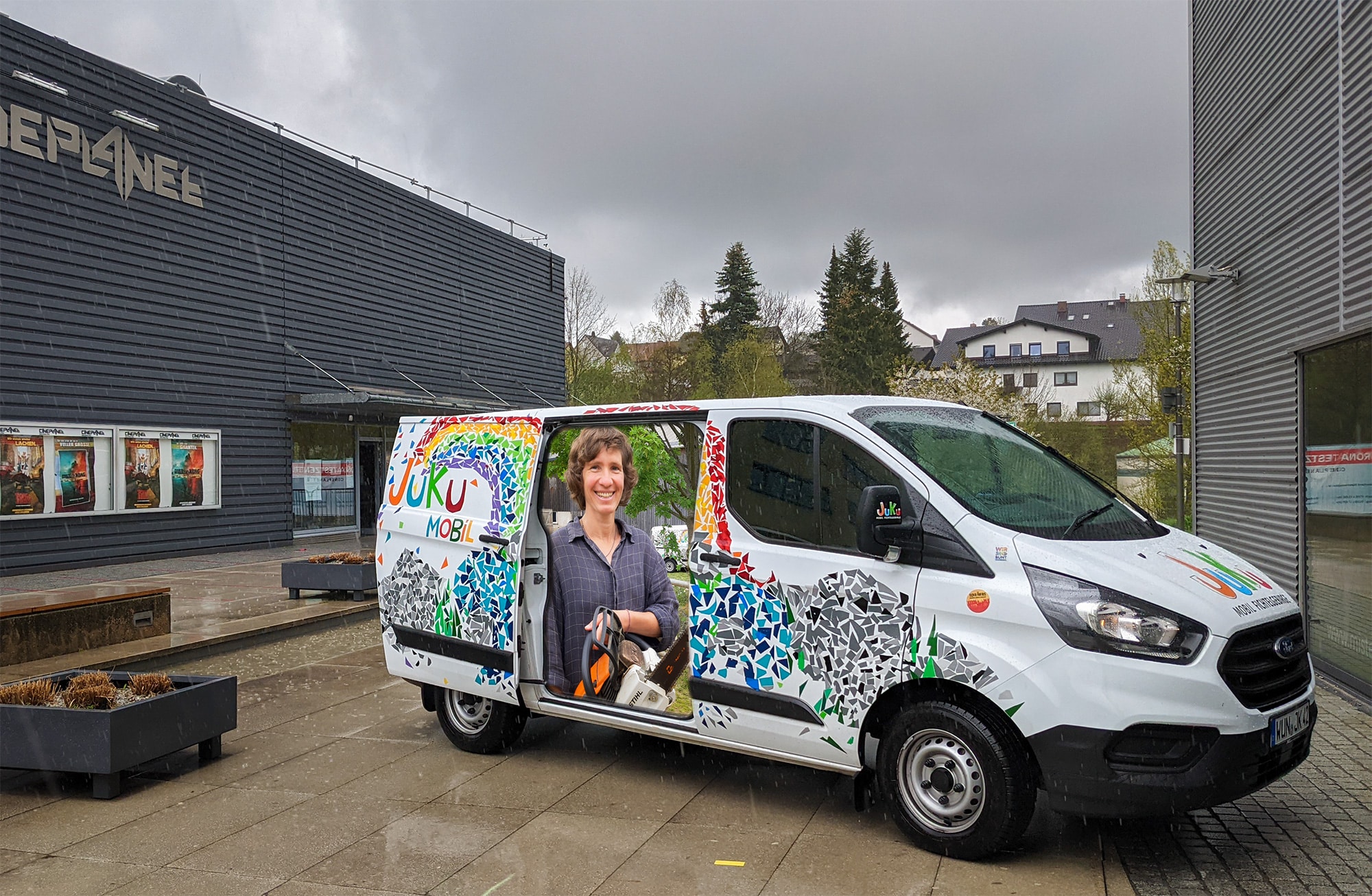 Zum Auftakt ist die Wunsiedler Künstlerin Stephanie Huber mit dem JuKu-Mobil unterwegs, sie ist in der Region z.B. mit dem Friedensengel am Marktredwitzer Friedhof oder dem großen Holz-Sofa im Waldershofer Stadtpark aufgefallen. Aber keine Angst, für die Workshops am Wochenende lässt sie die Motorsägen in der Werkstatt und bringt stattdessen Farbe und Pinsel mit.