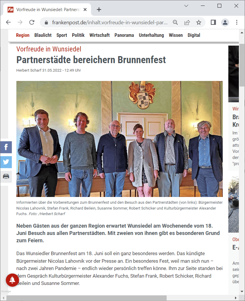 Frankenpost: Partnerstädte bereichern Brunnenfest