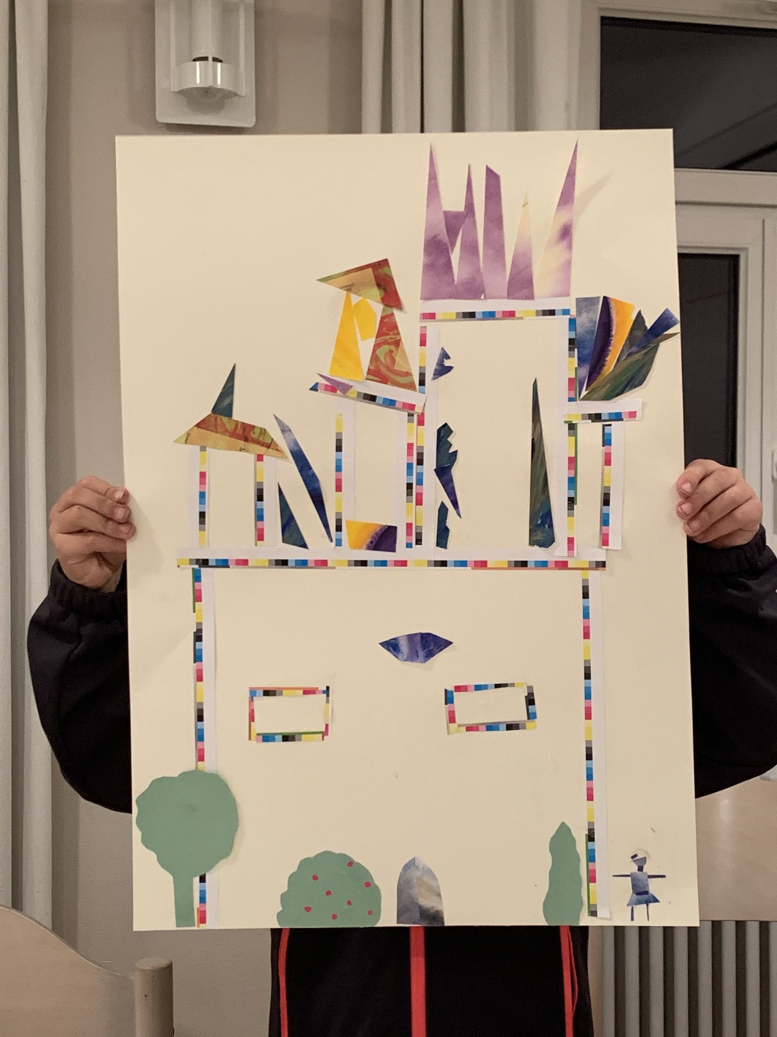 Mithilfe der Schneidemaschine wurden aus alten Papieren, viele bunte Schnipsel. Neben dem Kleben und Gestalten hatten die Kinder Spaß daran, die Schneidemaschine selbst zu bedienen. Es sind Villen als Collage, Papierschiffe und Bücher entstanden. 😀