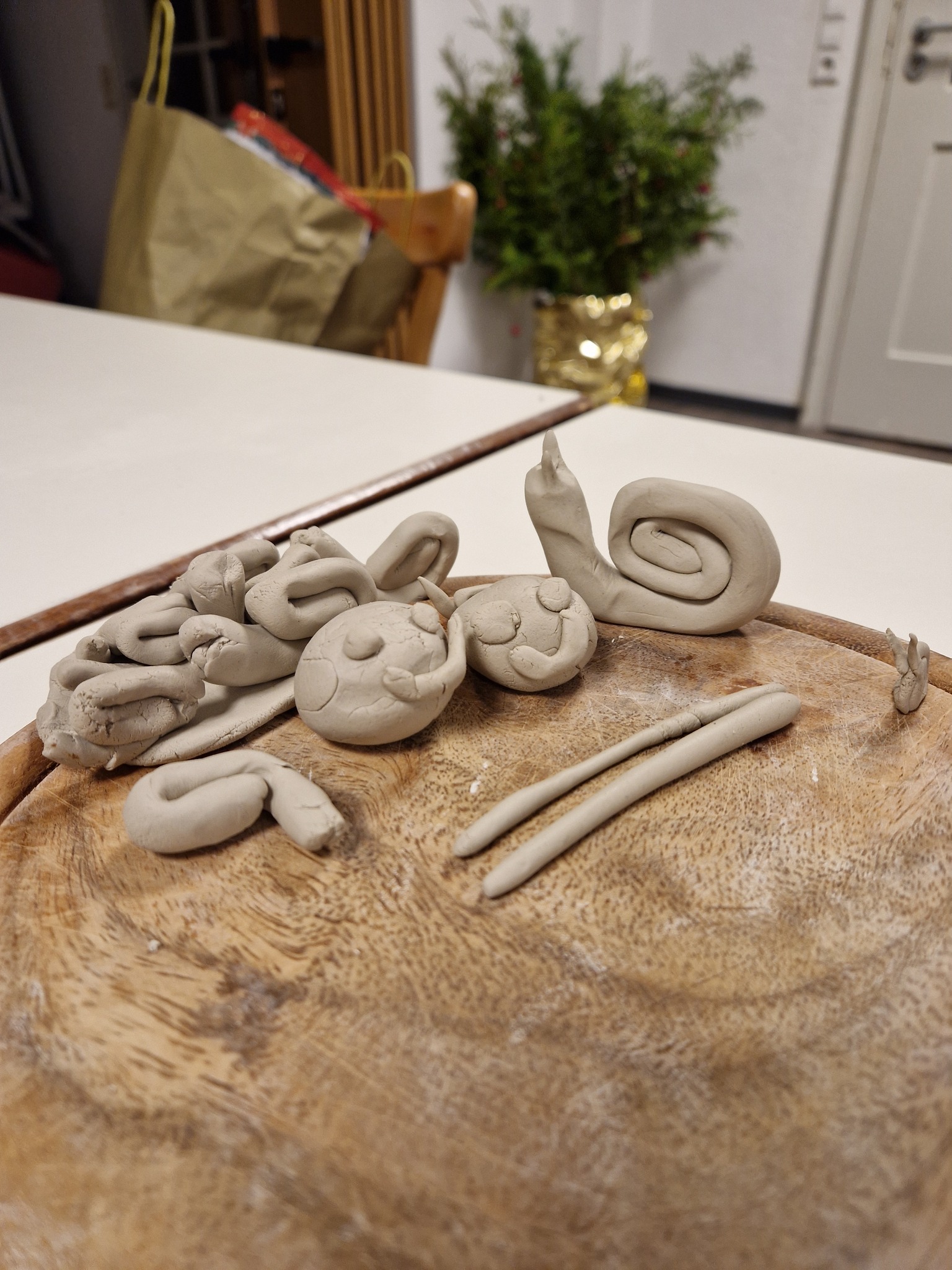 Heute haben die Kinder aus Ton ihre eigenen fantastischen Figuren geformt – von Kätzchen, Hunden, Schweinen und Schnecken...