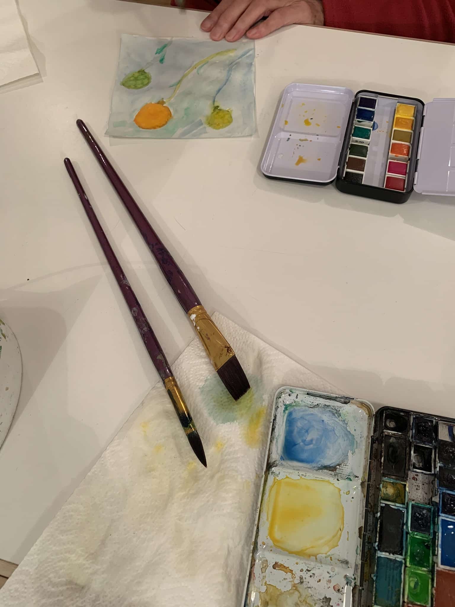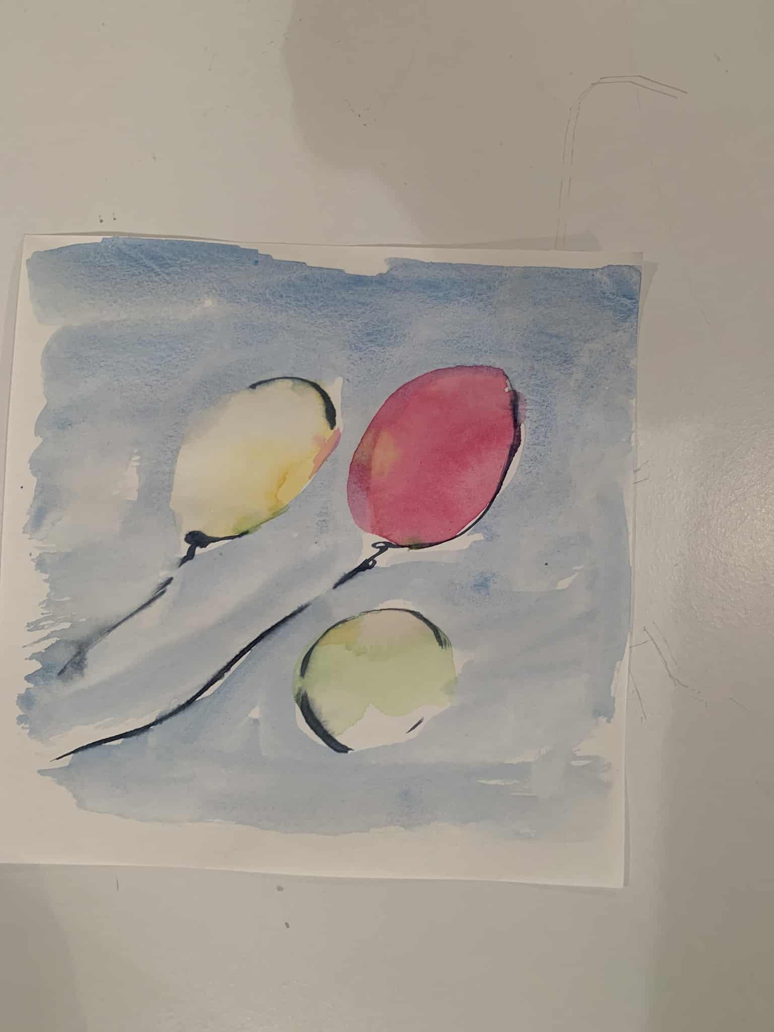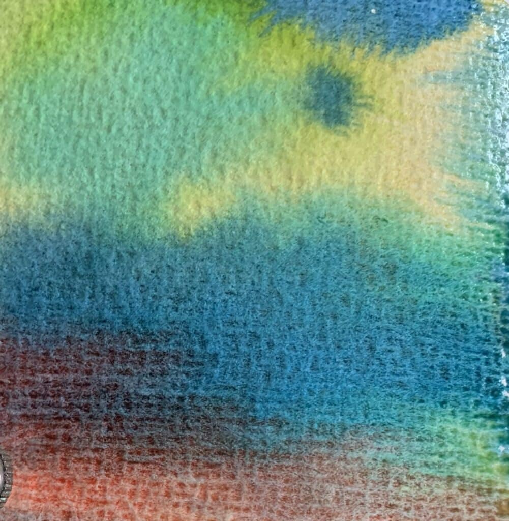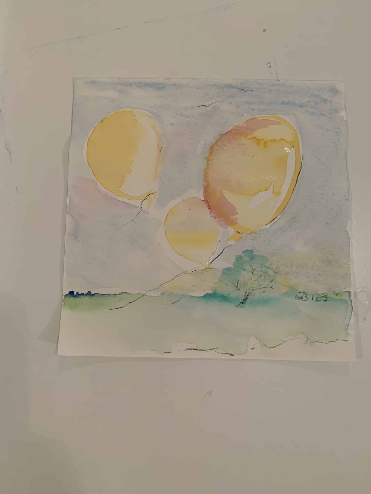 Die Aquarellfarbe wurde mit viel Wasser gemischt. Beim Malen lief im Hintergrund Musik und es war besonders faszinierend die Farbverläufe zu beobachten.