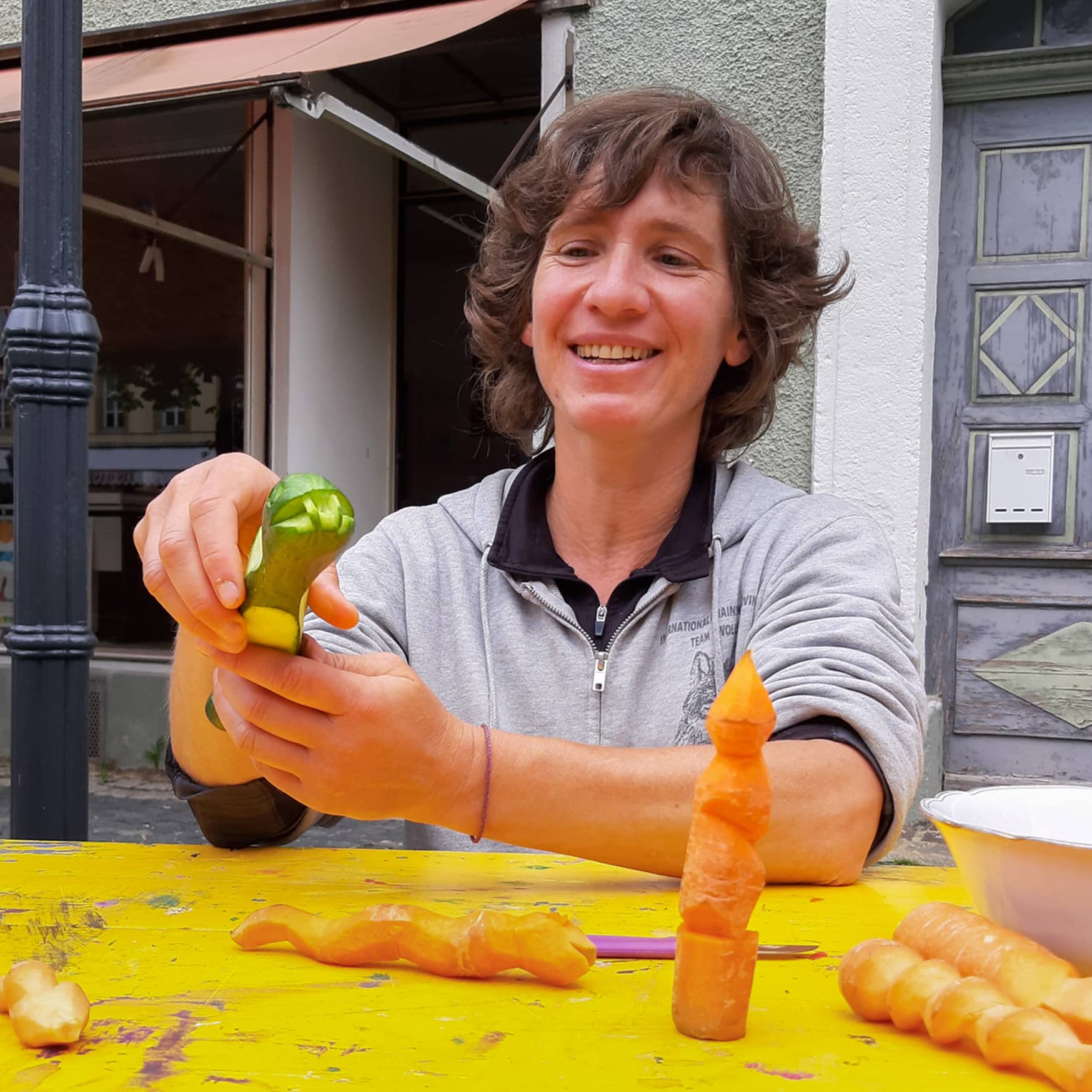 Ist gelernte Holzbildhauerin, kommt aus München-Stuttgart-Würzburg-Bischofsheim-Freising und betreibt seit 2 Jahren in Wunsiedel eine Holzbildhauerinnenwerkstatt. Dort fertigt sie Kunstwerke und Auftragsarbeiten an, entwirft Pläne für Stammskulpturen, die sie dann vor Ort mit der Kettensäge umsetzt.