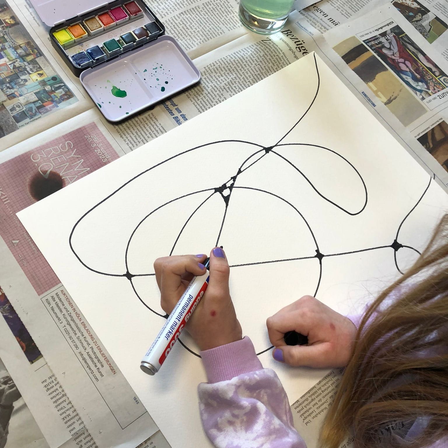 Mit vollem Körpereinsatz wurden in der Kita Arche Noah großformatige Bilder gestaltet. Zunächst wurden Körperübungen gemacht, um Linien...