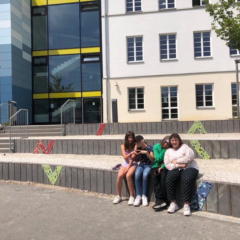 Buntes Mosaik für den grauen Pausenhof in der Mittelschule in Wunsiedel.