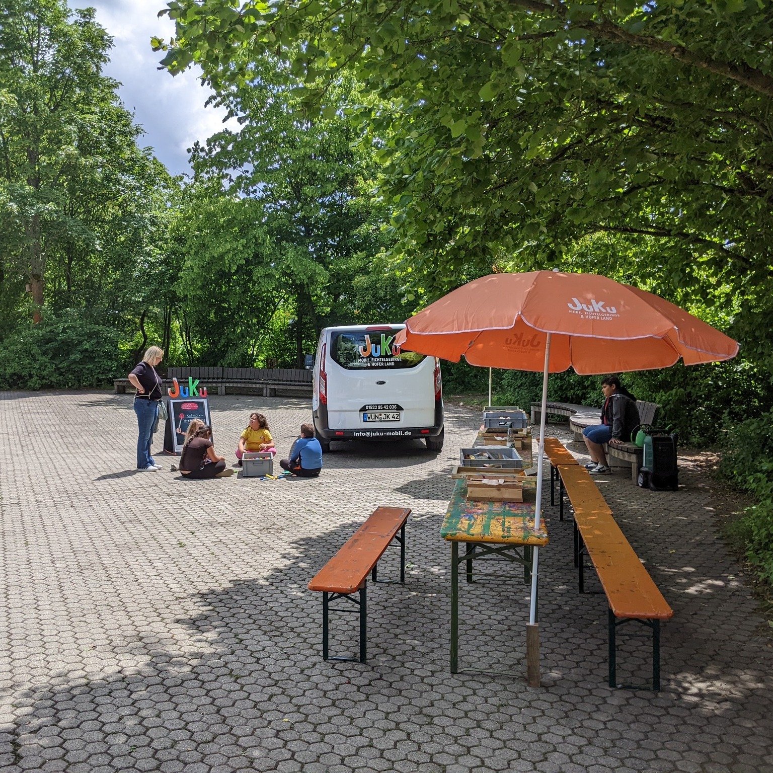 ...Das JuKu-Mobil hat immer wieder mal eine kleine Siebdruckwerkstatt im Gepäck. Sowohl mit Lena Wenz, als auch Franziska...