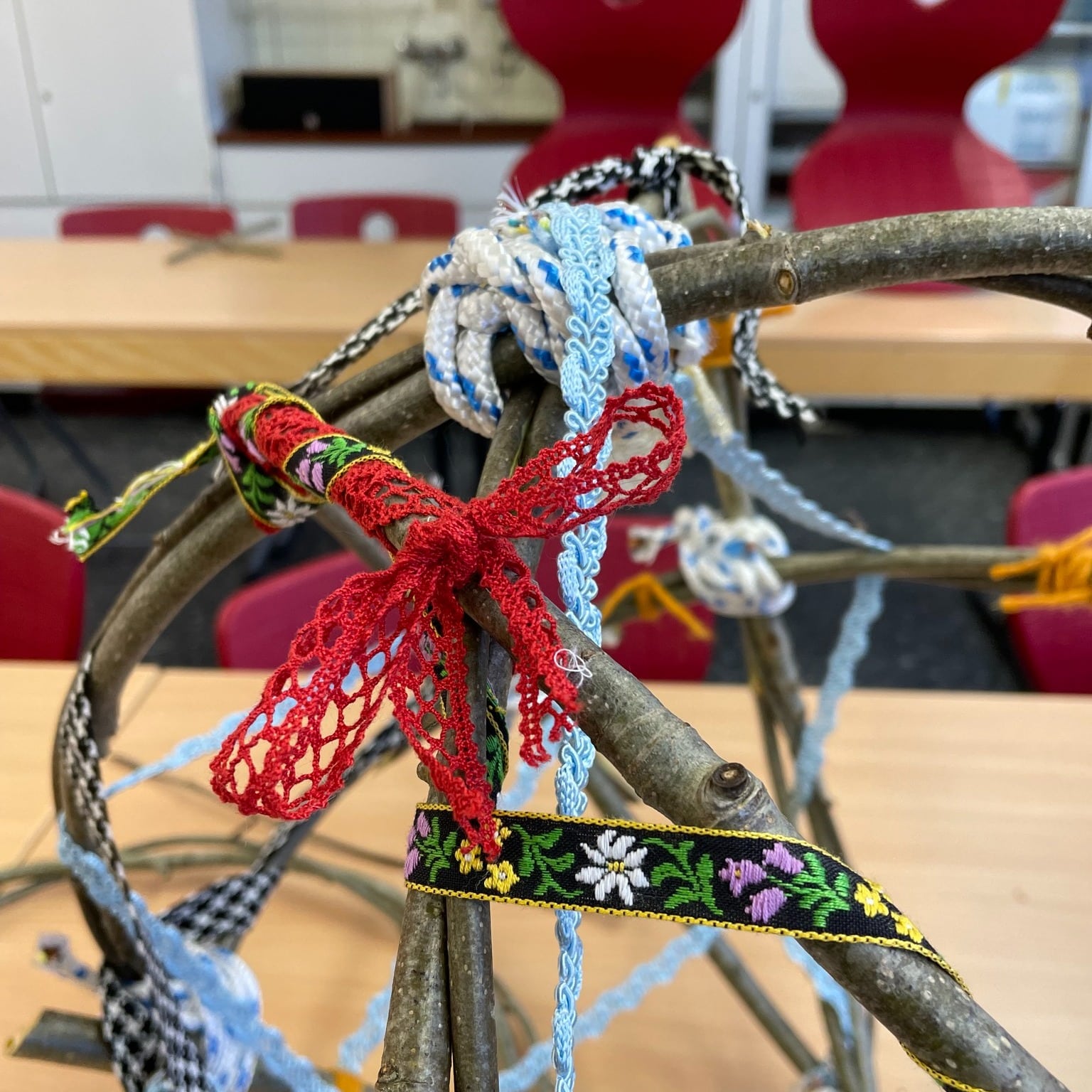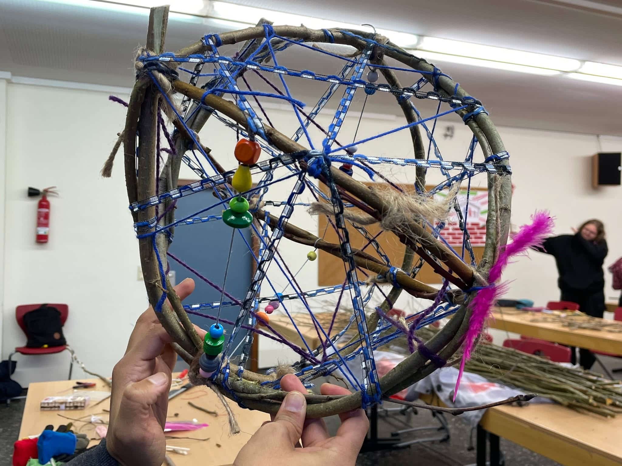🌿 Kreativität mit Naturmaterialien! 🌈 Bei unserem Workshop hatten die Kinder die Möglichkeit, mit langen, dünnen und biegsamen Ästen zu arbeiten. Nachdem ihnen gezeigt wurde, wie man feste Knoten bindet, entstanden farbenfrohe Traumfänger, Bastelkörbe und individuelle Strukturen. 🎨🌟