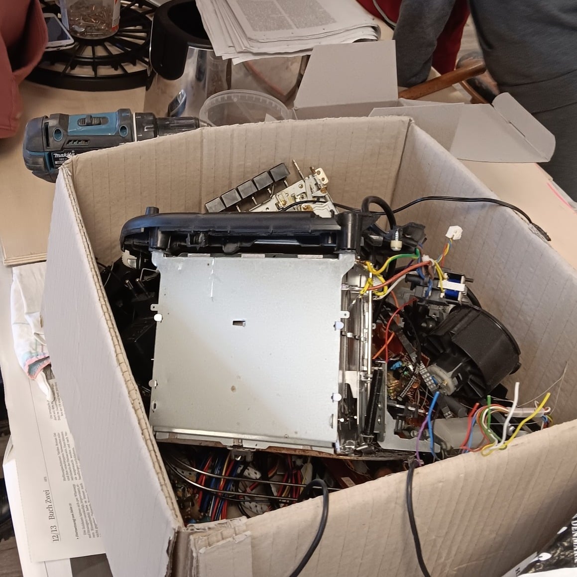🛠️ Die Stimmung war heute mehr als gut und voller Motivation, als wir uns dem Abenteuer des Elektroschrott-Zerlegens widmeten. Handys, Toaster, Bohrmaschinen und Fahrräder wurden auseinandergenommen, und aus den Einzelteilen entstanden einzigartige Kunstwerke!