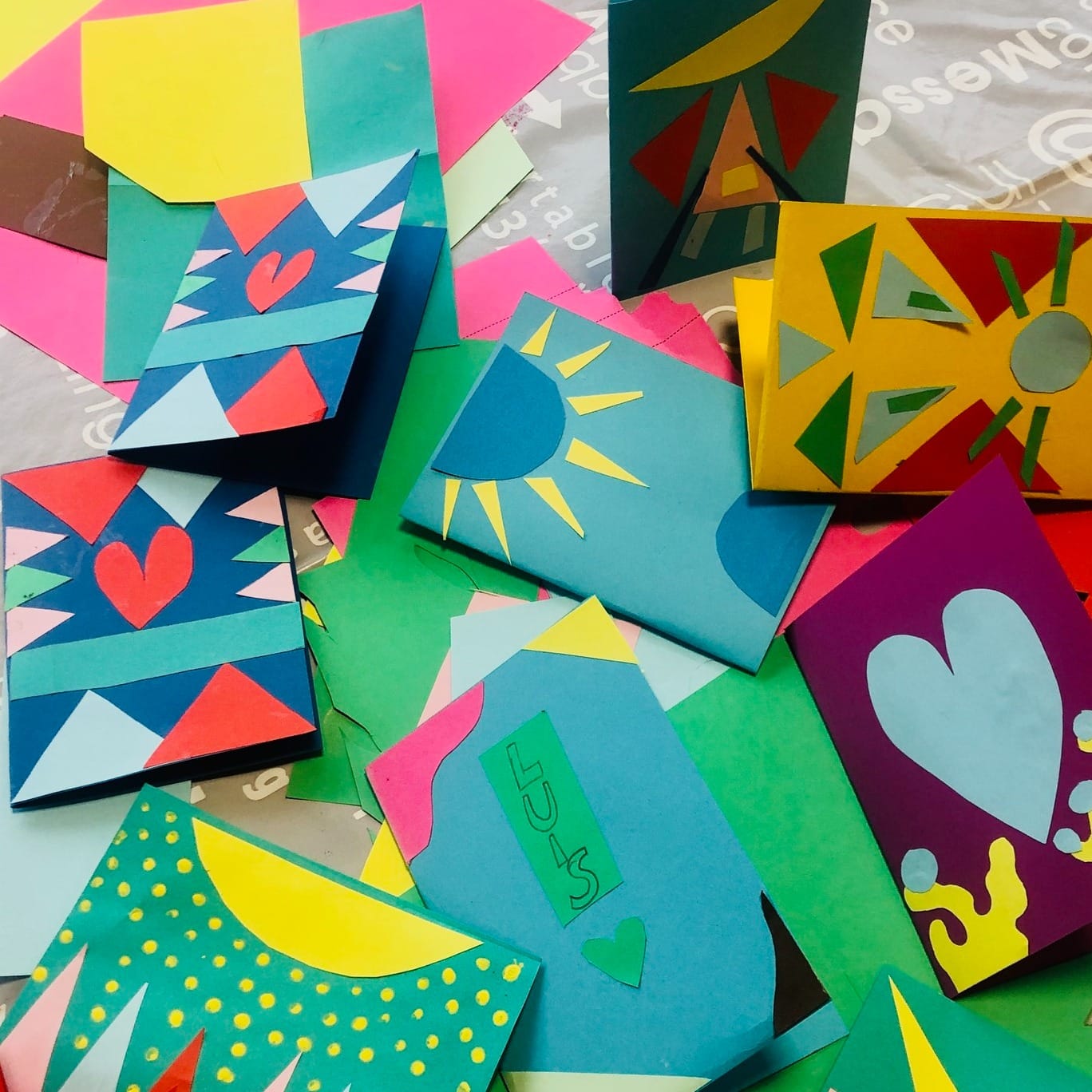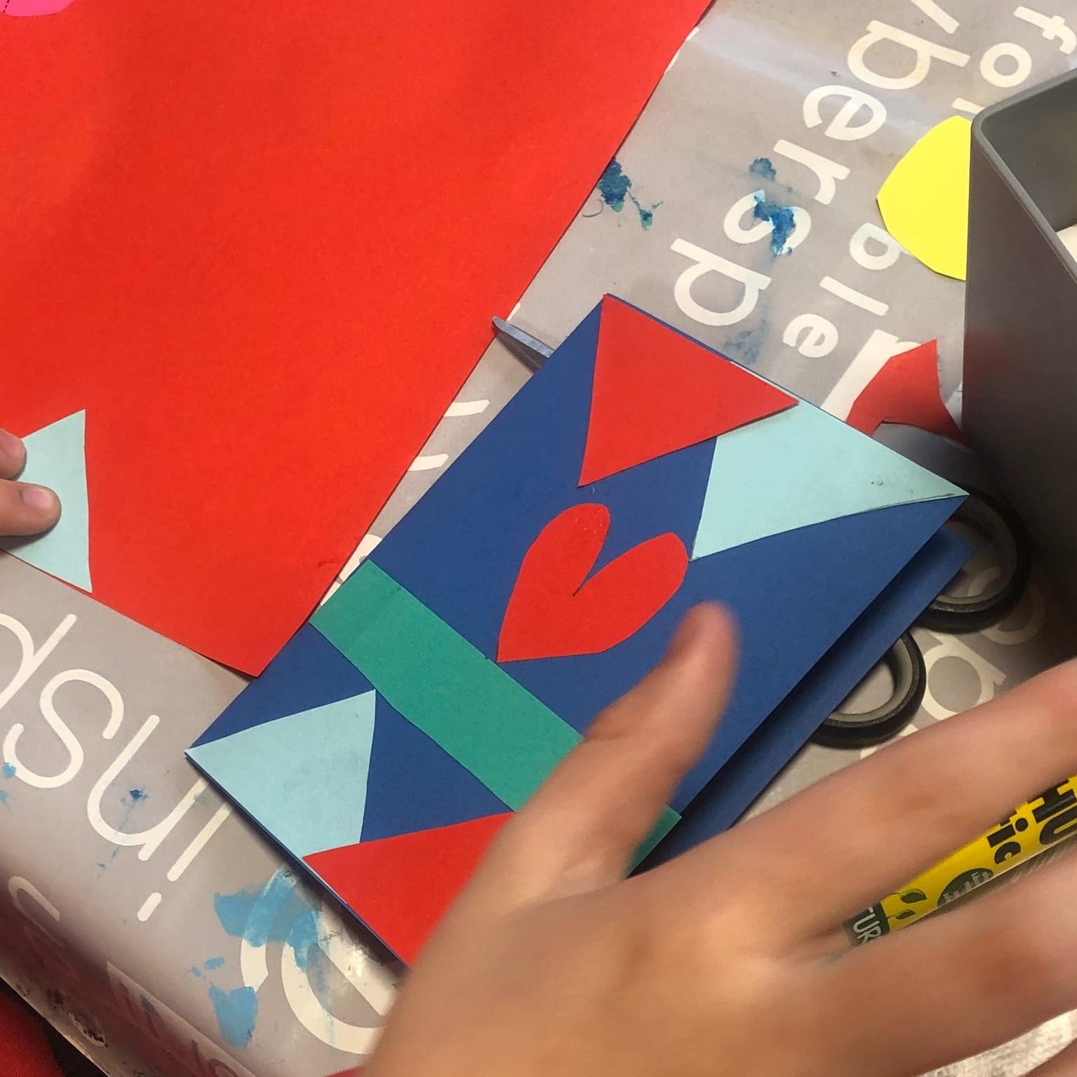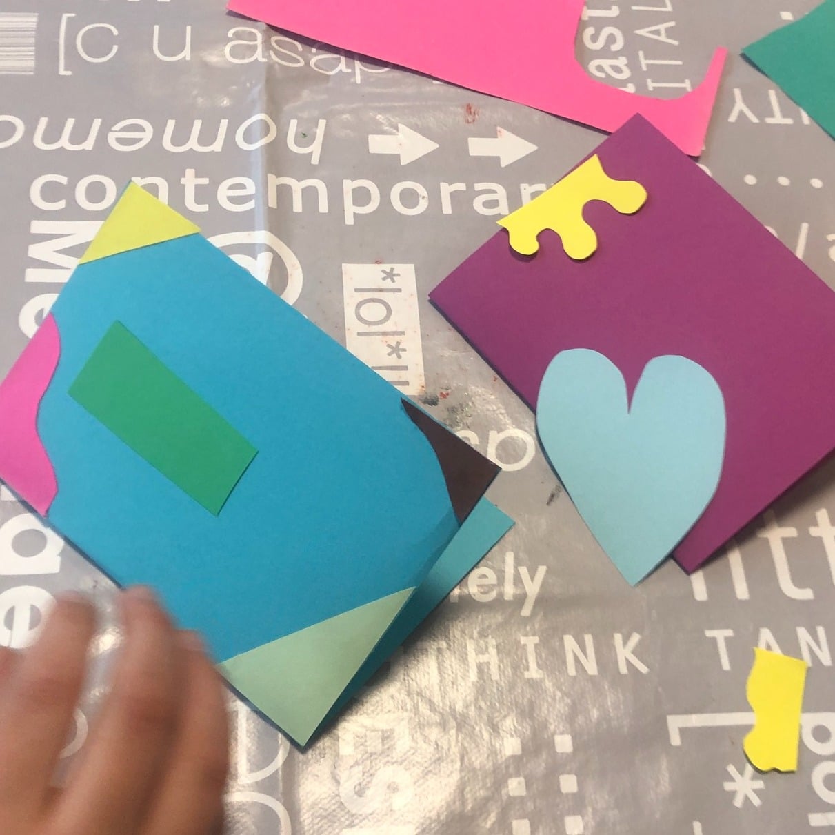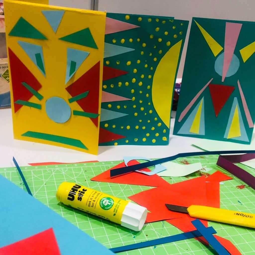 Mit viel Liebe zum Detail arrangierten sie die Formen auf dem Papier und klebten sie dann kunstvoll an, um die perfekte Komposition zu schaffen. 🌈💖 Manchmal sind es die kleinen Gruppen, die die größten kreativen Meisterwerke schaffen!