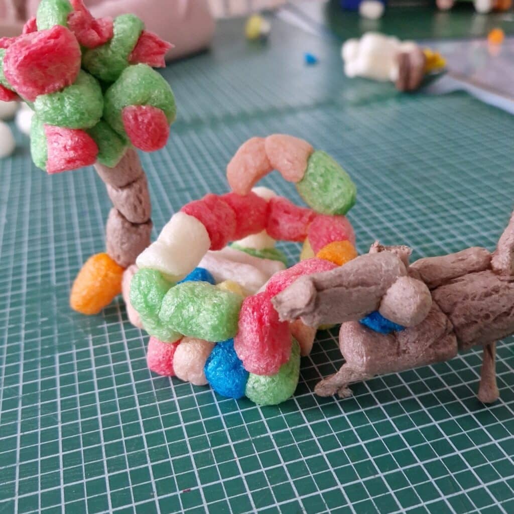 Passend dazu entstanden auch kleine Kunstwerke wie Hundehütten, Bäume und Gehege, die die Welt der PlayMais-Kreationen komplett machten. 🏡🌈 Ein kunterbuntes Spielfeld für die Vorstellungskraft der Kinder!