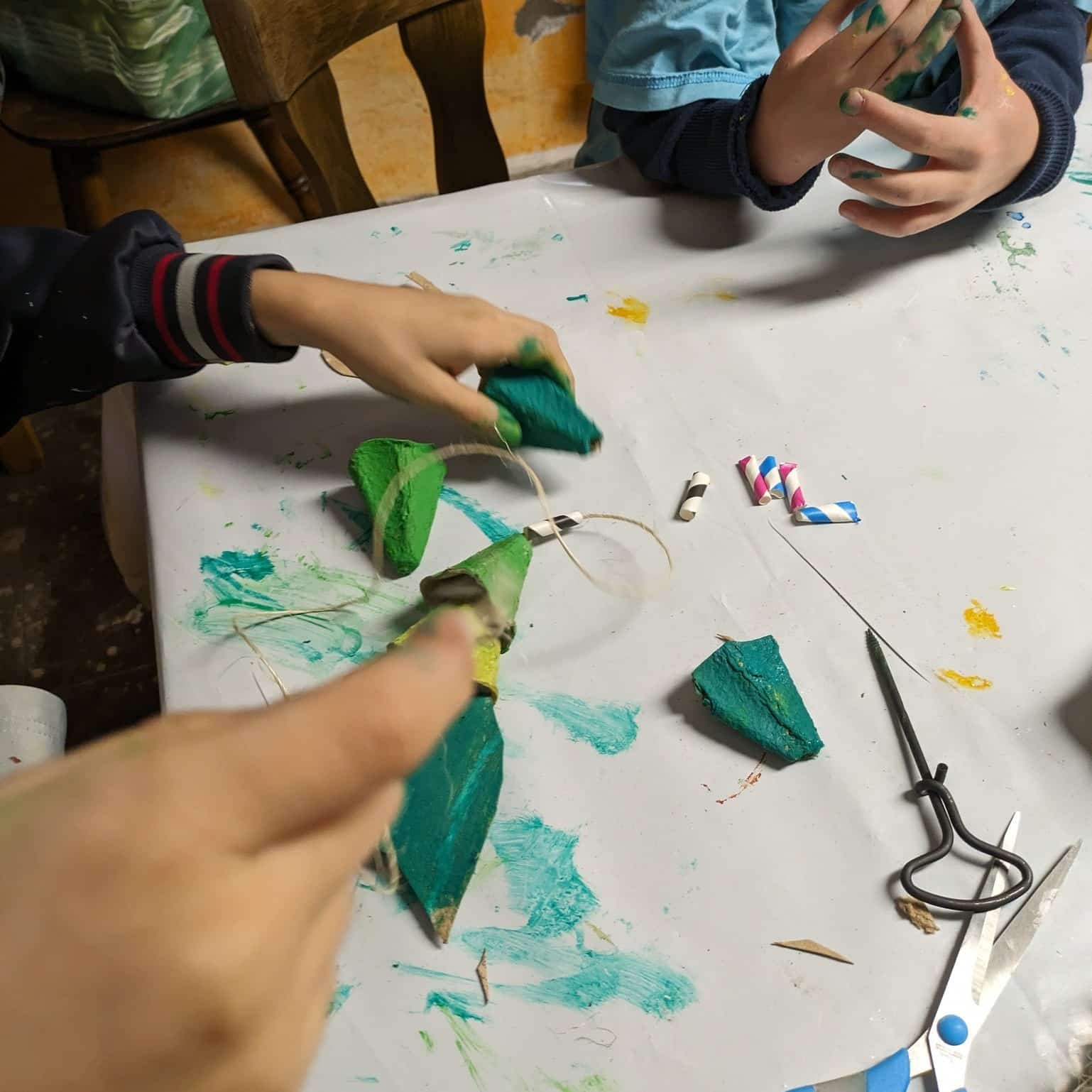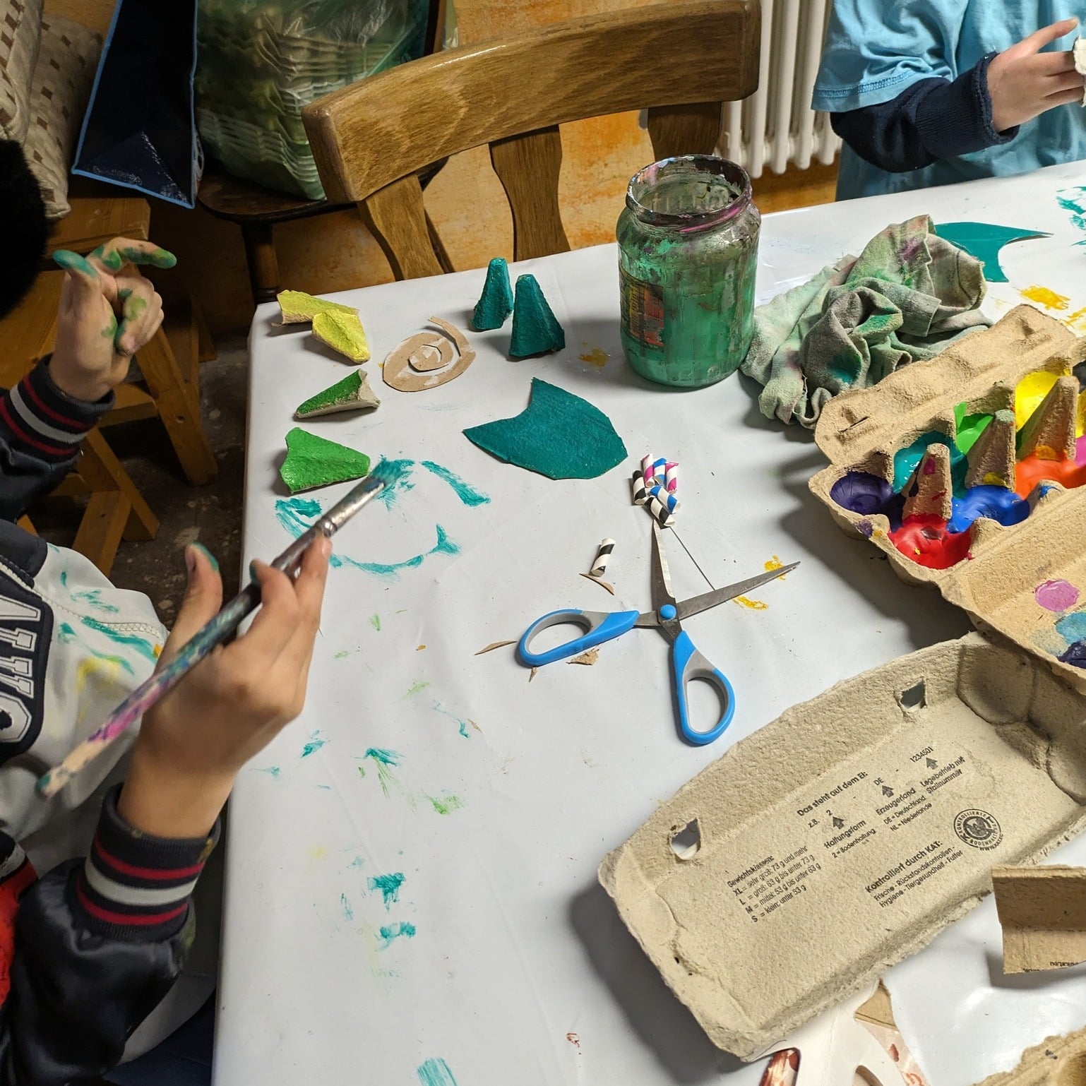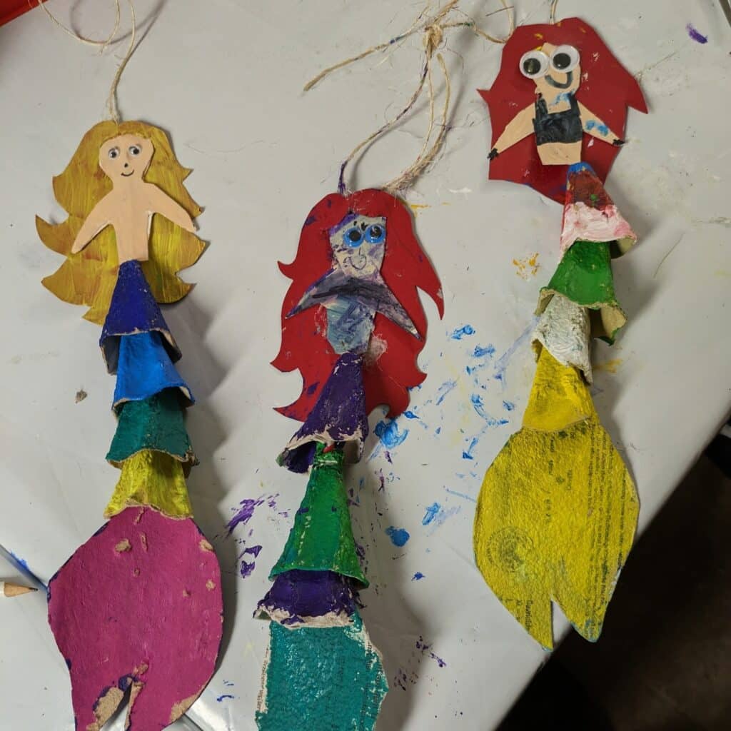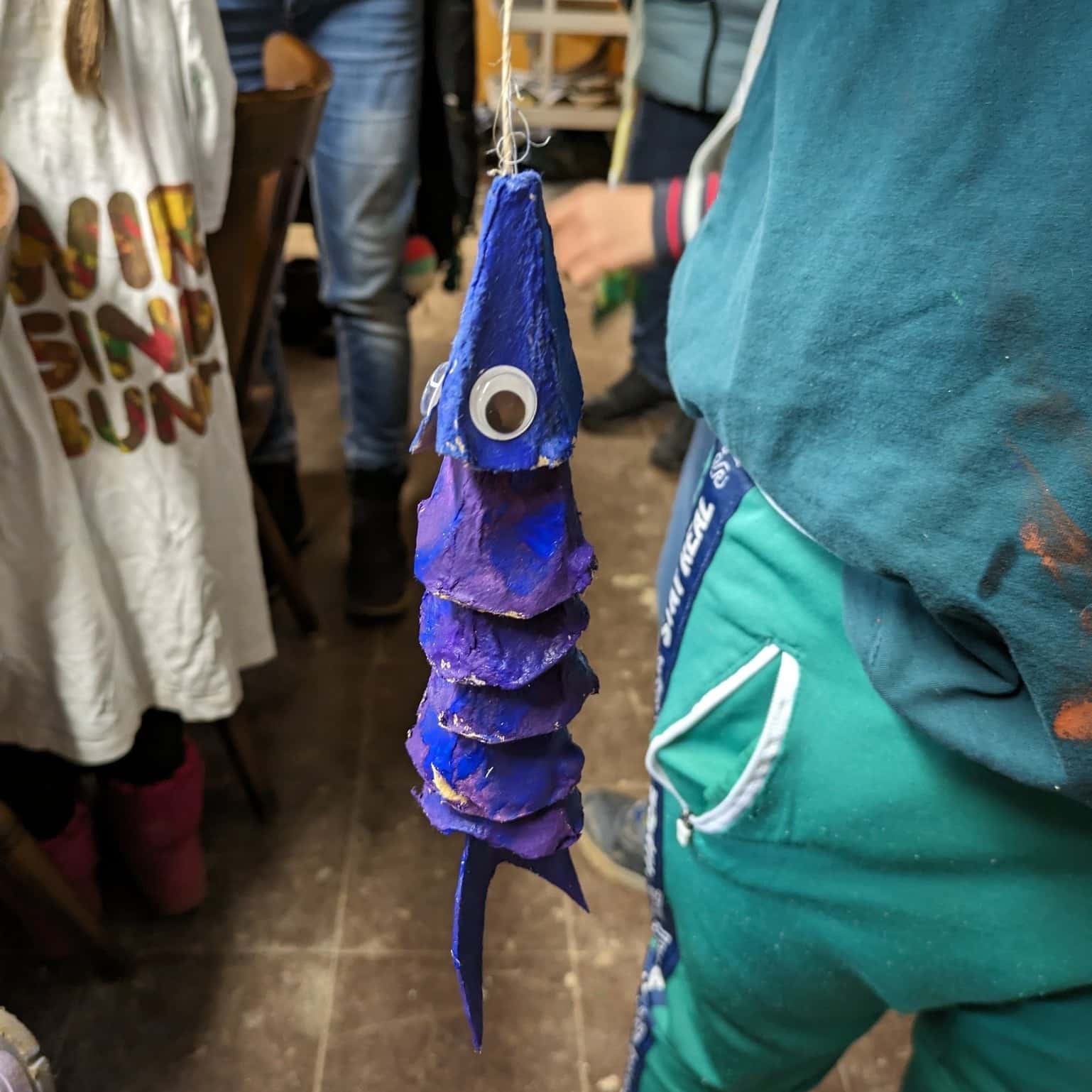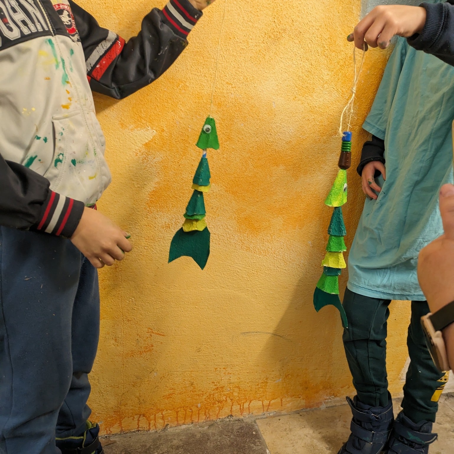 Die Kinder haben aus Eierkartons wunderschöne Fische und bezaubernde Meerjungfrauen gestaltet. 🐠🧜♀️ Dazu wurden verschiedene Teile aus den Eierkartons ausgeschnitten und anschließend mit lebhaften Acrylfarben bemalt. Die finalen Kunstwerke wurden auf einem Seil mit Perlen und Papierstrohhalmen kunstvoll aufgefädelt. 🎨✨ Ein Tag voller Fantasie und Kreativität!