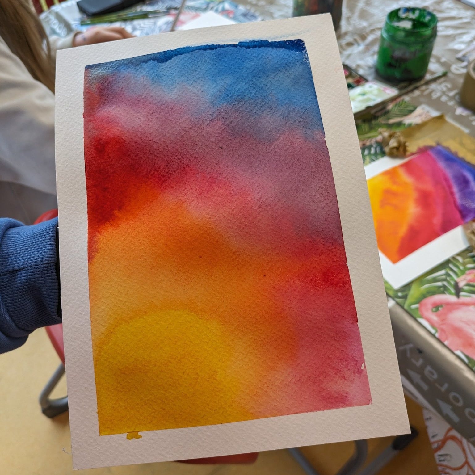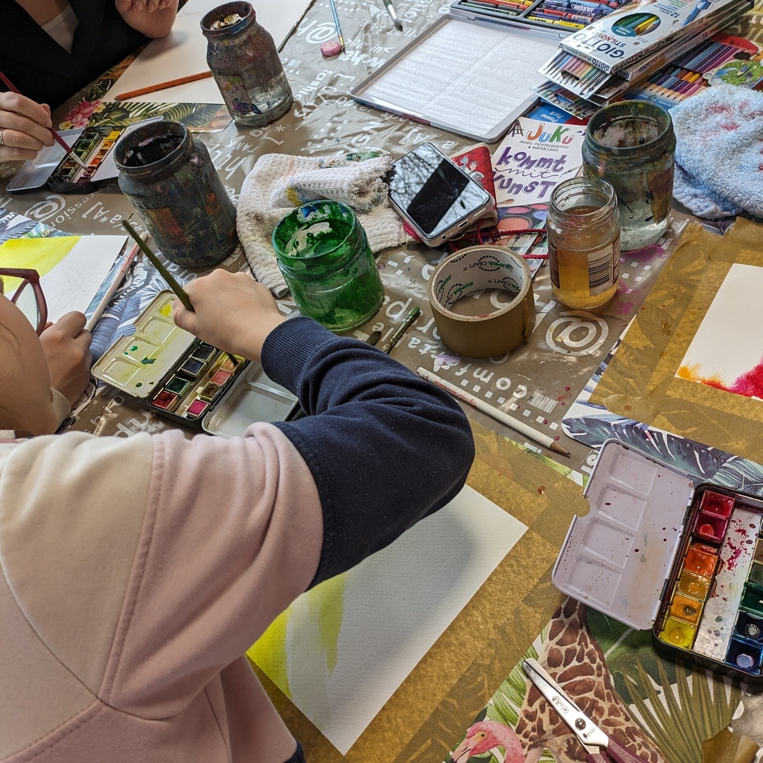 Heute haben wir eigene Motive mit Aquarellfarben gemalt, und die Kinder konnten es kaum erwarten! Die Begeisterung und Inspiration waren spürbar, und sie waren hochmotiviert, ihre kreativen Ideen zum Ausdruck zu bringen. 🌟 Ein Treffen voller künstlerischer Entdeckungen und Ausdrucksfreiheit!