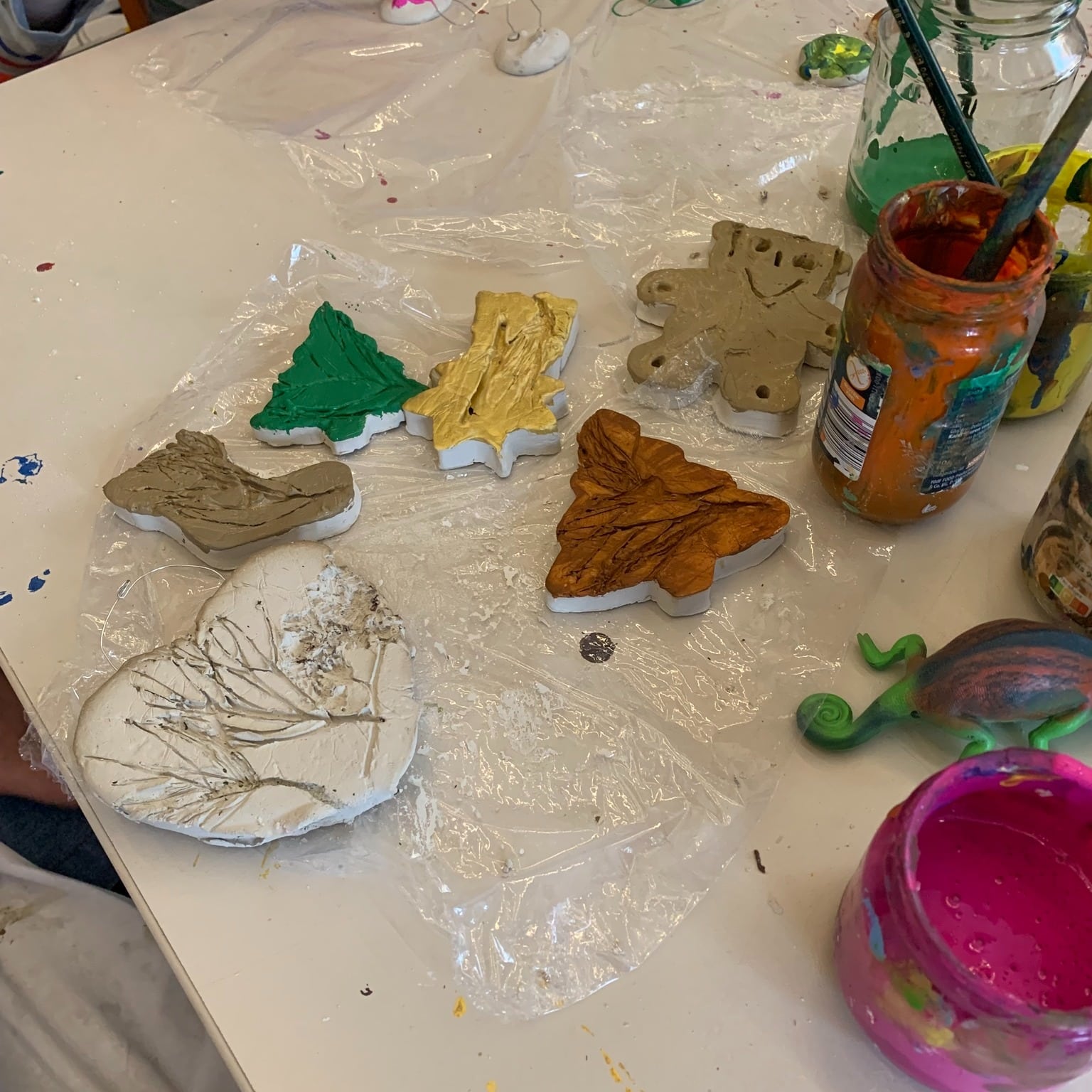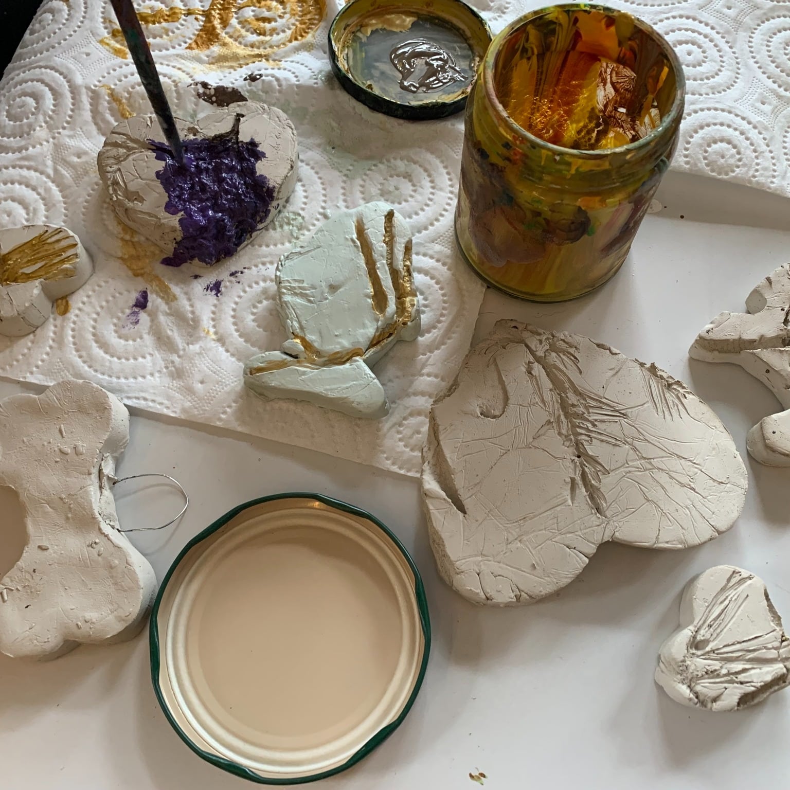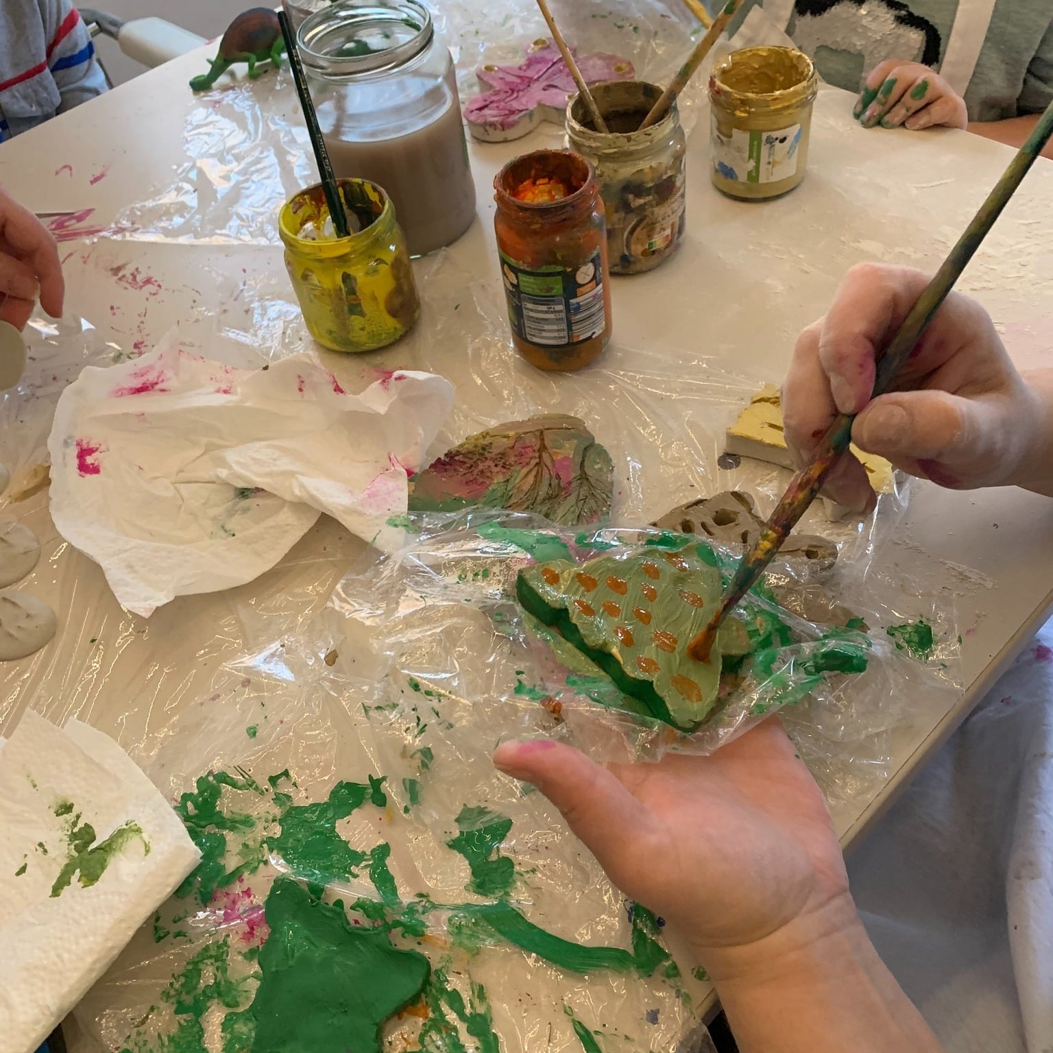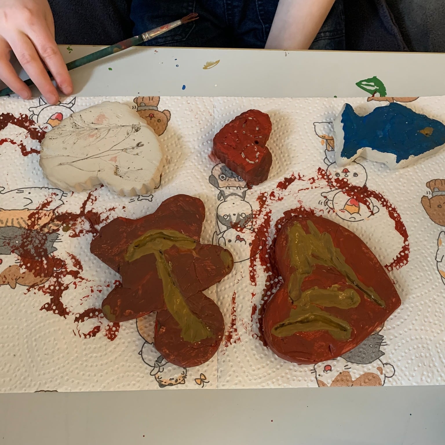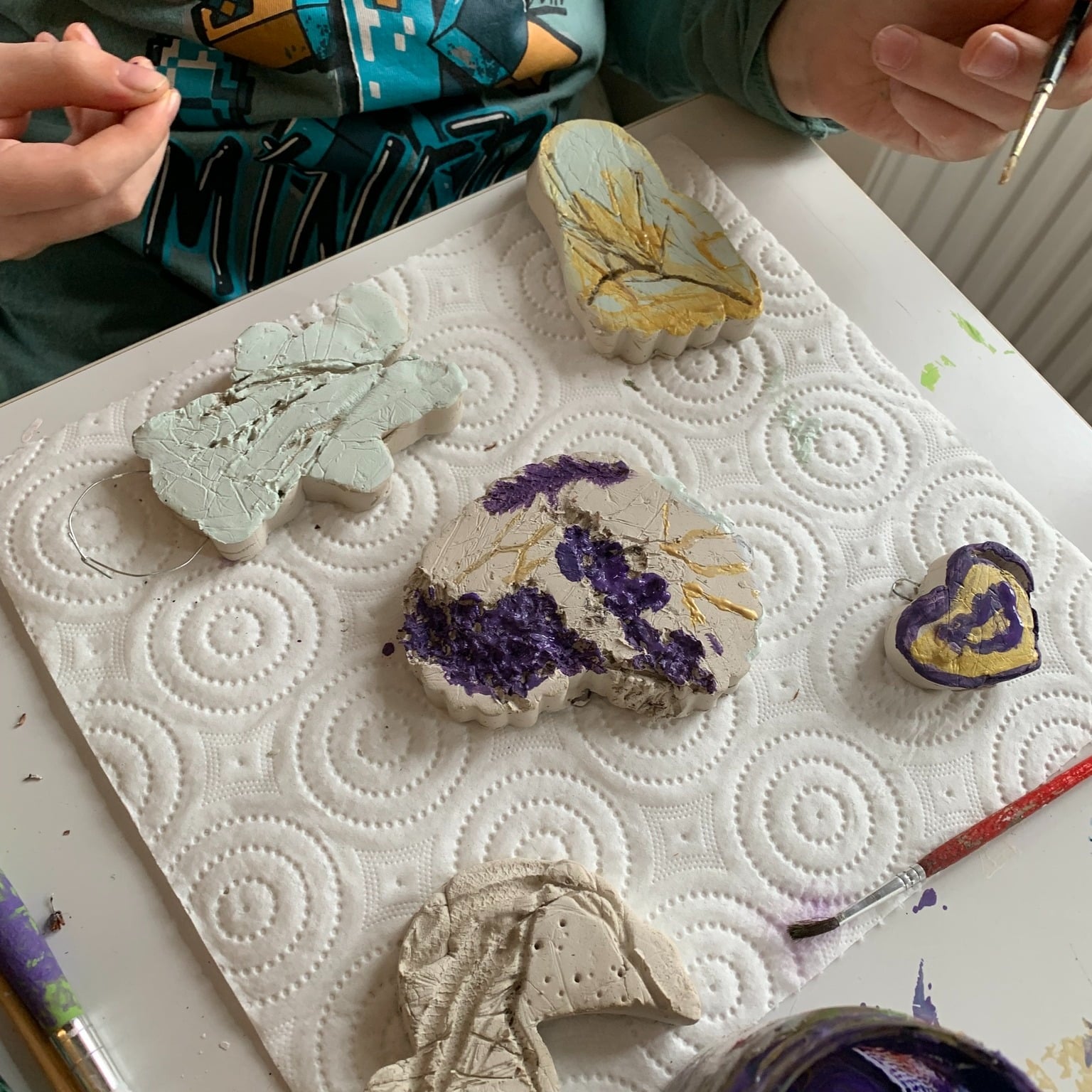 Die Pflanzenabdrücke wurden angemalt und wunderschöne Gips-Anhänger hergestellt und bemalt. Die Kinder waren voller Begeisterung dabei und haben ihre kreativen Ideen zum Leben erweckt. 🌸