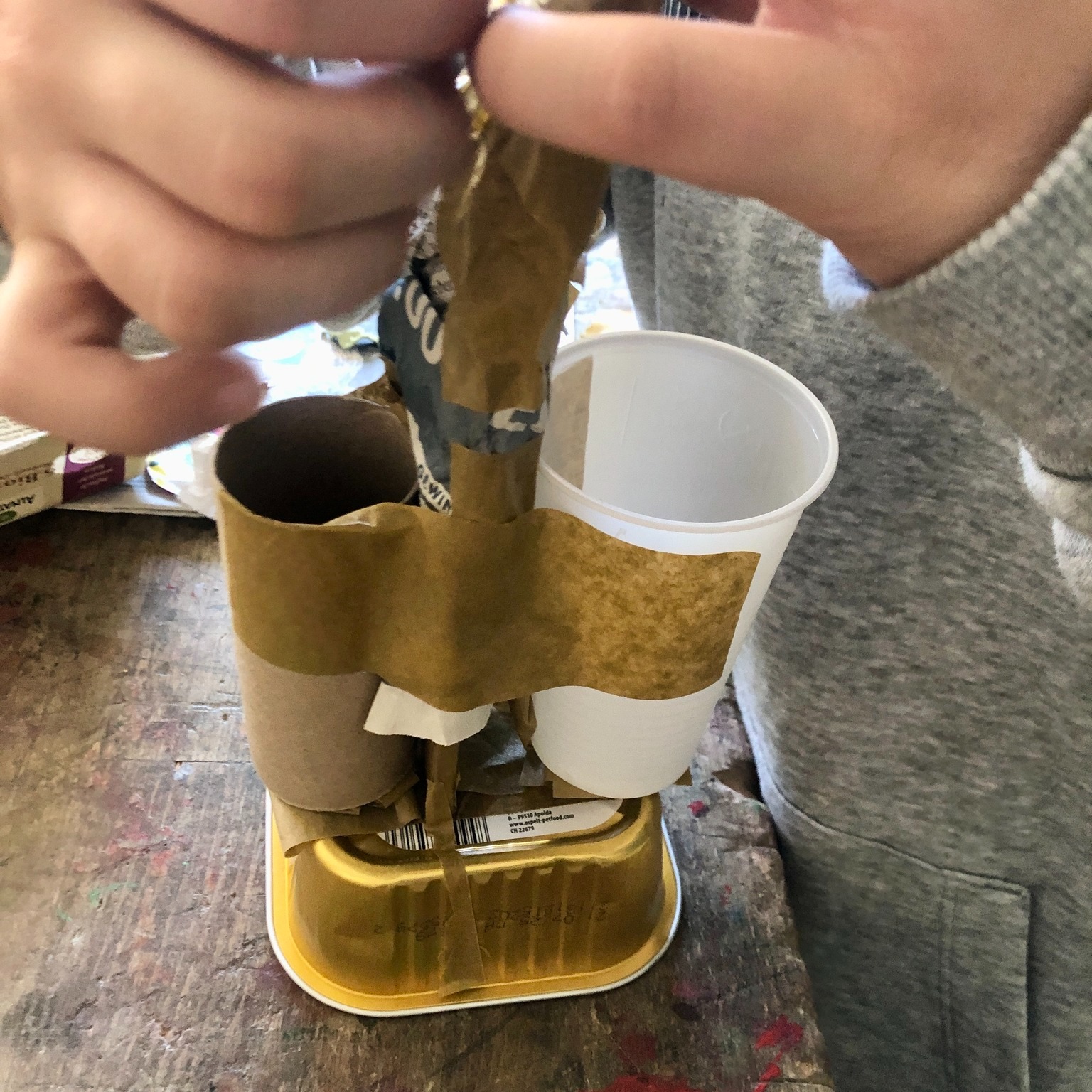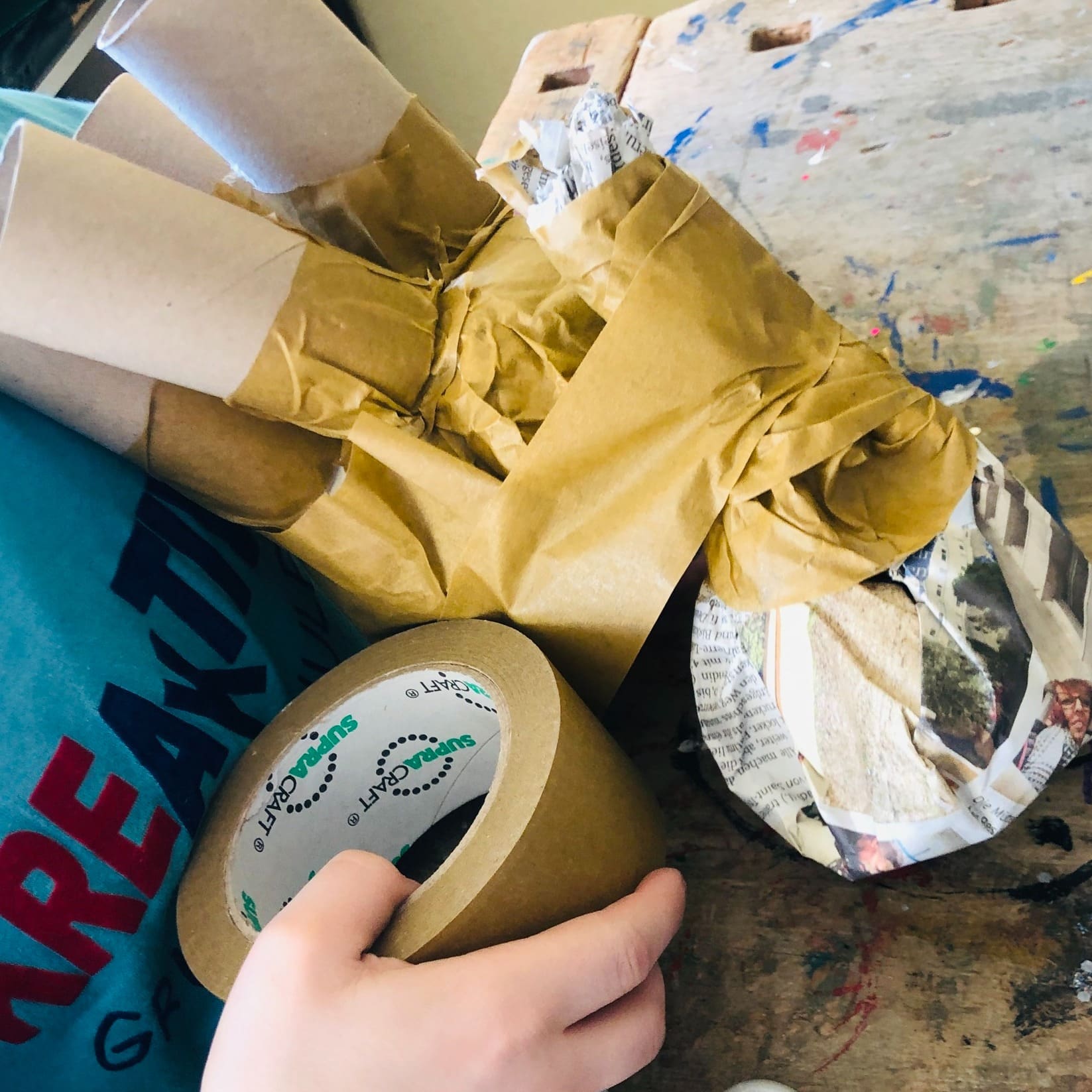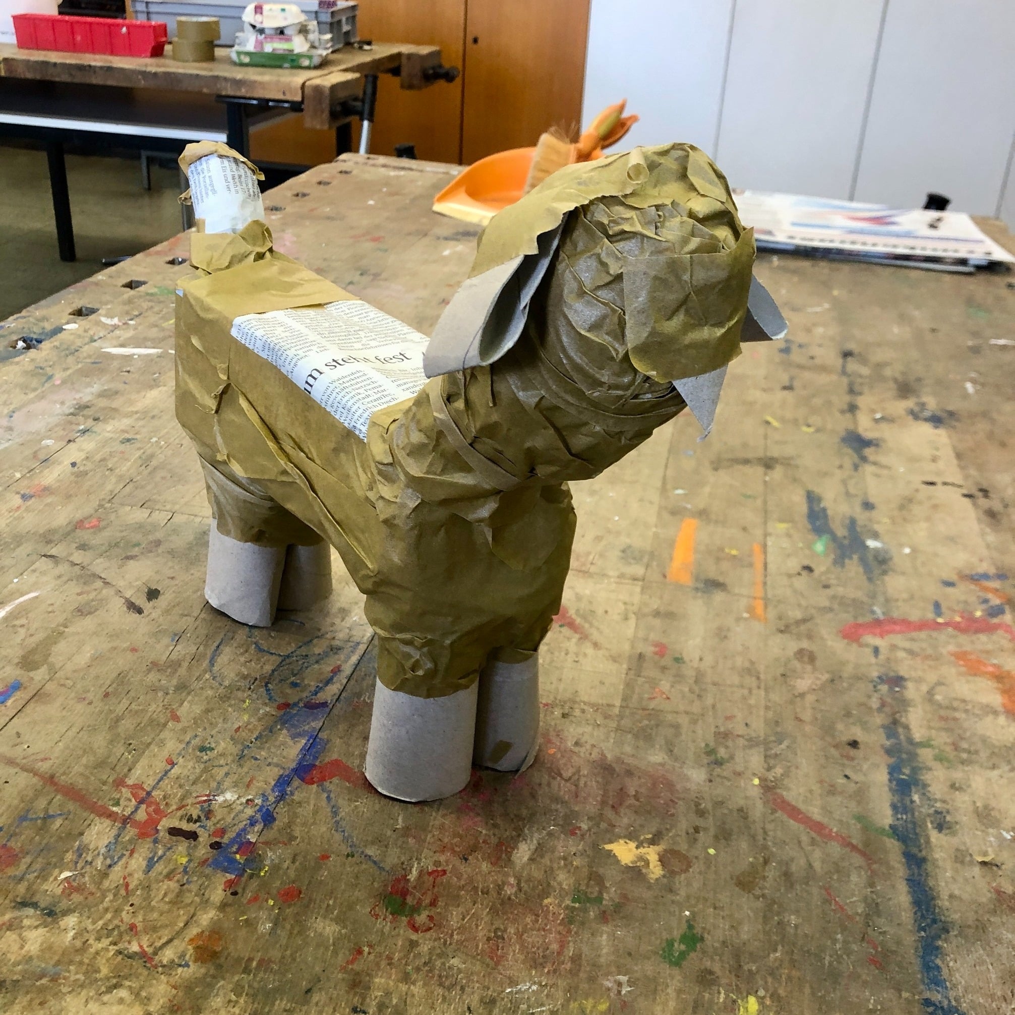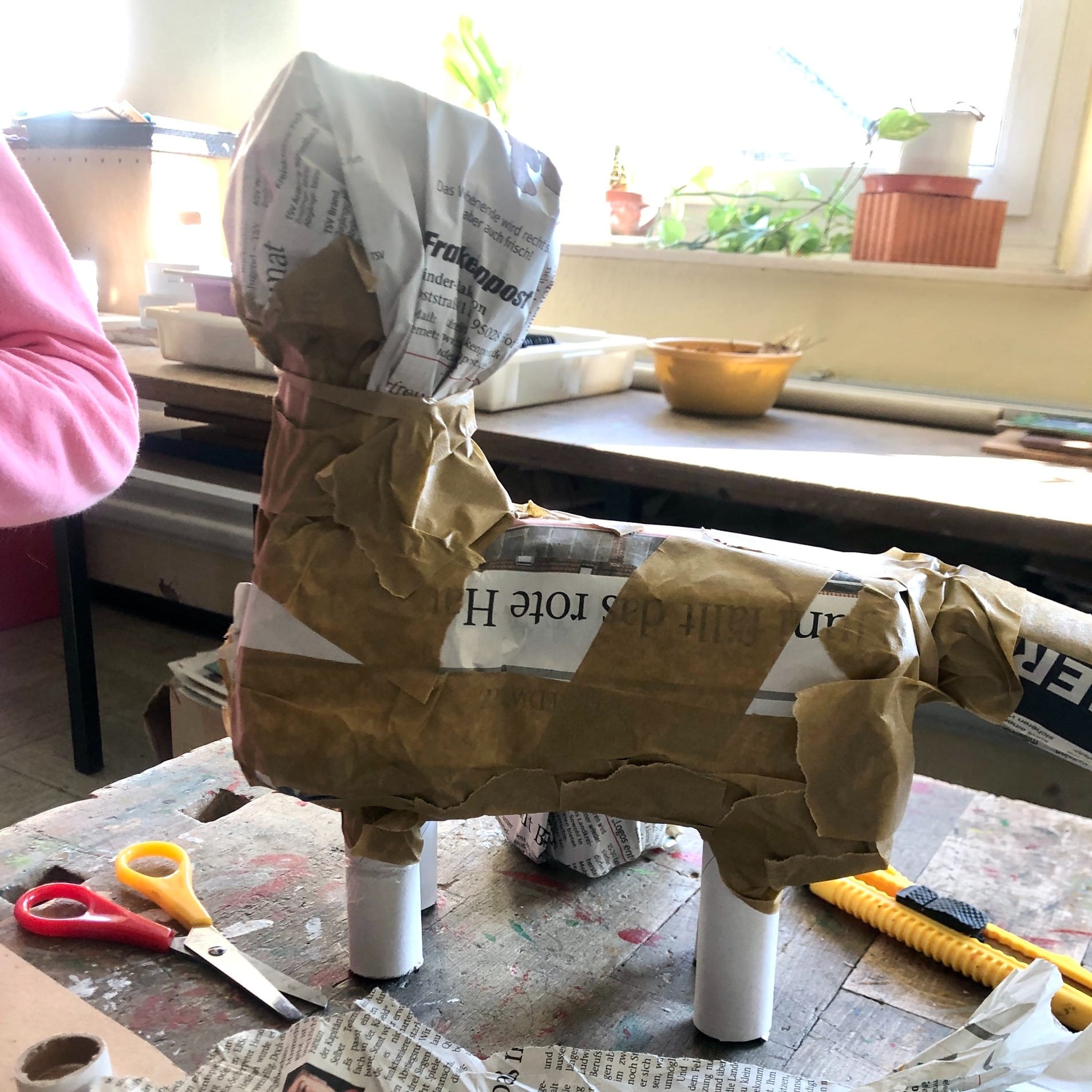 Die Kinder haben Figuren aus Papprollen und Recyclingmaterialien hergestellt, die dann als Basis für Papiermaché dienten. 🎨 Das war eine komplett neue Erfahrung für die Kinder! Anfangs gab es viele Fragen und Bitten um Hilfe, aber schon bald hatten sie den Dreh raus und hatten richtig viel Spaß dabei.