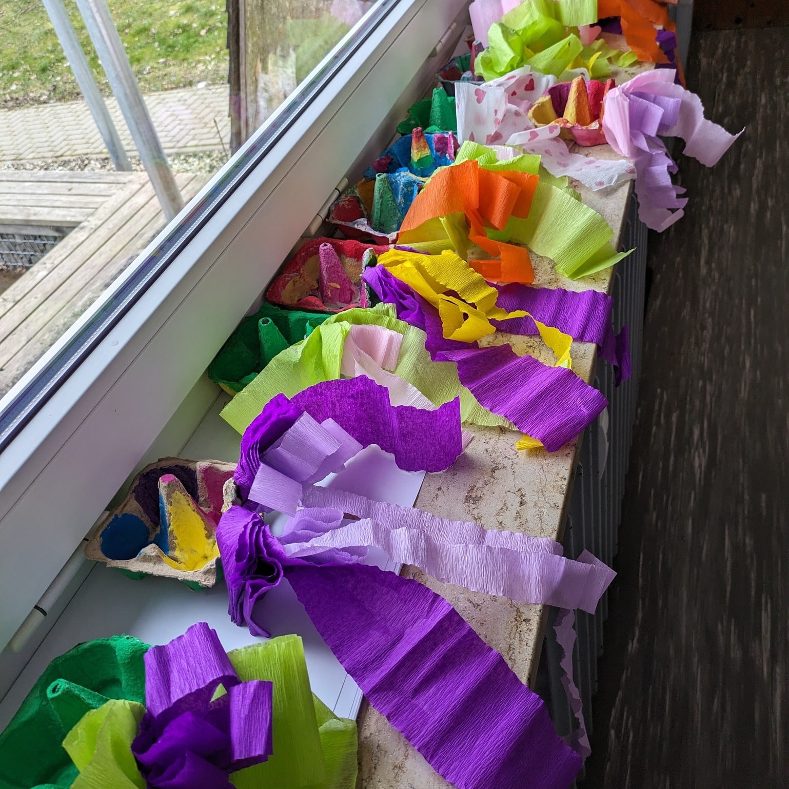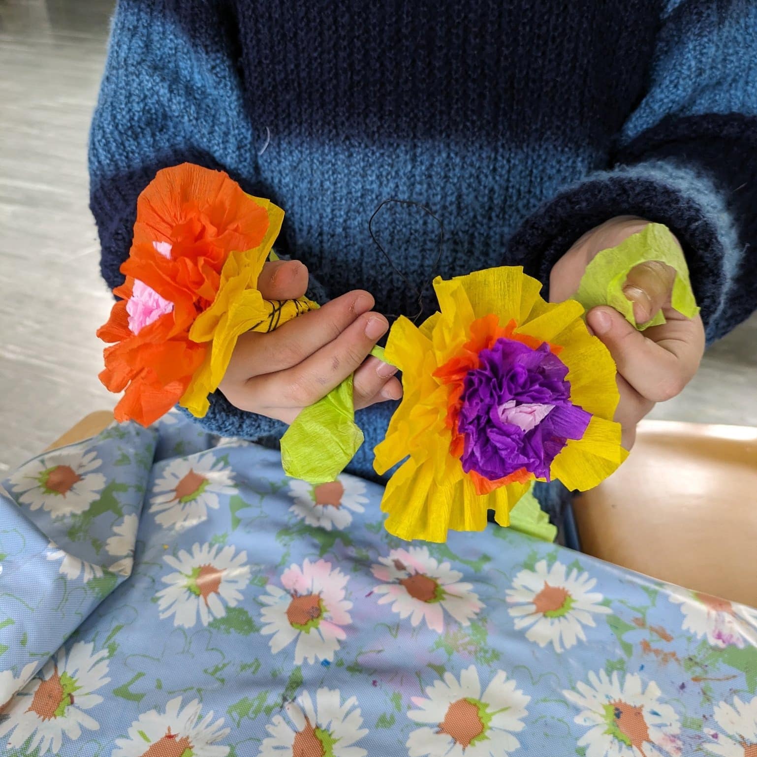 Mit viel Begeisterung haben die Kinder heute wunderschöne Blumen und bunte Fische aus Krepppapier und Kreppband hergestellt! 🎨💫...