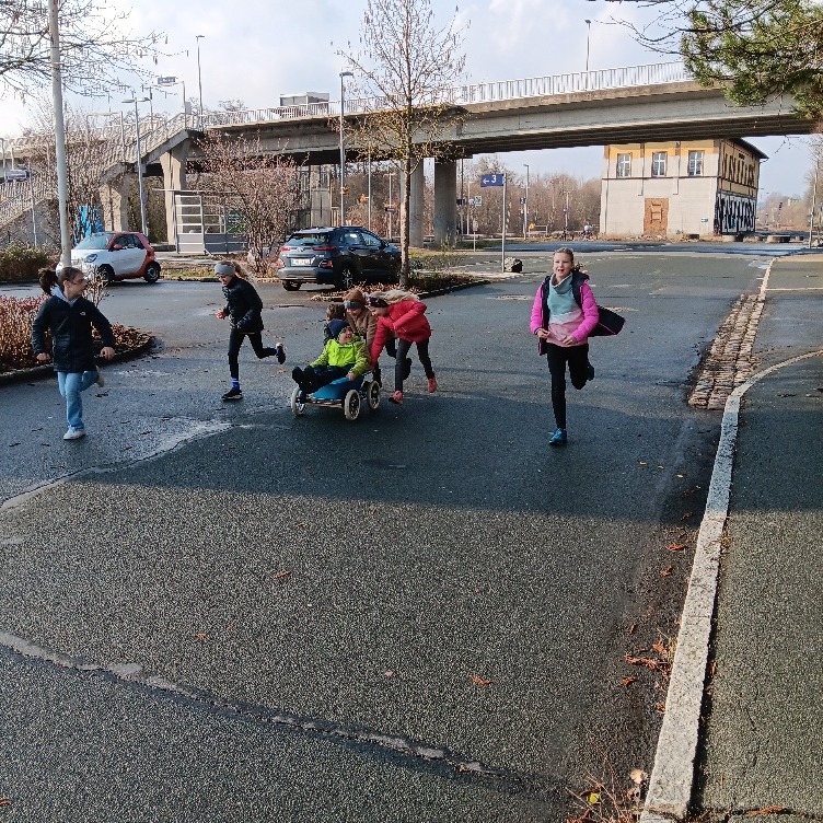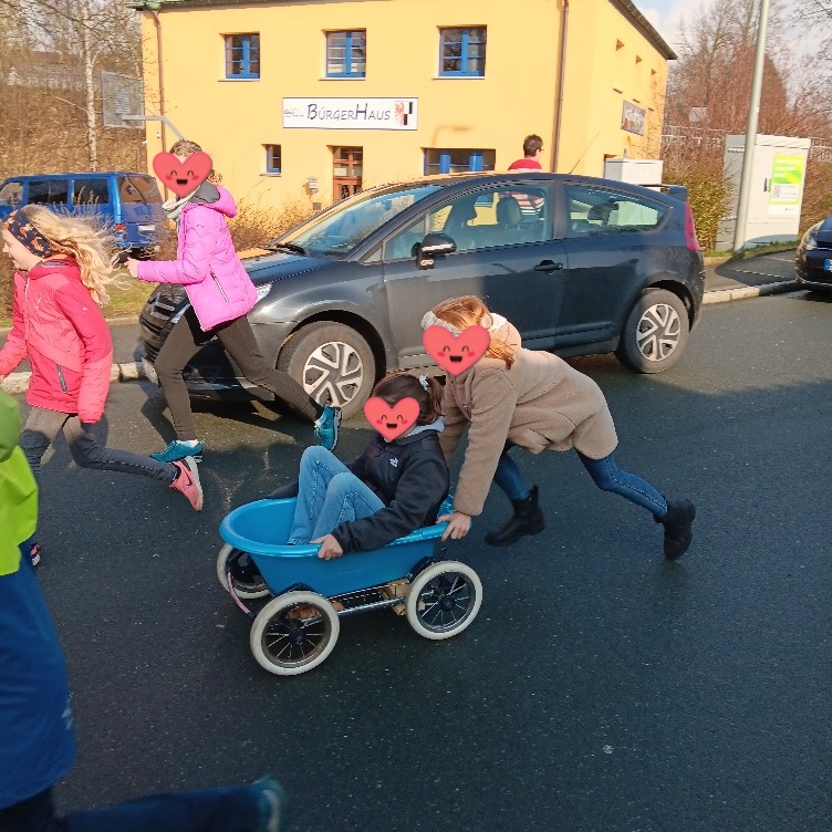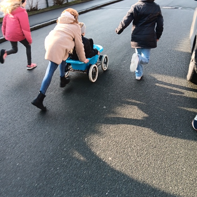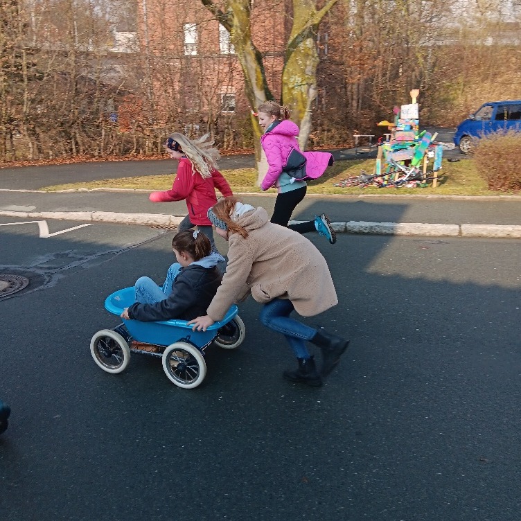 Die Kinder haben unter freiem Himmel gearbeitet. Ein Kinderwagengestell, eine Plastikbabywanne und ein Plastikfass wurden zur Verfügung gestellt. 🛠️ Mit diesen Materialien haben Teilnehmende erste Seifenkiste gebaut und sie gleich ausprobiert. 🏎️ Ein Tag voller Spaß, Teamwork und spannender Experimente!