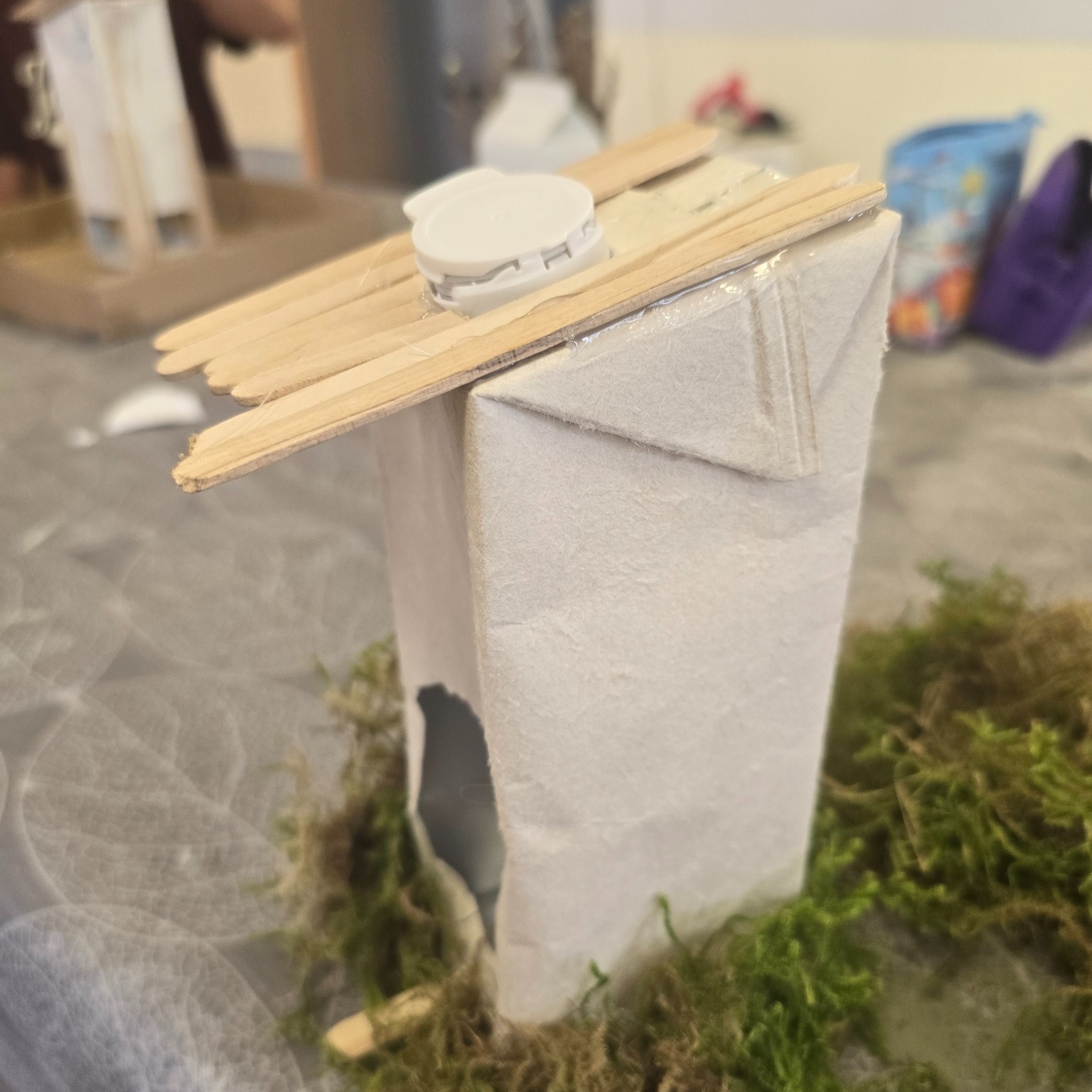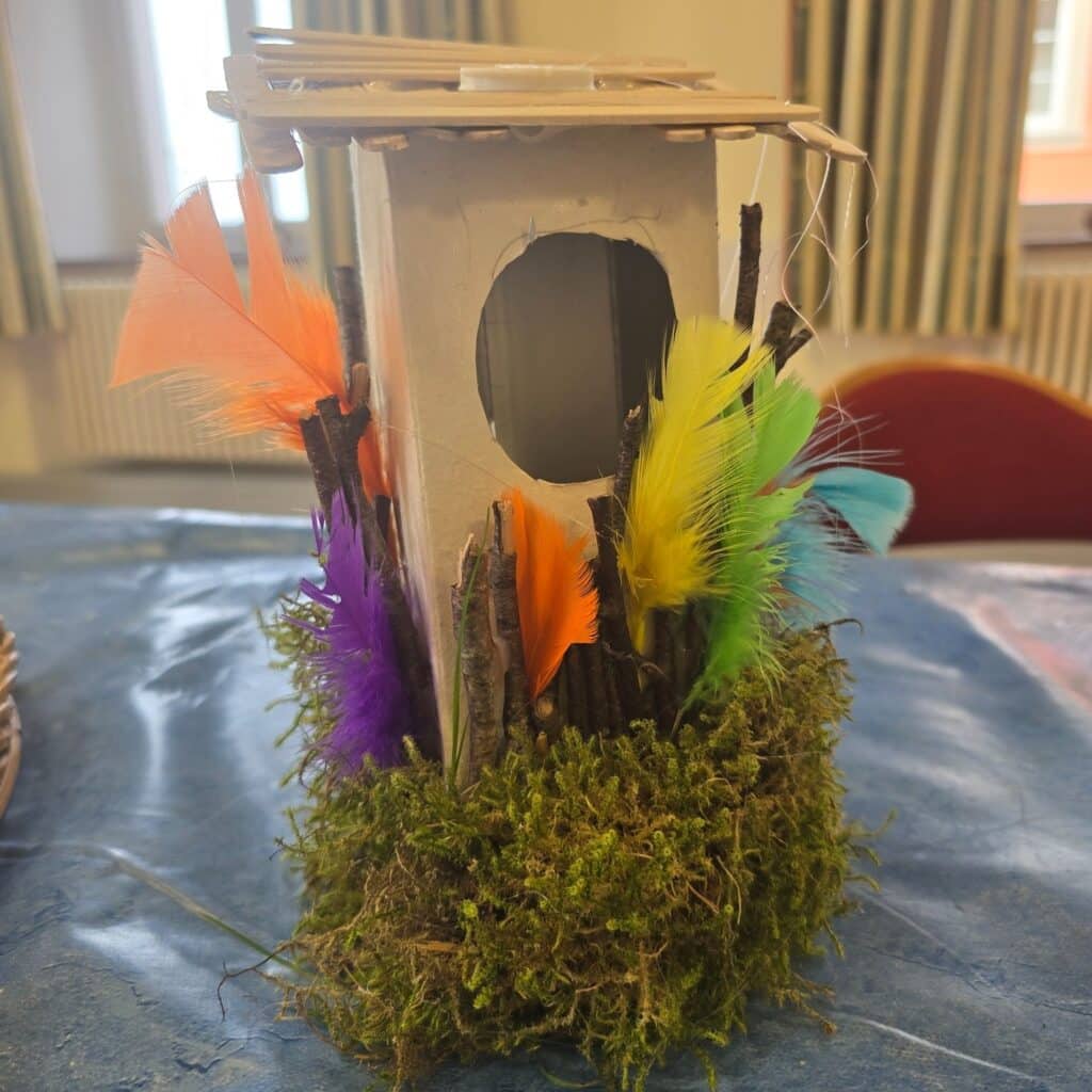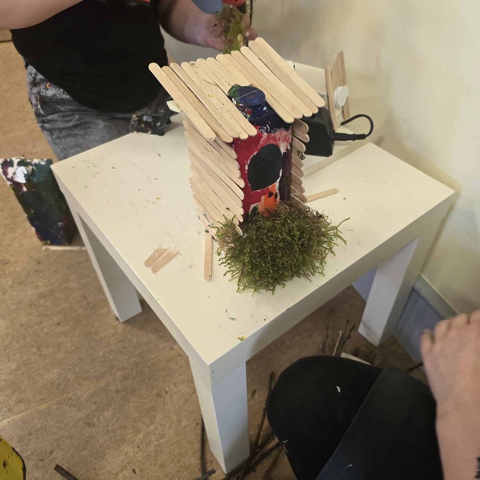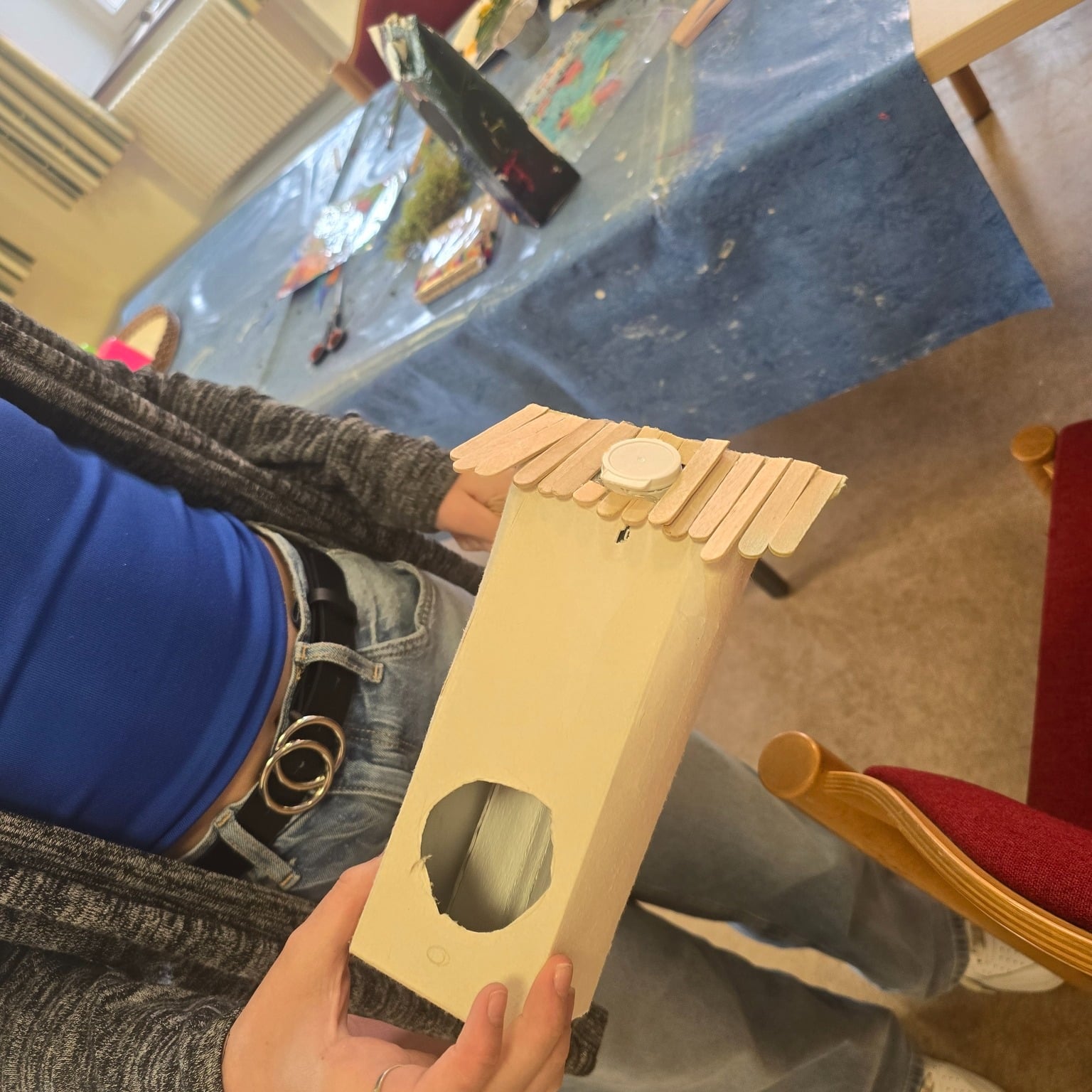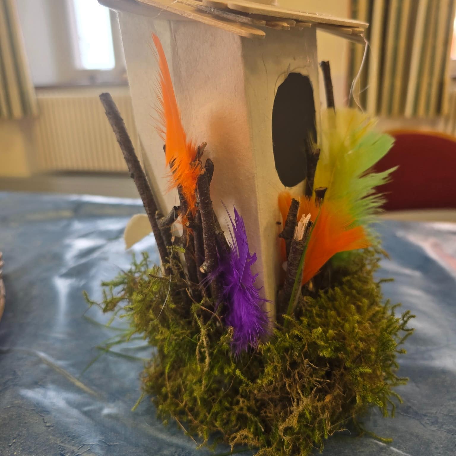 Die Kinder haben mit großer Begeisterung Vogelhäuser aus Getränkekartons gebastelt. Mit präzisen Schnitten wurden Öffnungen für die Vögel angelegt und Stangen zum Sitzen angebracht. 🏠🌿 Gemeinsam haben sie Dachkonstruktionen entworfen, aufgeklebt und teilweise bemalt und verziert. 🖌️ Leider verging die Zeit wieder schneller als gedacht, aber die Kinder werden die Arbeiten beim nächsten Mal vollenden! 🕊️