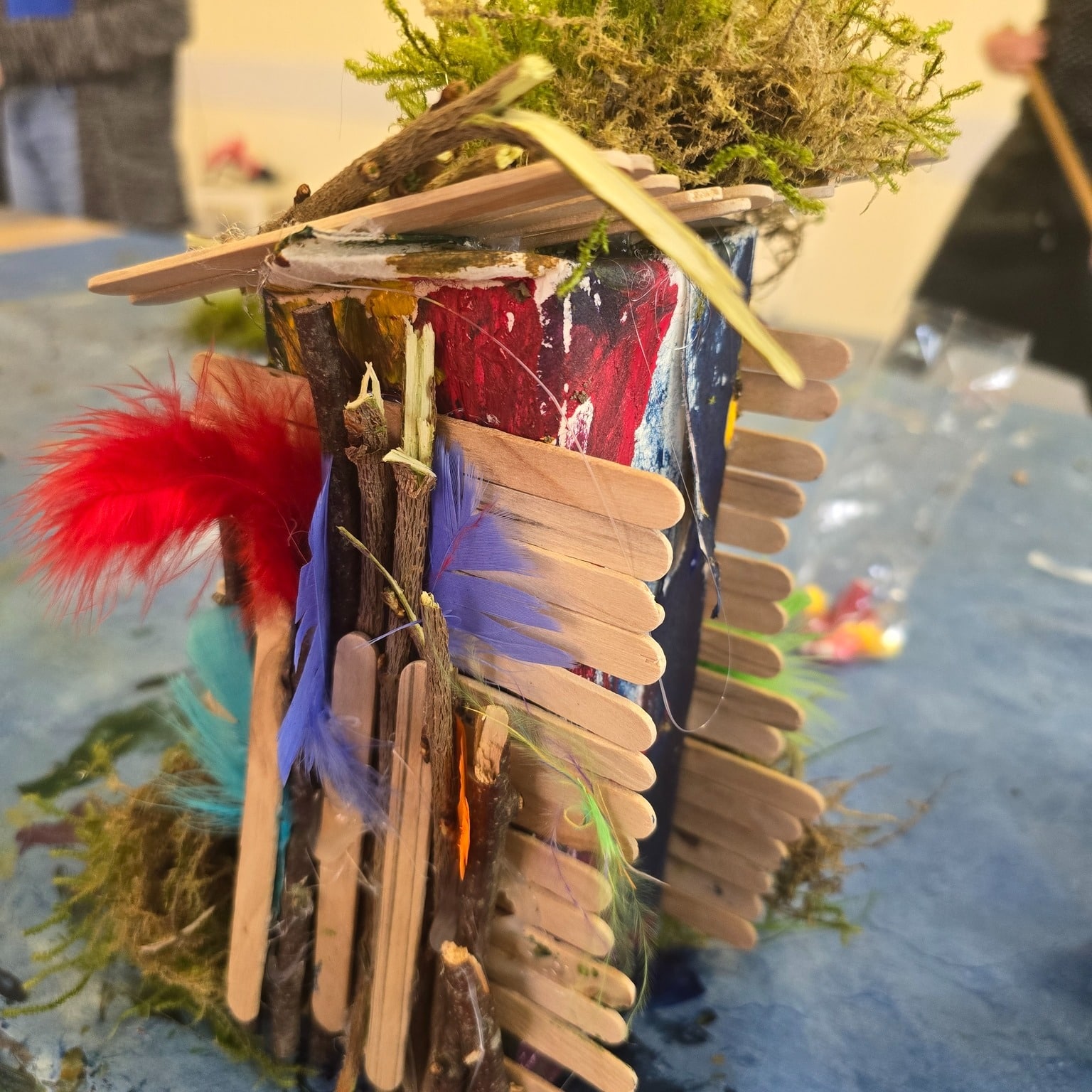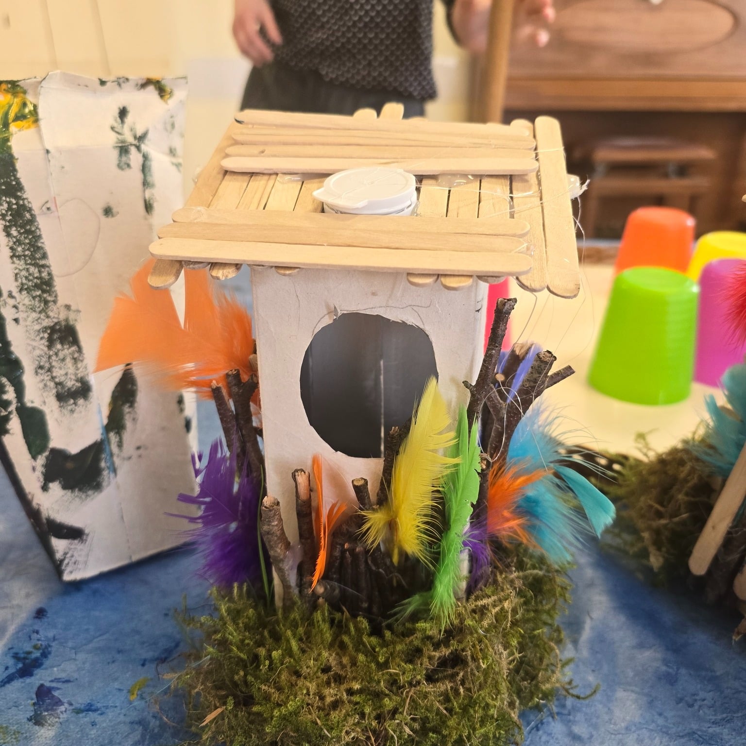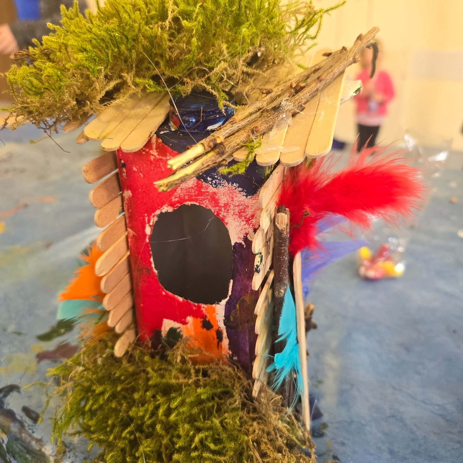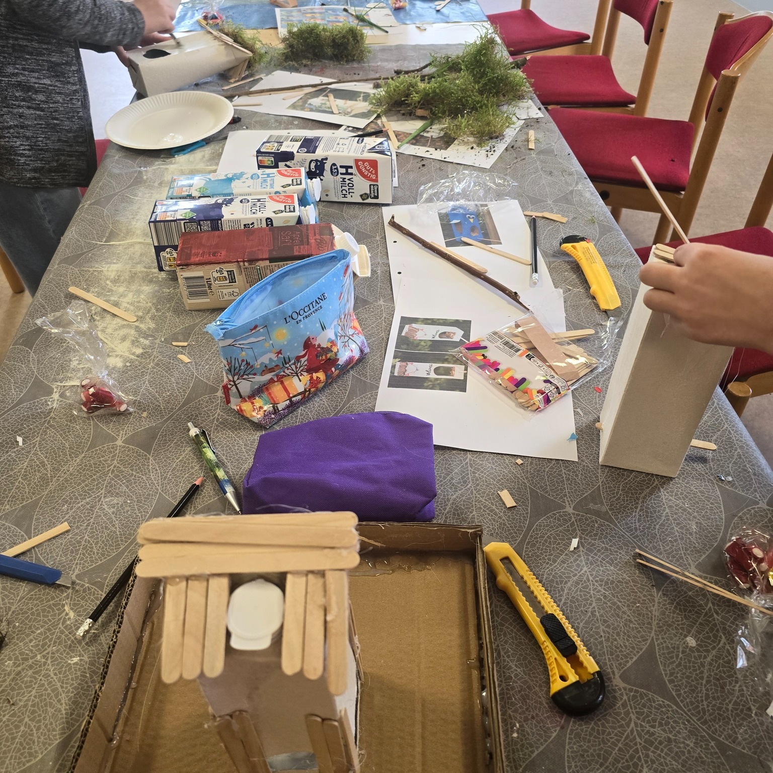 Die Kinder haben mit großer Begeisterung Vogelhäuser aus Getränkekartons gebastelt. Mit präzisen Schnitten wurden Öffnungen für die Vögel angelegt und Stangen zum Sitzen angebracht. 🏠🌿 Gemeinsam haben sie Dachkonstruktionen entworfen, aufgeklebt und teilweise bemalt und verziert. 🖌️ Leider verging die Zeit wieder schneller als gedacht, aber die Kinder werden die Arbeiten beim nächsten Mal vollenden! 🕊️