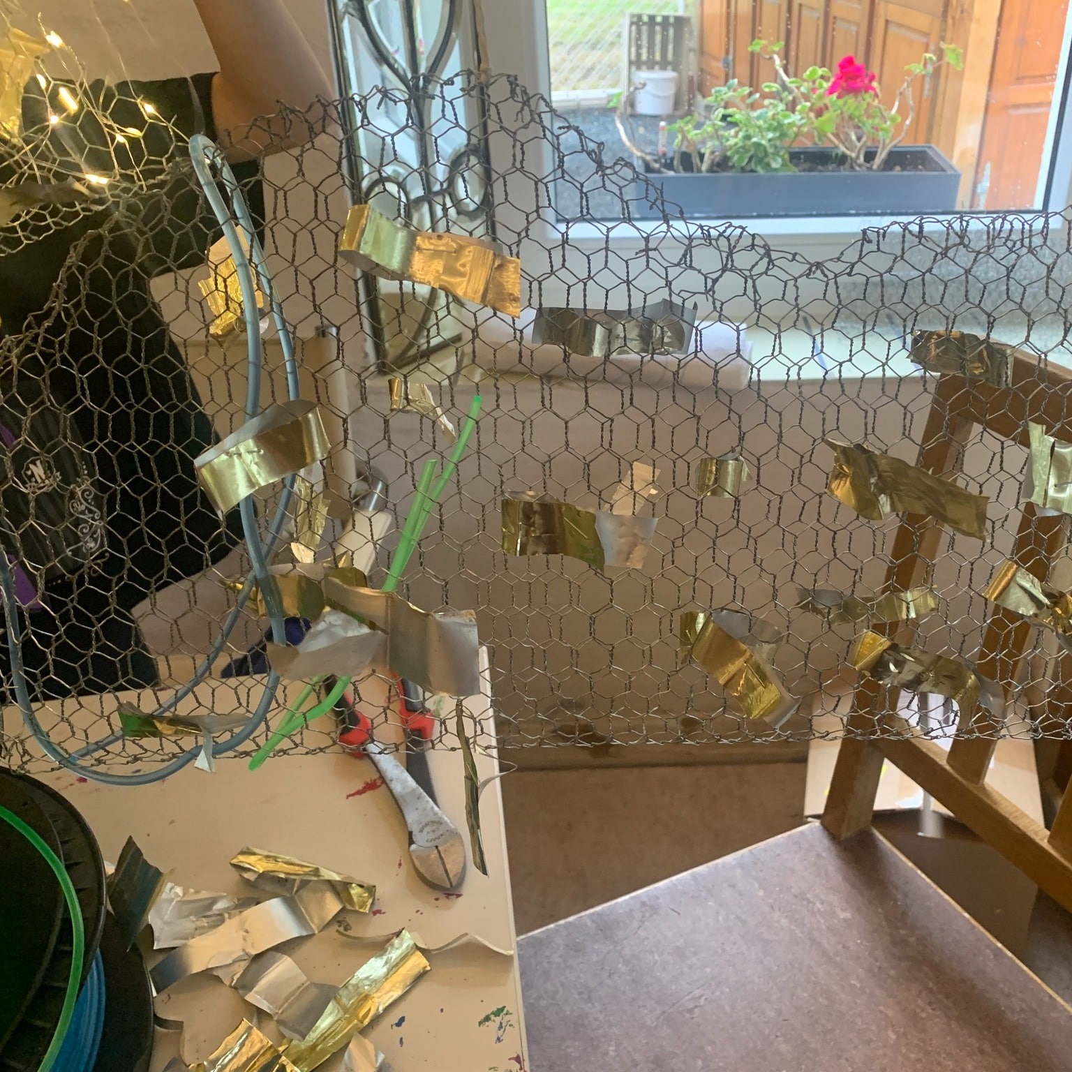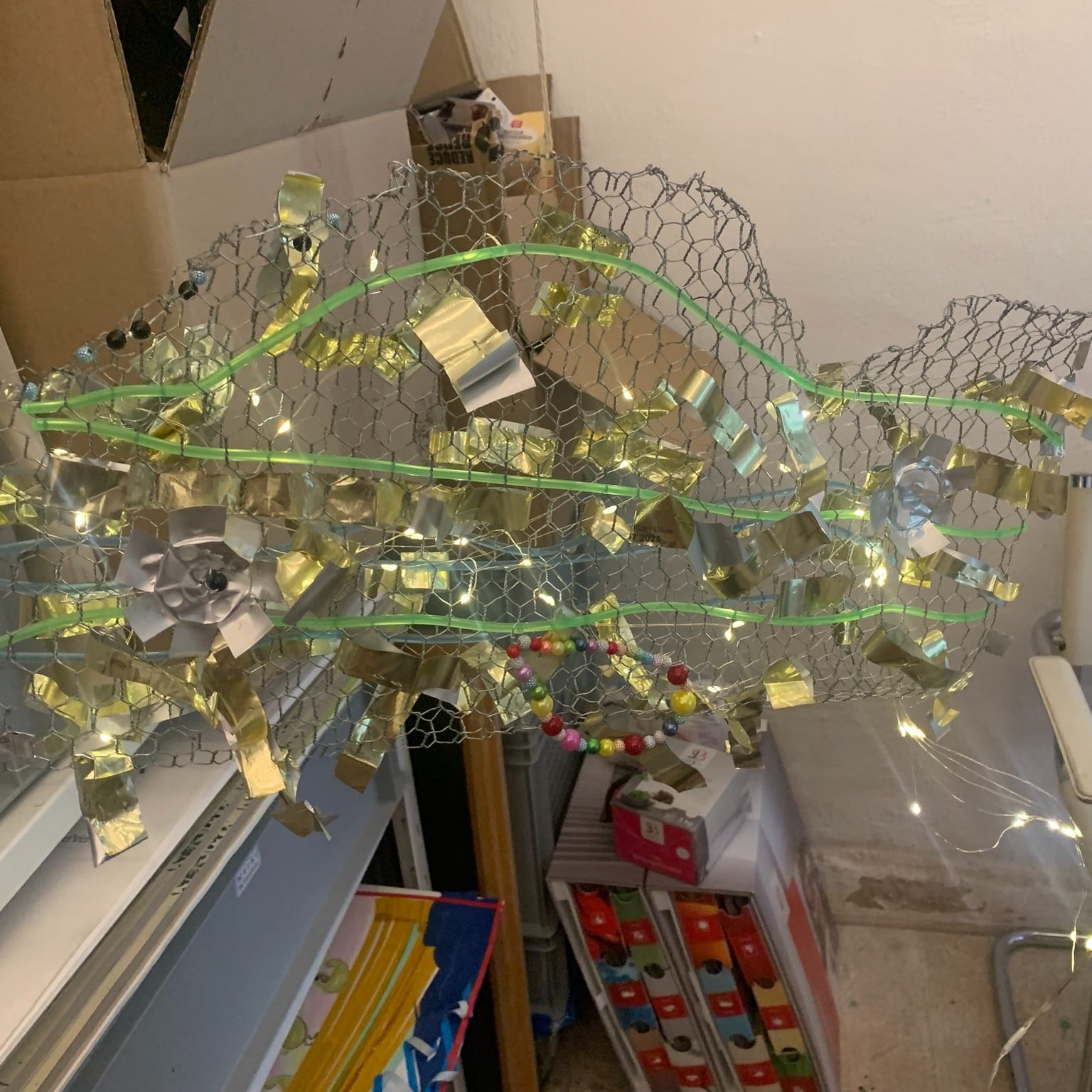 Im Gemeindehaus Lichtenberg entstanden fantasievolle Figuren aus Pulpe. Zuerst wurden Grundgerüste aus Papier, Alufolie, Draht und Abdeckband gebaut....