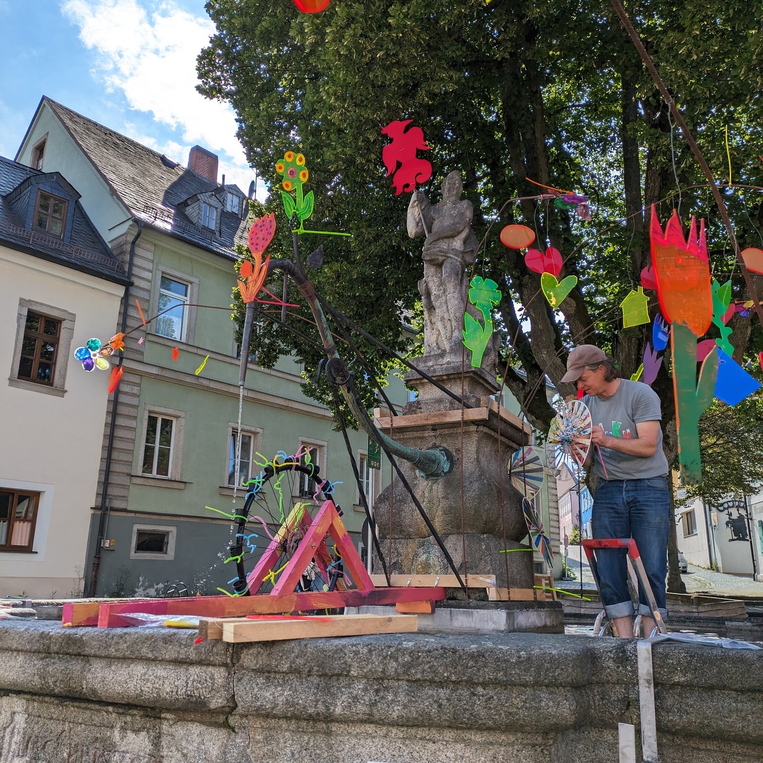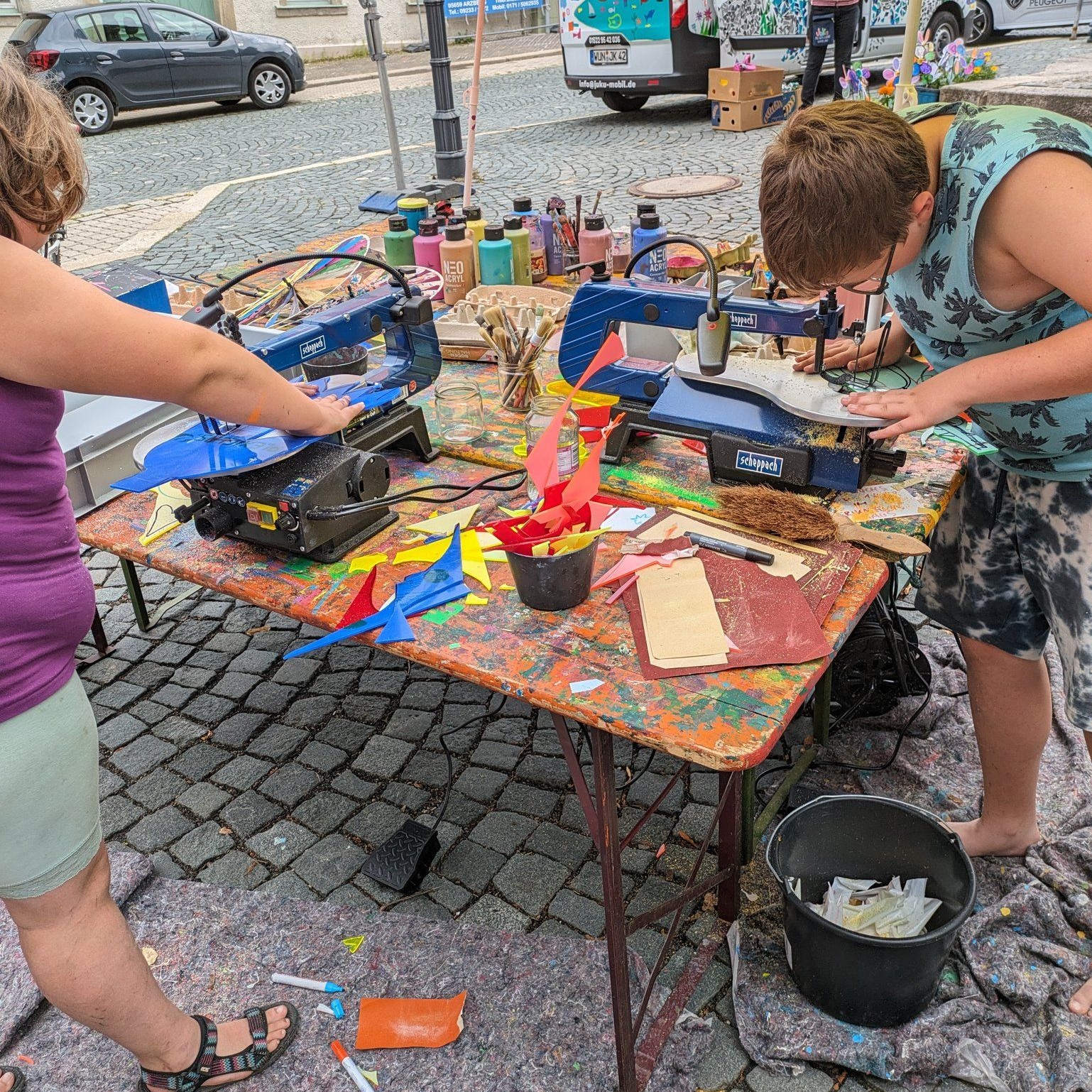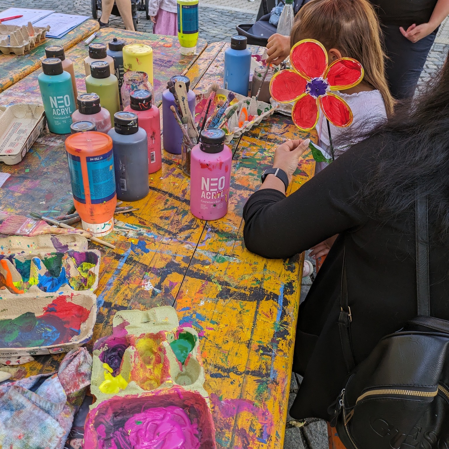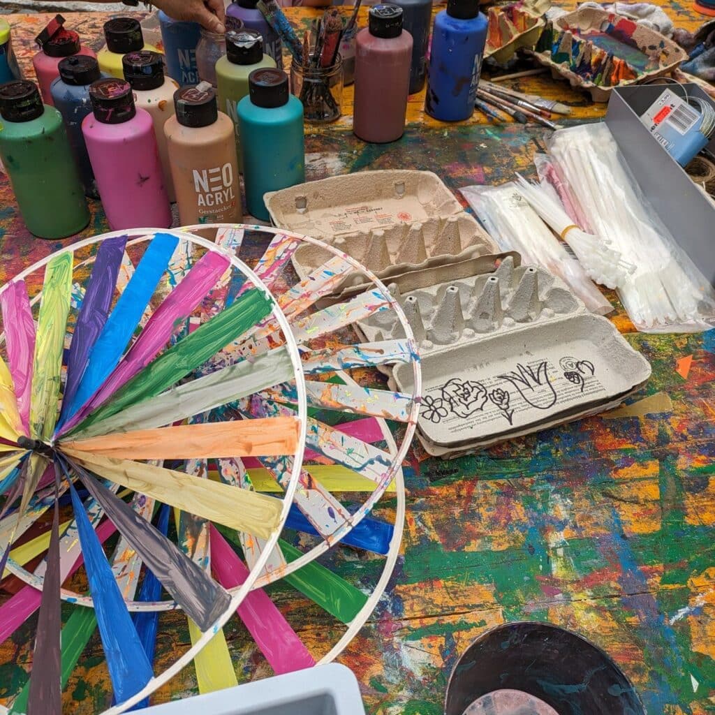 Die Kinder haben mit großem Eifer und Geschick beim Brunnenschmücken mitgewirkt. Zuerst pflanzten sie Blumen, um den Brunnenbereich zu verschönern. Danach gingen sie ans Werk und sägten aus Plexiglas filigrane Figuren wie Vögel, Blumen, Herzen, Sterne und Häuser aus – eine echte Herausforderung, die sie mit Bravour meisterten! 🌟Mit viel Sorgfalt bemalten sie auch die Gestelle für das Wasserrad und die Windräder mit Acrylfarben, was den Brunnen zu einem lebendigen und einladenden Ort machte. Ihr kreatives Engagement hat den Brunnen in ein farbenfrohes Kunstwerk verwandelt! 🎨🌈