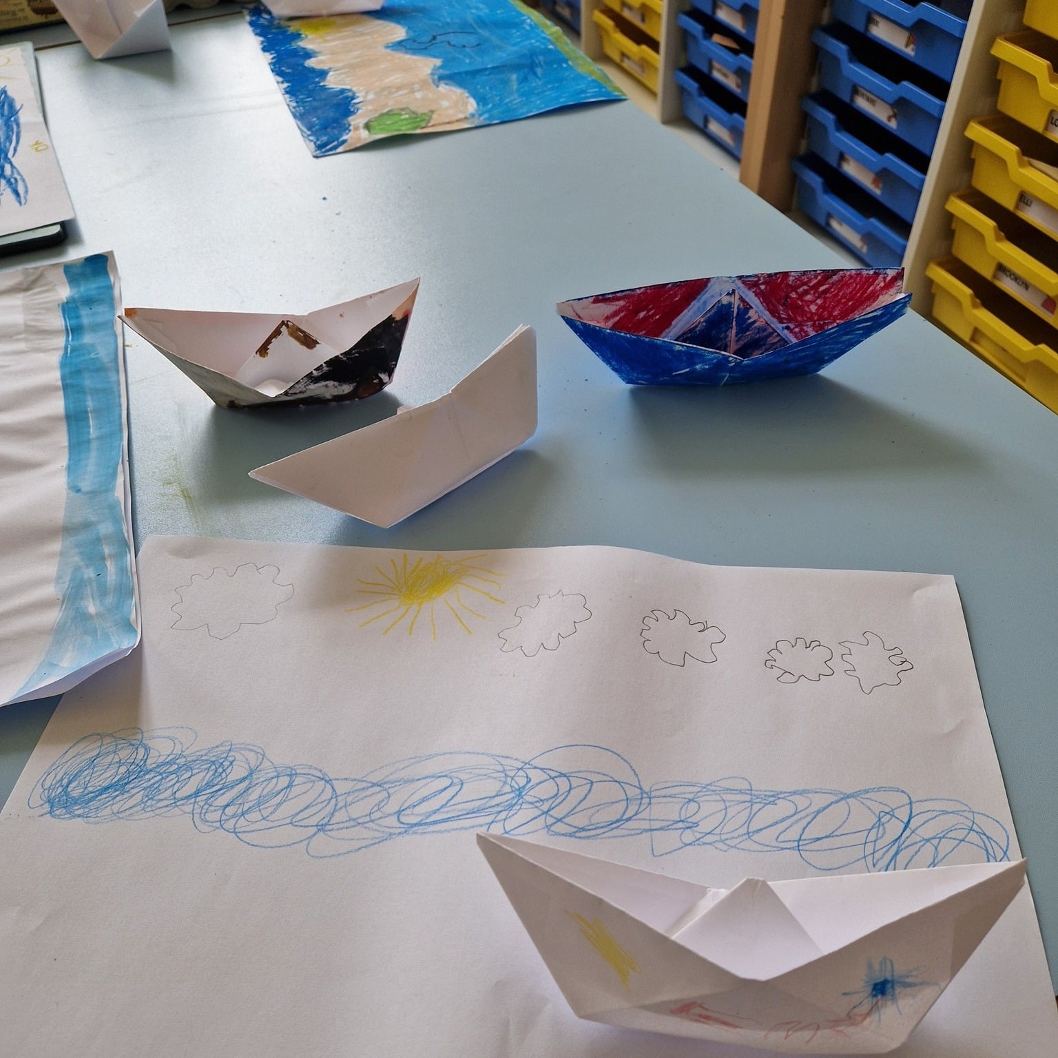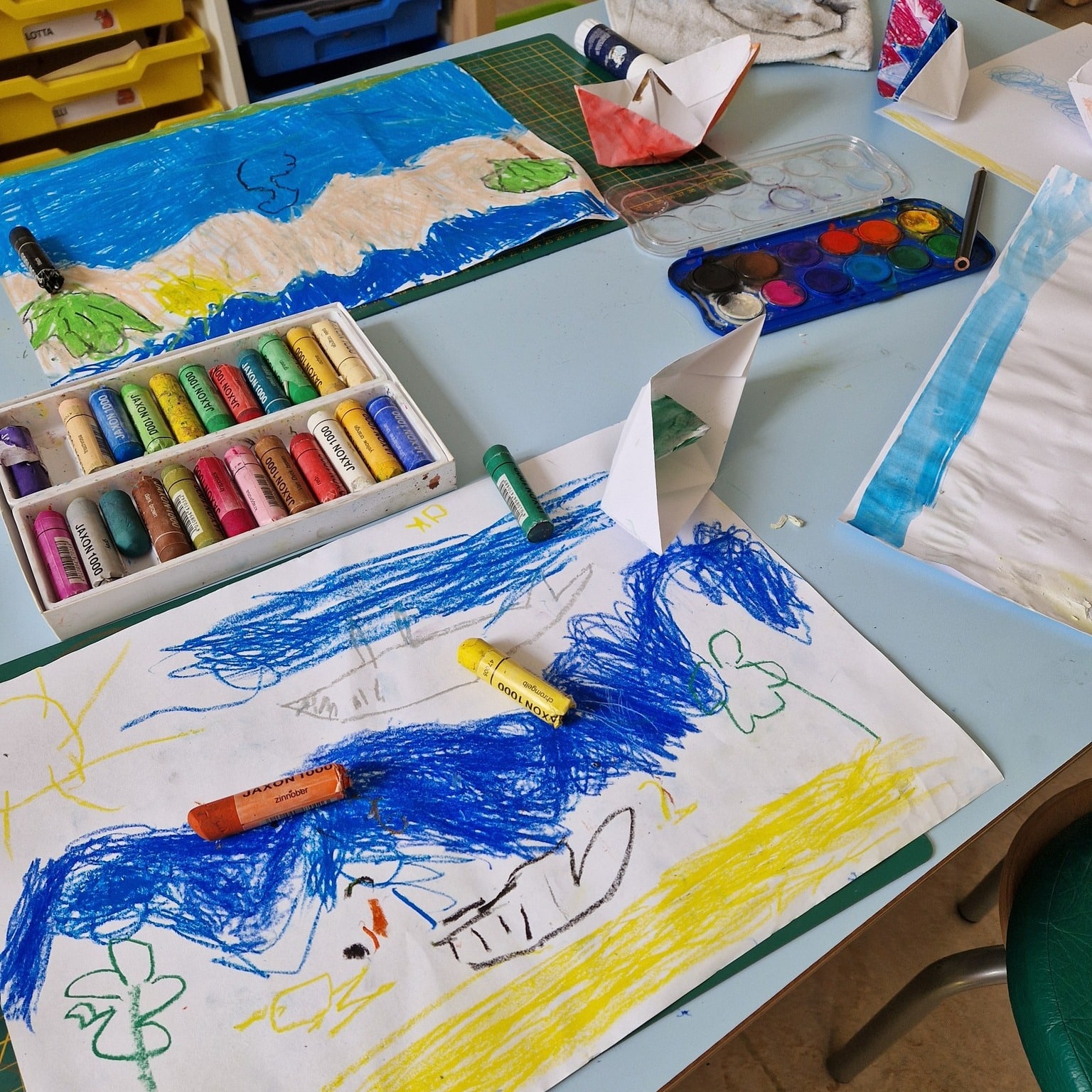 Hier ein kleiner Sneak Peak aus Juli! Die Kinder waren in bester Laune und haben fleißig Schiffe gefaltet und bemalt. Dazu entstanden wunderschöne Meeresbilder, die perfekt auf die bevorstehenden Ferien einstimmen! 🎨😊