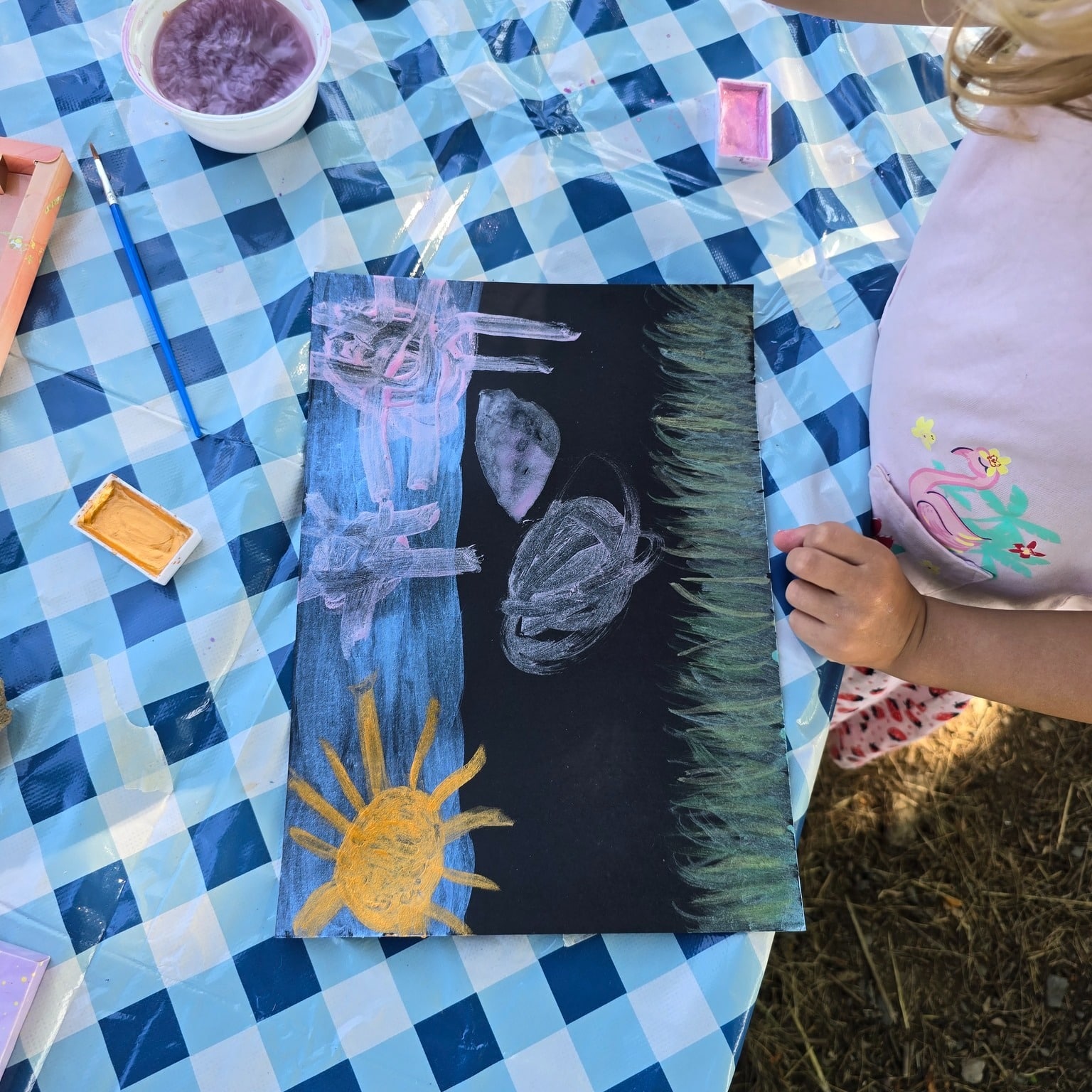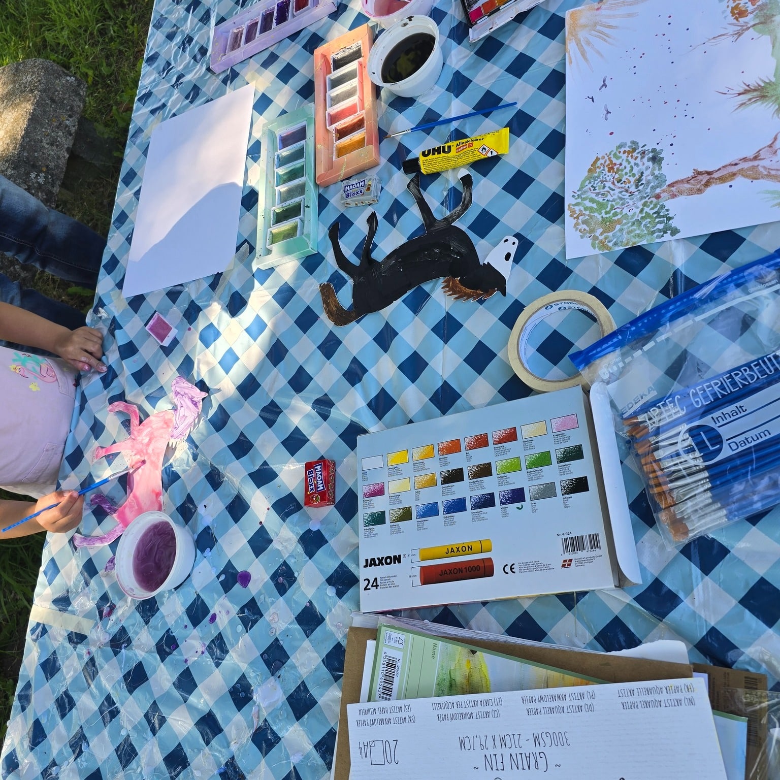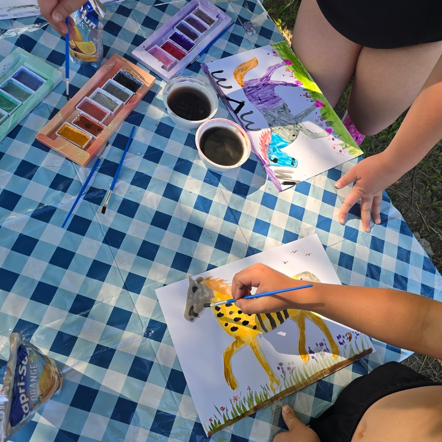 Mit Glitzerfarben und viel Kreativität haben die Kinder aus Papppferden bunte Kunstwerke gestaltet. Jedes Pferd wurde auf einen individuell gestalteten Hintergrund geklebt und die Kinder erzählten begeistert, wo und wie ihre Pferde leben. 🌟
