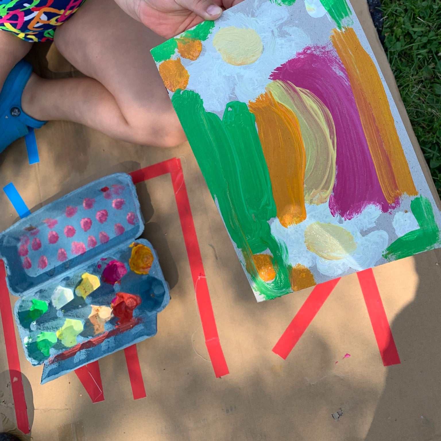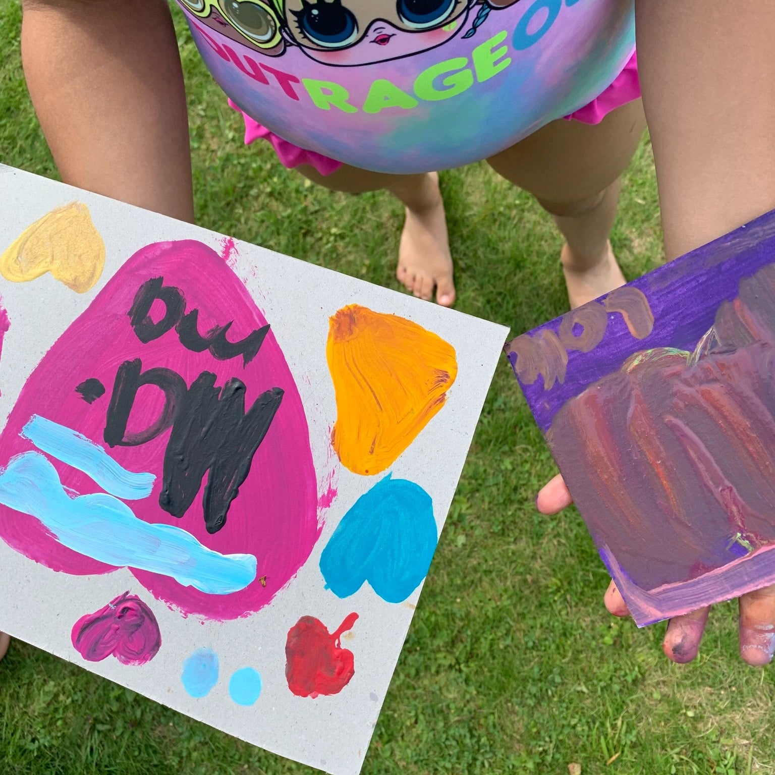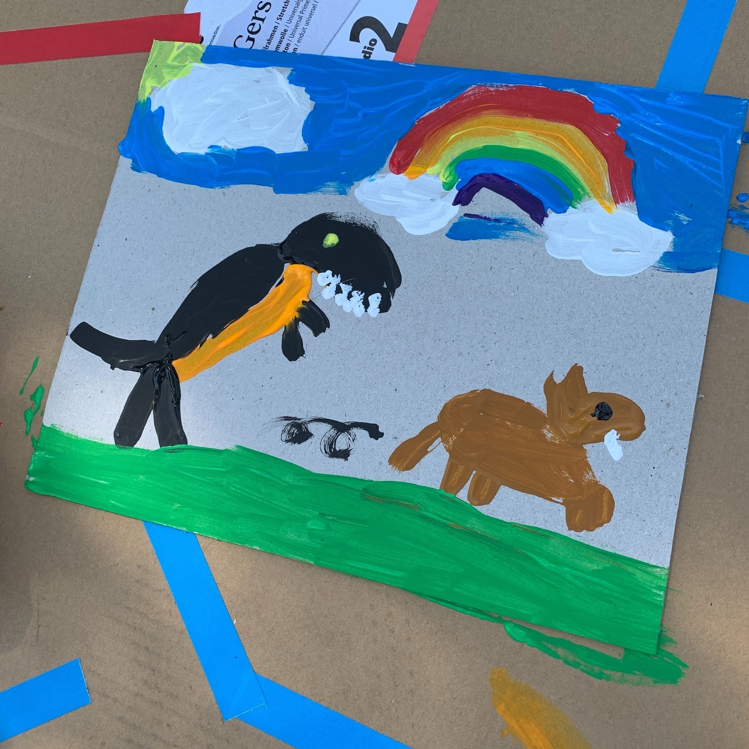 In den Osterferien wurde im Kinderhaus in Hohenberg ordentlich Farbe auf Pappe versprüht! Beim Workshop zum Thema Graffiti...