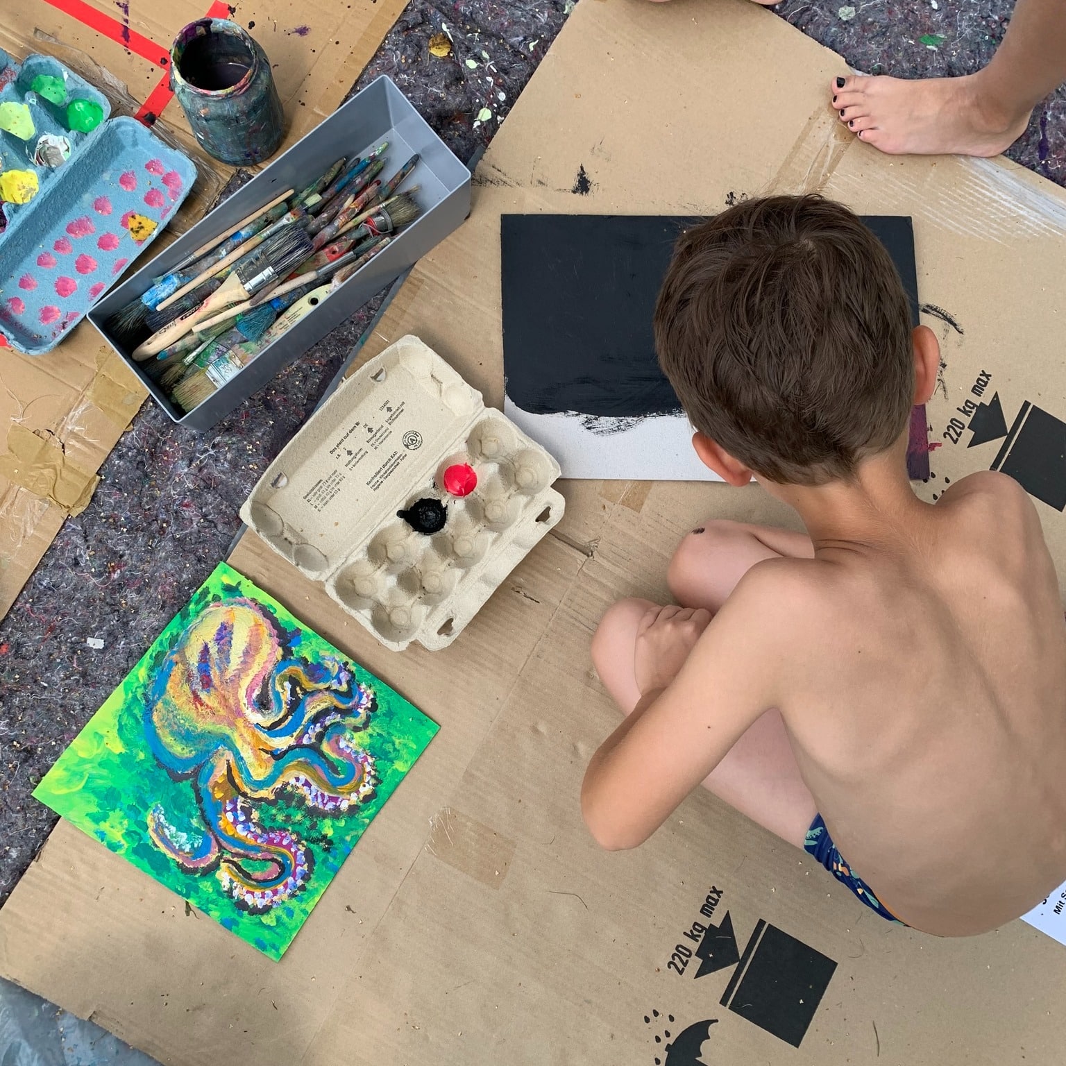 Im Atelier an den Marktwiesen wurde experimentiert, gestempelt und wild gestaltet!Aus Filzakustikplatten schnitten die Teilnehmenden geometrische Formen, klebten...