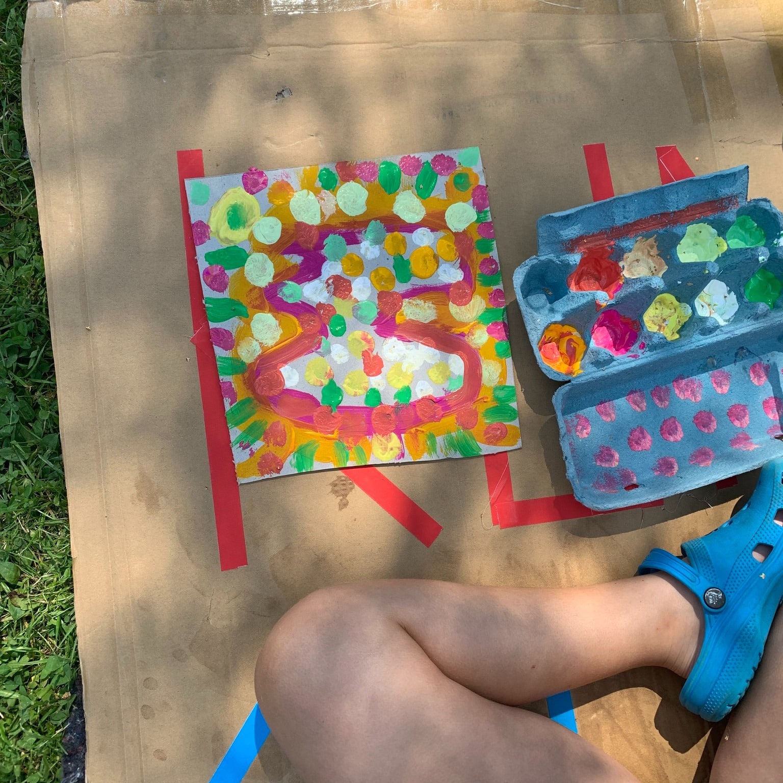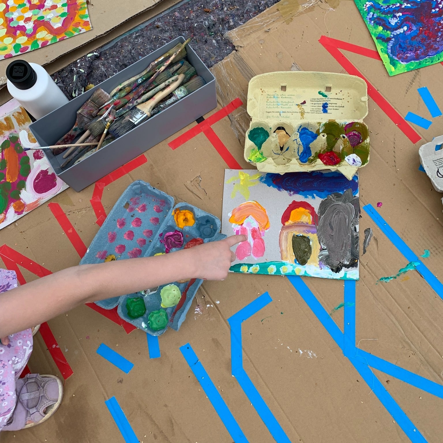 Die Teilnehmenden haben bunte Acrylbilder in verschiedenen Techniken gestaltet. Mit Tape Art kombiniert entstanden geometrische, farbenfrohe Kunstwerke, die...