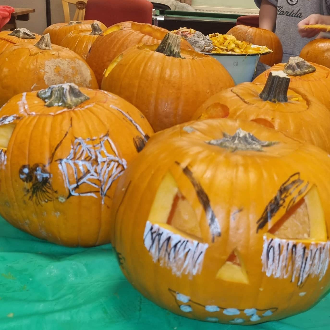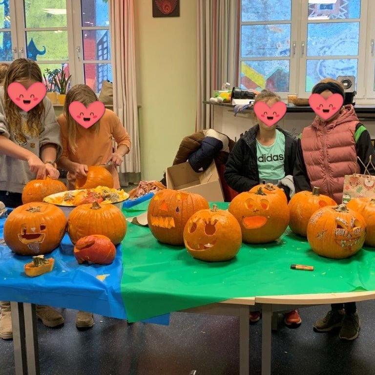 Mit dem Kürbisschnitzen haben wir den Nerv getroffen – die Nachfrage war riesig, und wir waren regelrecht überrannt! Die Kinder (und Erwachsene!) hatten riesigen Spaß dabei, die Kürbisse in wahre Kunstwerke zu verwandeln. Gruselige Fratzen und lustige Gesichter entstanden – und natürlich jede Menge Kürbisgeister! 👻🍂