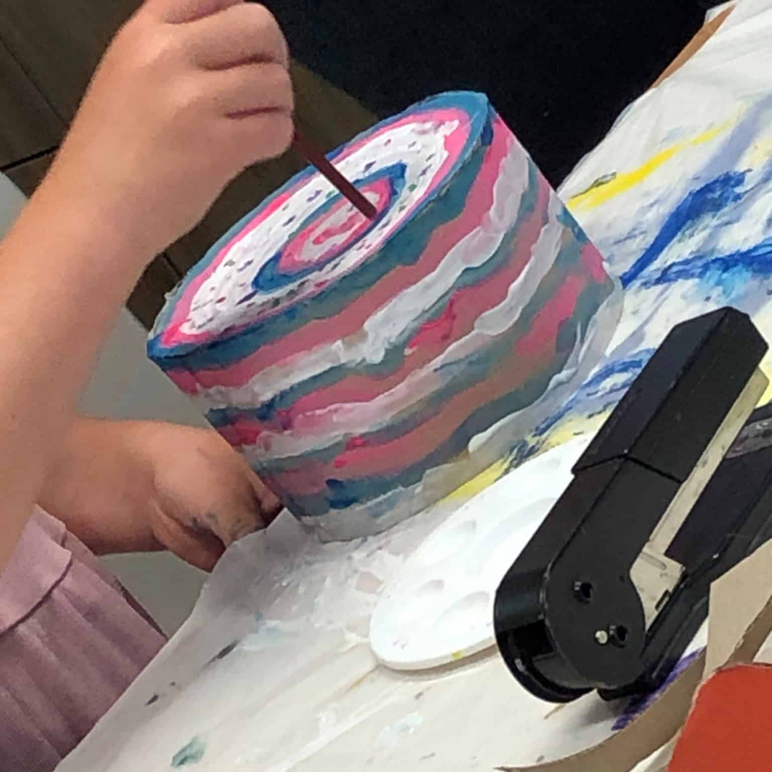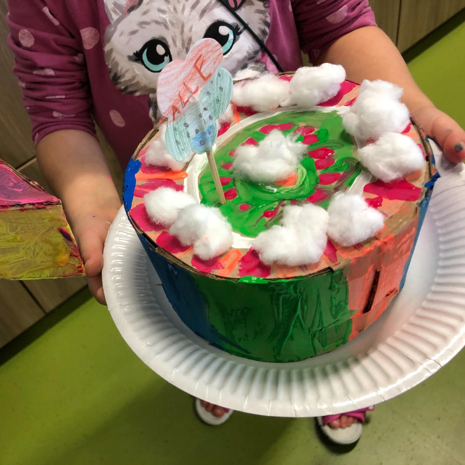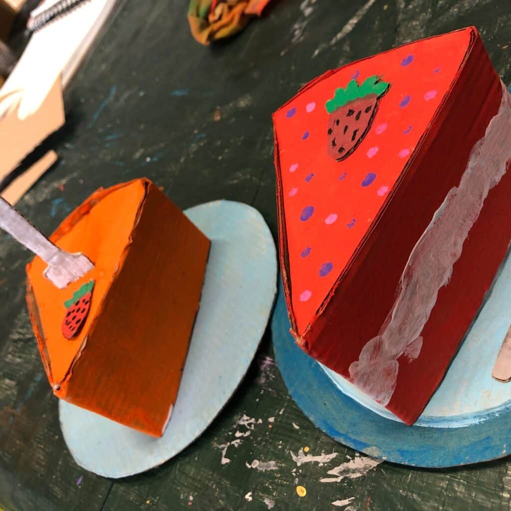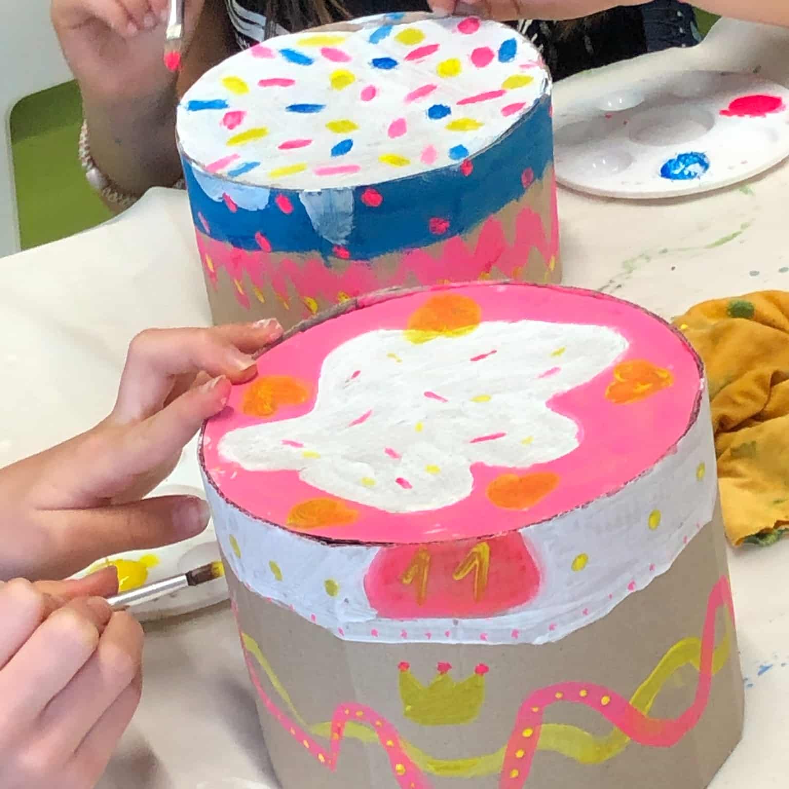 Es war den ganzen Tag über richtig was los – bis zu 20 kreative Köpfe haben gemeinsam gefeiert und gewerkelt! Aus Pappe wurden tolle Kuchen- und Tortenstücke gebaut und anschließend mit bunter Temperafarbe bemalt. 🍰🎈 Die kleinen und großen Gäste waren begeistert dabei und sorgten für jede Menge Farbe und Fantasie.
