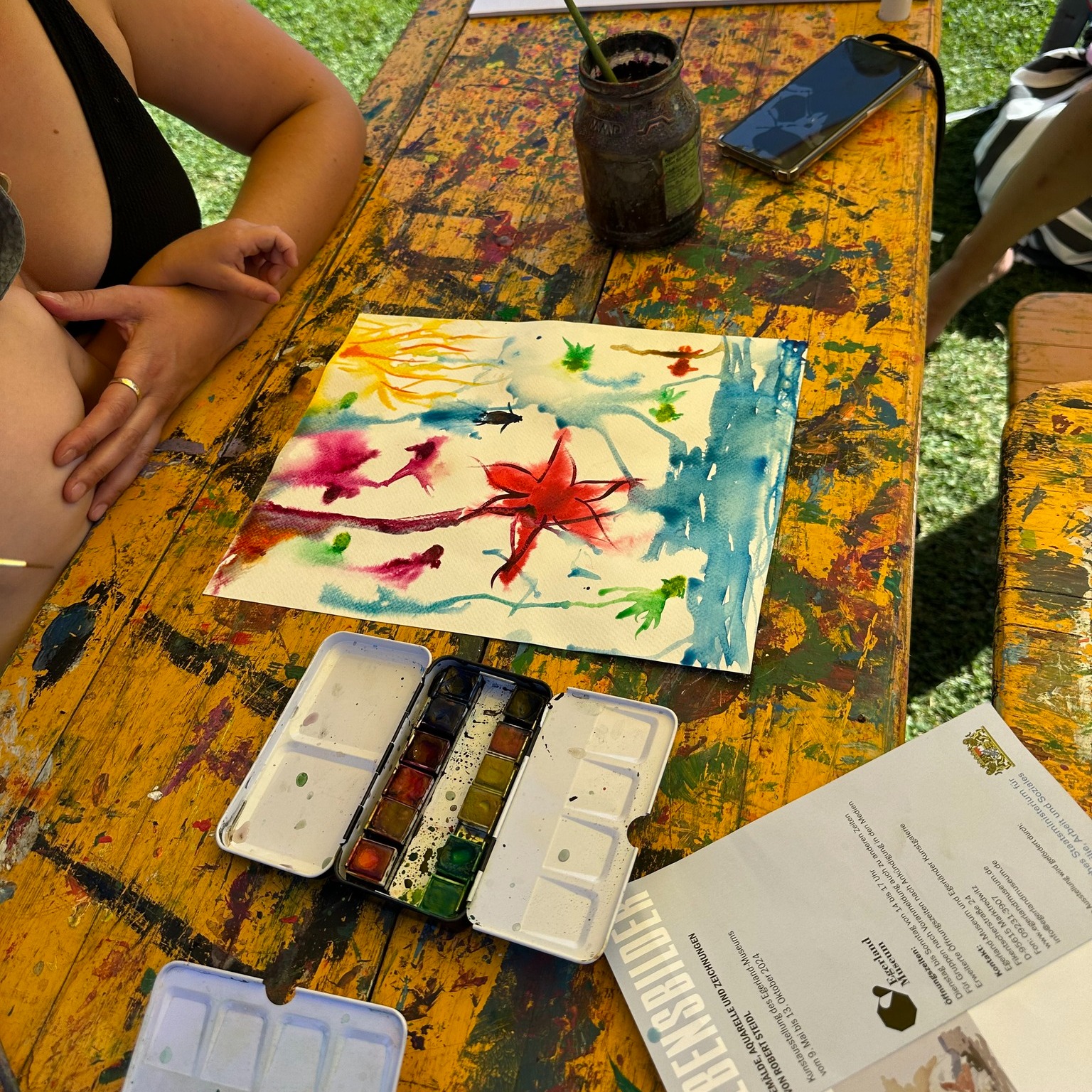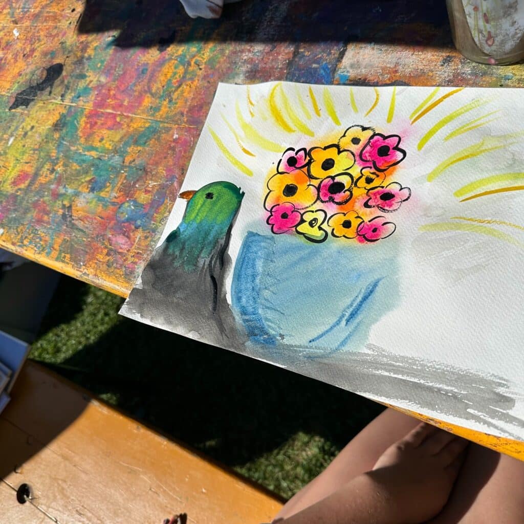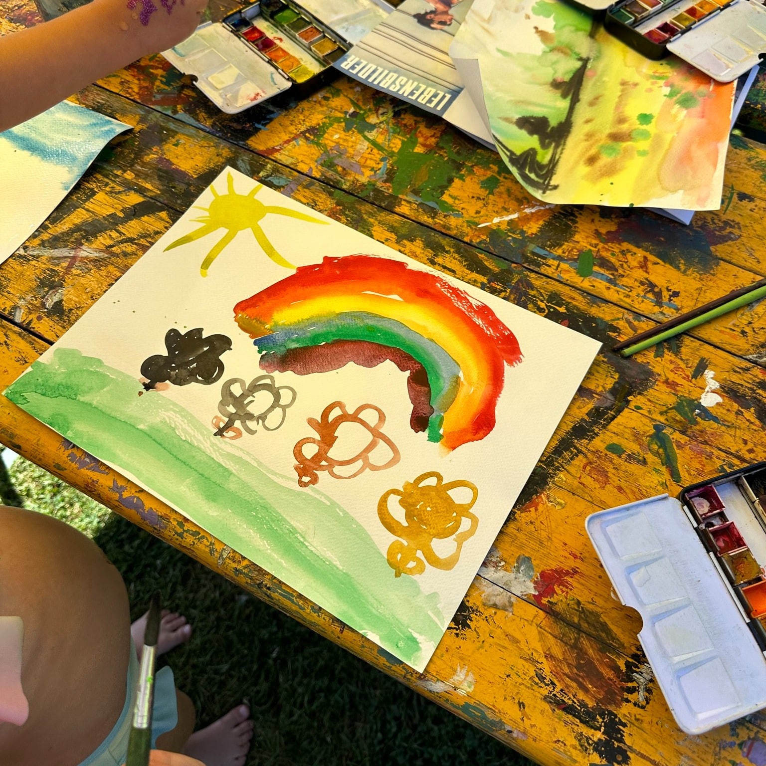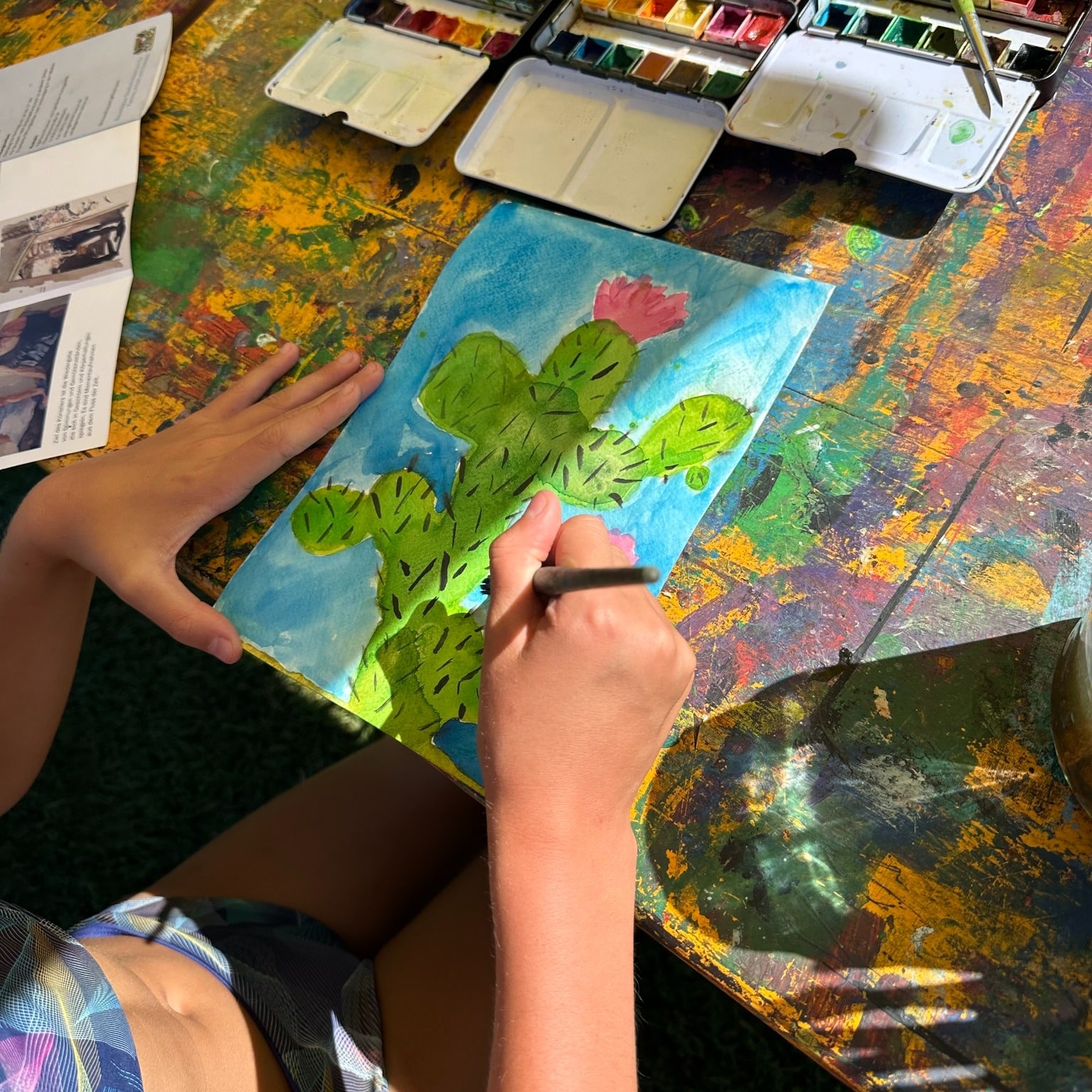 Die Aktion war ein voller Erfolg – auch die Hitze konnte uns nicht stoppen! Die Kinder haben sich begeistert ans Aquarellmalen gemacht und sich von Künstlern inspirieren lassen. 🌈✨