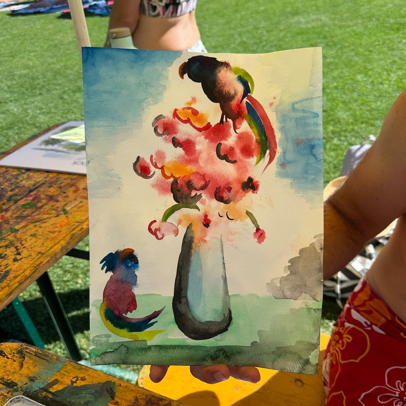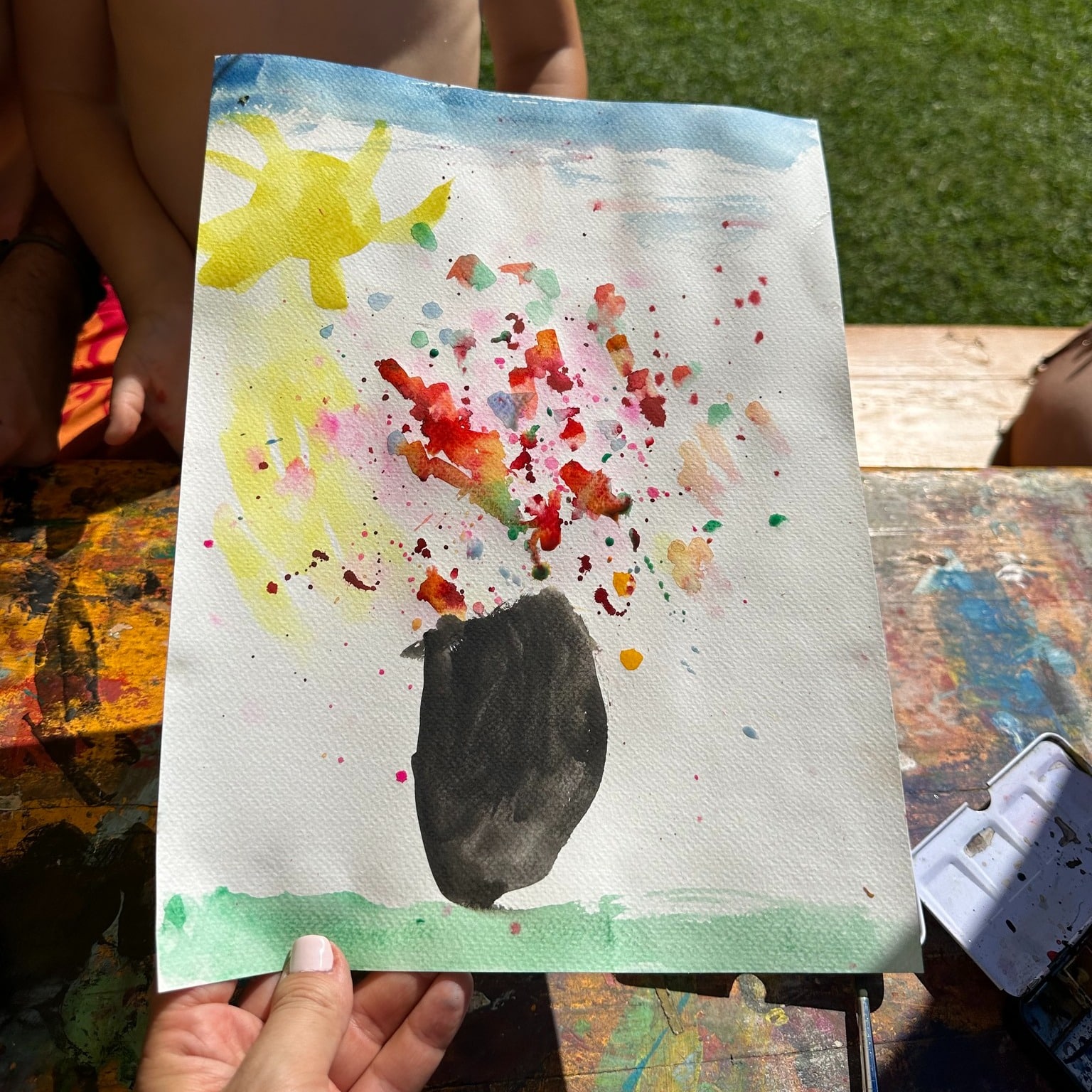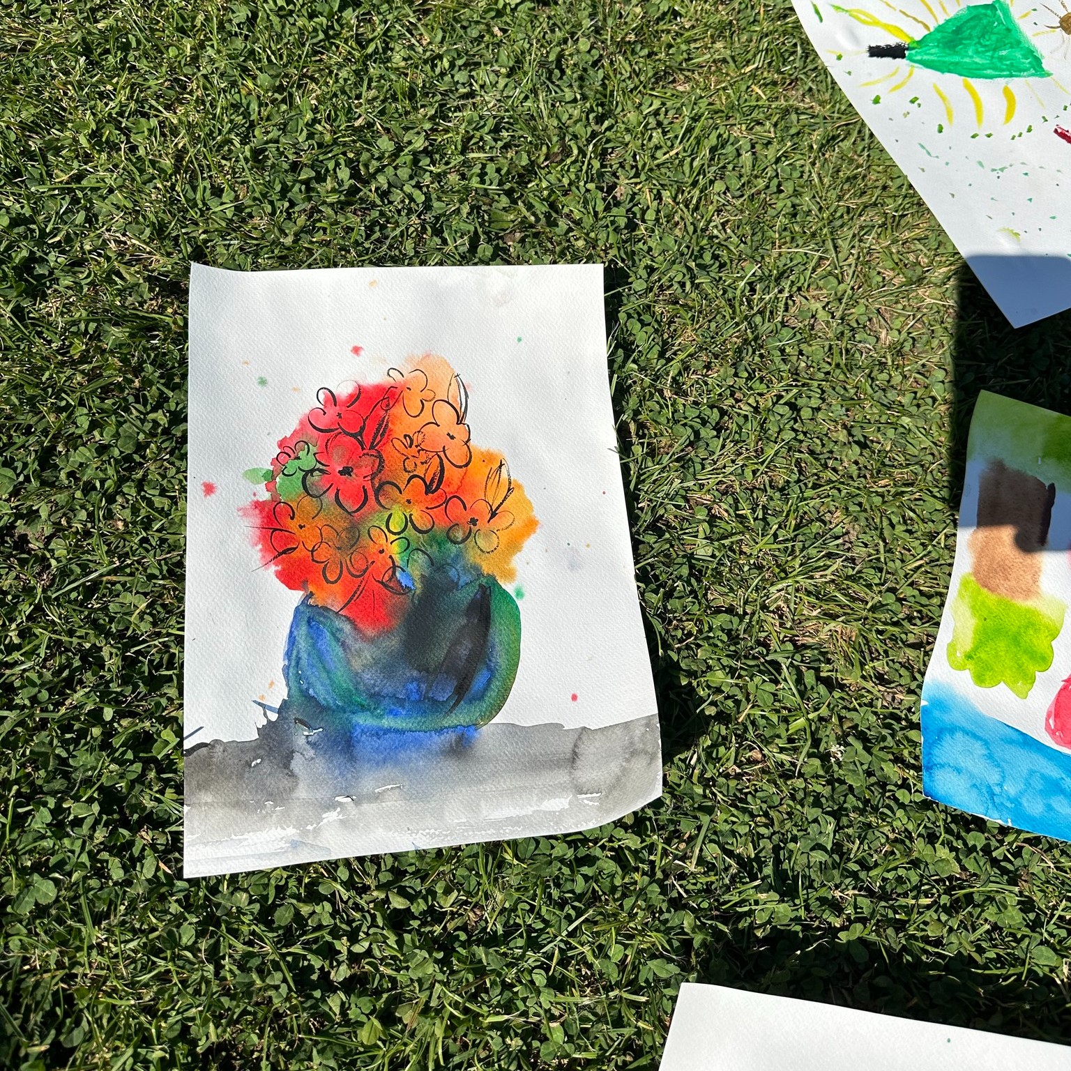 Die Aktion war ein voller Erfolg – auch die Hitze konnte uns nicht stoppen! Die Kinder haben sich begeistert ans Aquarellmalen gemacht und sich von Künstlern inspirieren lassen. 🌈✨