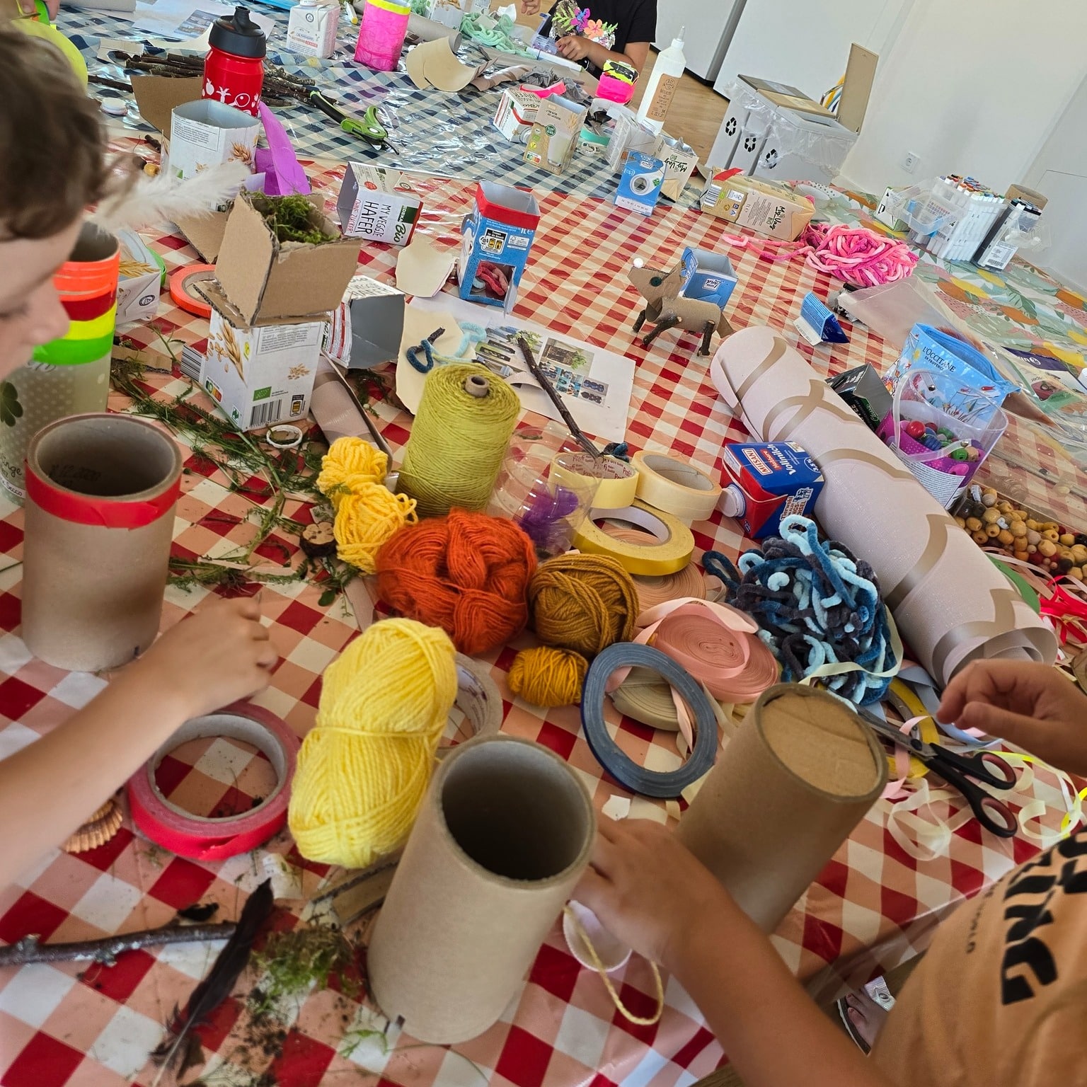 Die Kinder waren so begeistert, dass sie gar nicht aufhören wollten, und mussten schließlich ausgebremst werden. Am Ende hatten wir eine Vielzahl wunderschöner, neuer Objekte aus alten Materialien. Ein voller Erfolg und jede Menge Spaß! ✂️🎨✨