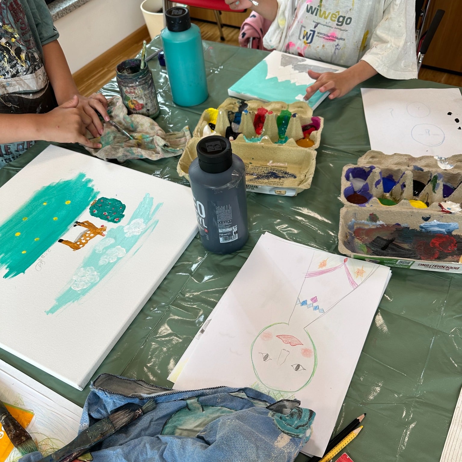 Es war einfach toll! Aus vielen Leinwänden haben wir eine riesige Wand in der Schule als Mosaik gestaltet – und das Ergebnis ist richtig beeindruckend! Das Thema „Heimatort und Verbundenheit“ wurde kreativ umgesetzt und spiegelt die Gemeinschaft der Kinder perfekt wider. Die Kinder und die Schule sind überglücklich, und ich ebenso! 💖