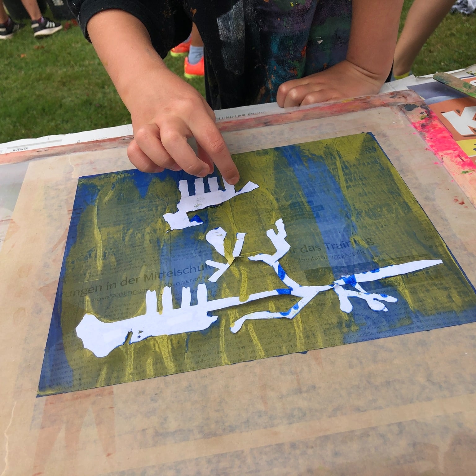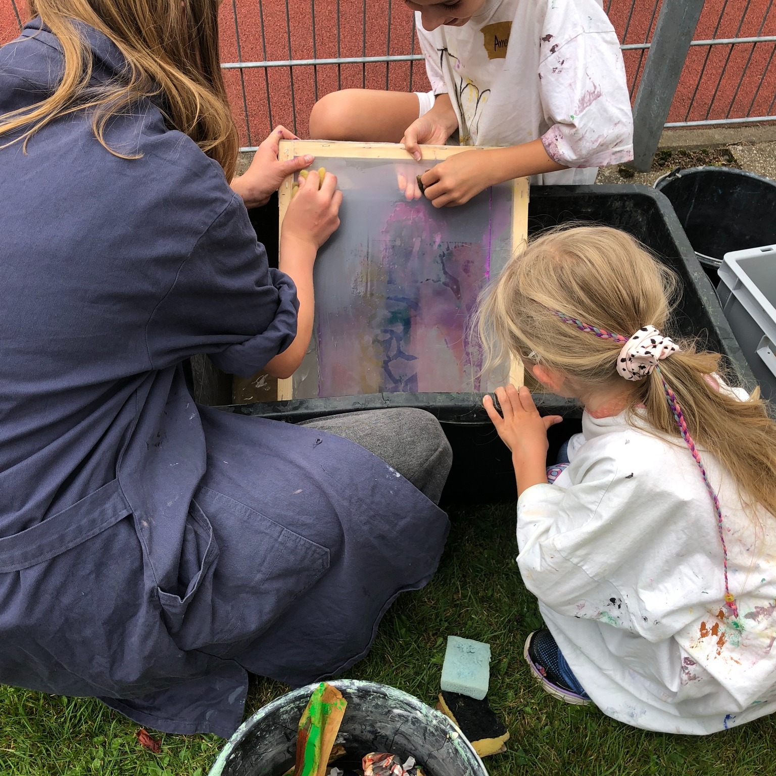 Es war ein super kreativer Tag! Die Kids haben in Teams gearbeitet und eine quirlige, harmonische Atmosphäre geschaffen. Das Thema war Siebdruck, und wir sind richtig ins Detail gegangen. Zuerst gab’s den Vollflächendruck, bei dem die Kinder eigene Schablonen aus Papier fertigten. Dann ging es weiter mit dem Drucken auf vorhandenen Rahmen – die Motive kamen richtig gut zur Geltung! 🙌👕 Alle waren so interessiert und motiviert, es war ein Spaß, gemeinsam kreativ zu sein! 🎉