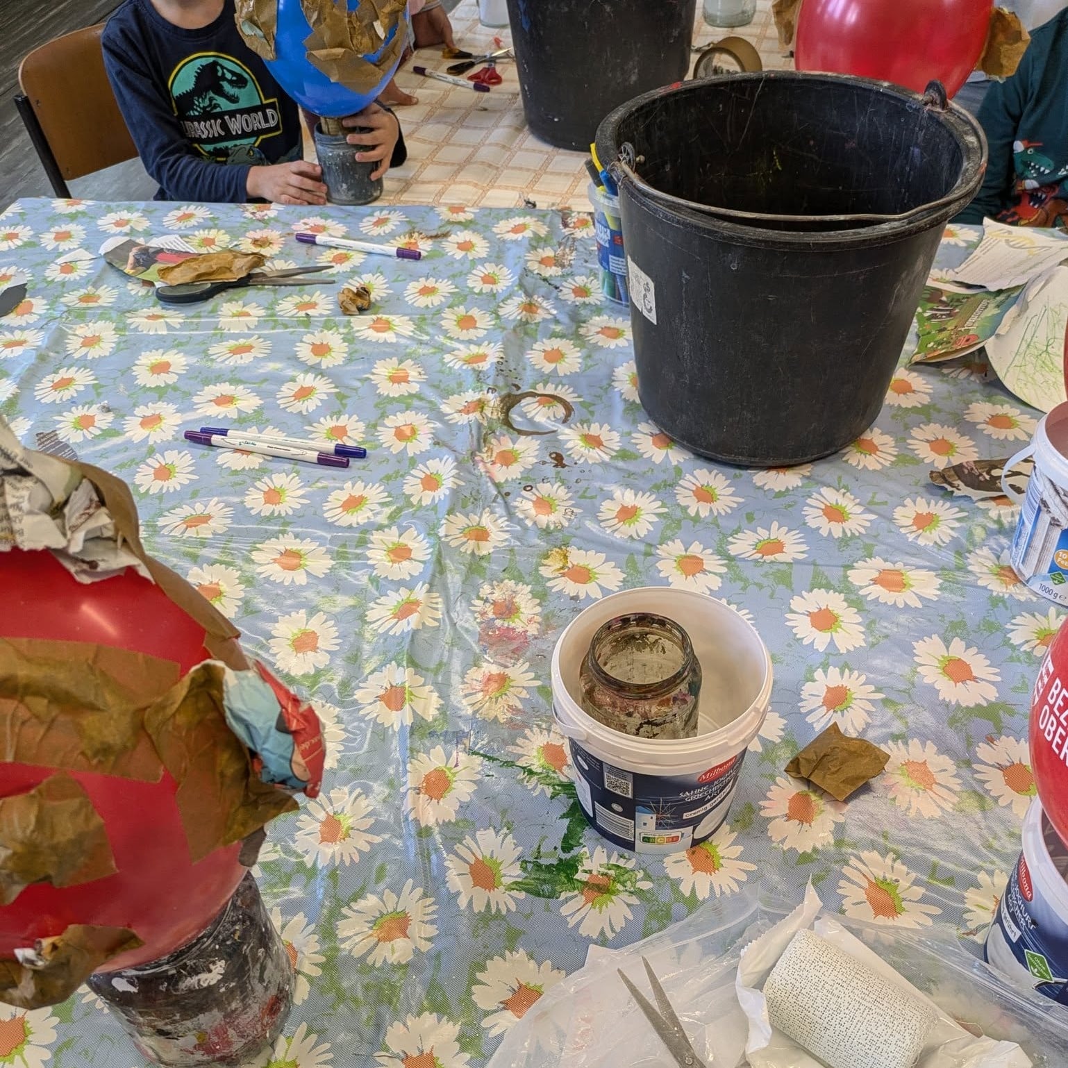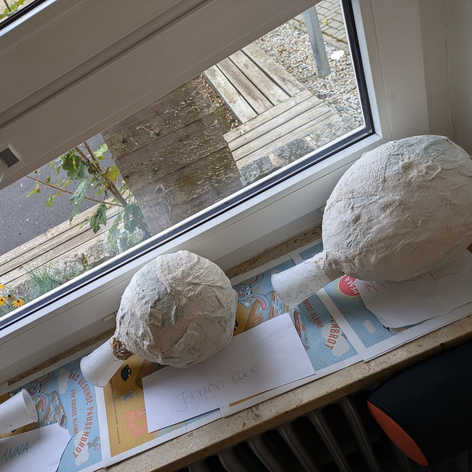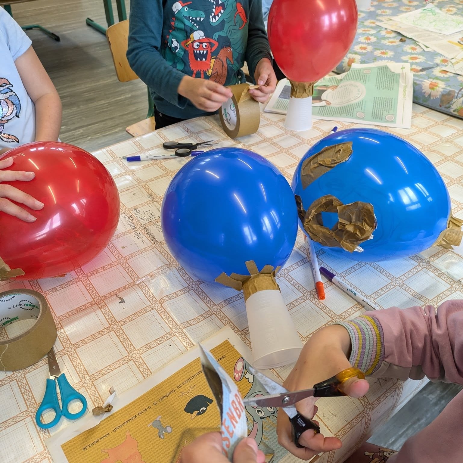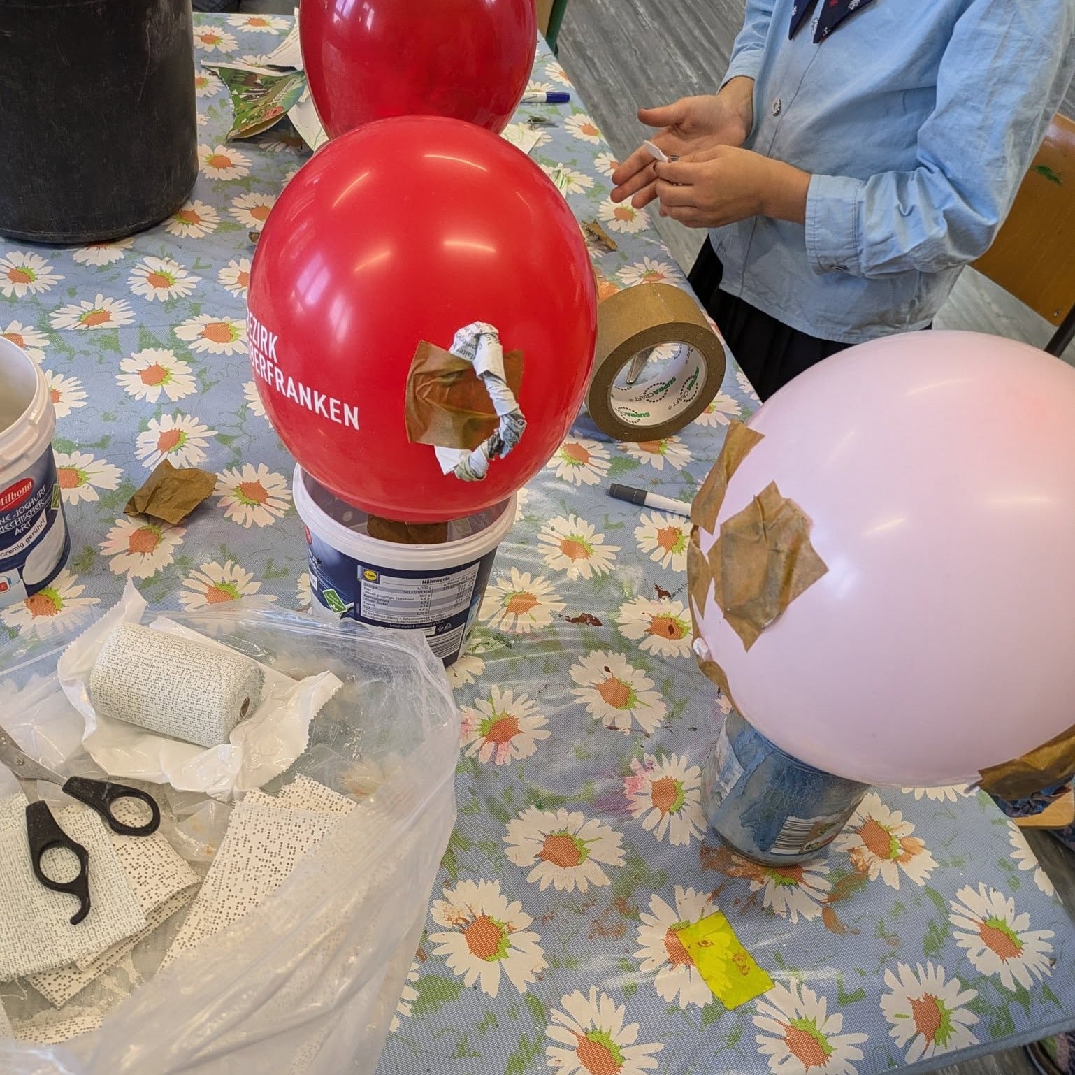 Mit Luftballons, Bechern, Zeitungen und Klebeband entstanden einzigartige Köpfe! 🏺🎨 Nachdem die Grundformen aufgebaut waren, wurden sie mit Gipsbinden stabilisiert – eine spannende Erfahrung für die Kinder! 🤩