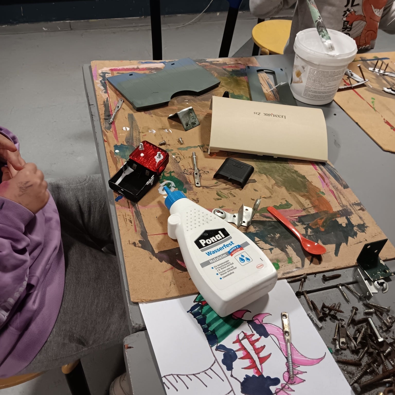 Wir sind dann die Skizzen handwerklich umgesetzt! Die Atmosphäre war super entspannt und kreativ. Es war toll zu sehen, wie die Kinder mit Begeisterung an ihren Ideen gearbeitet haben. Eine wunderbare Gelegenheit, ihre Kreativität zu entfalten! 🌟