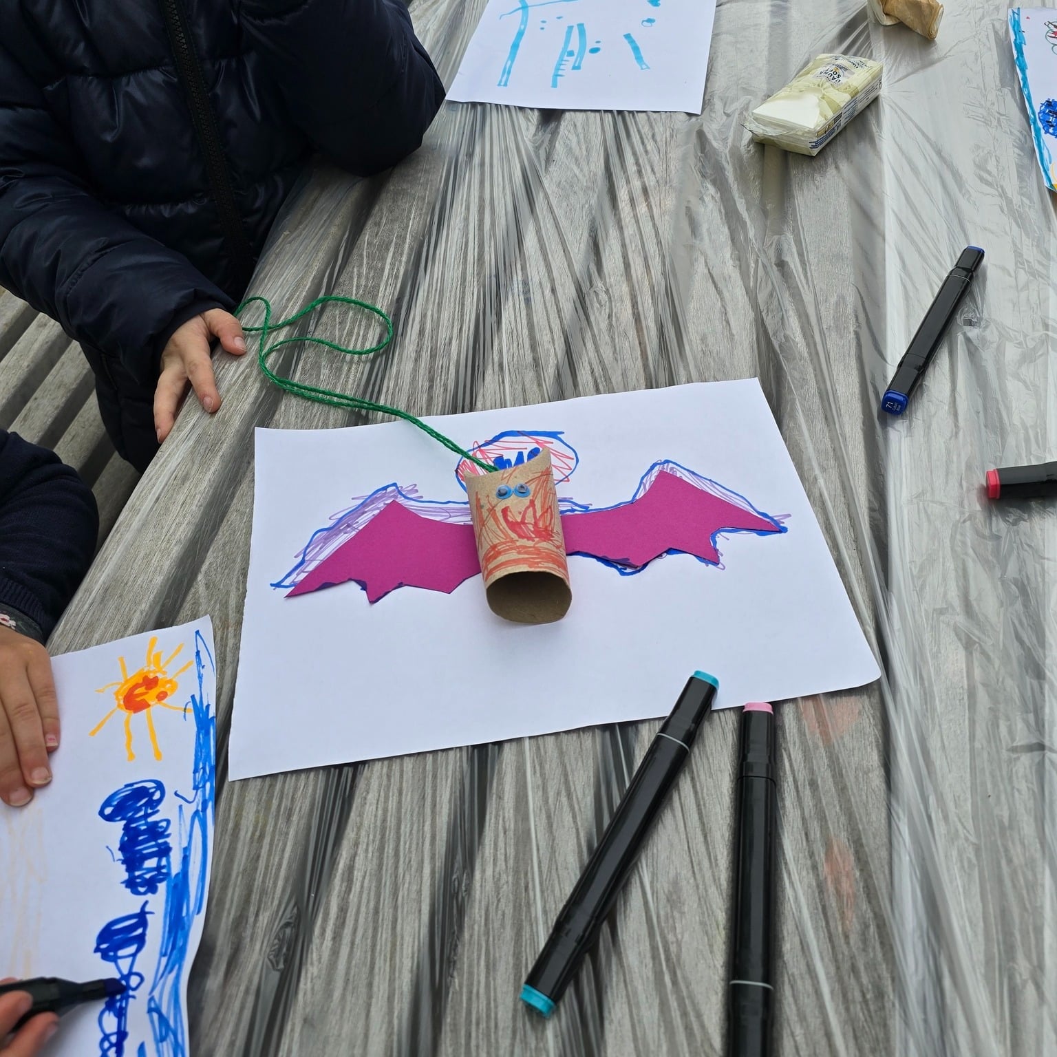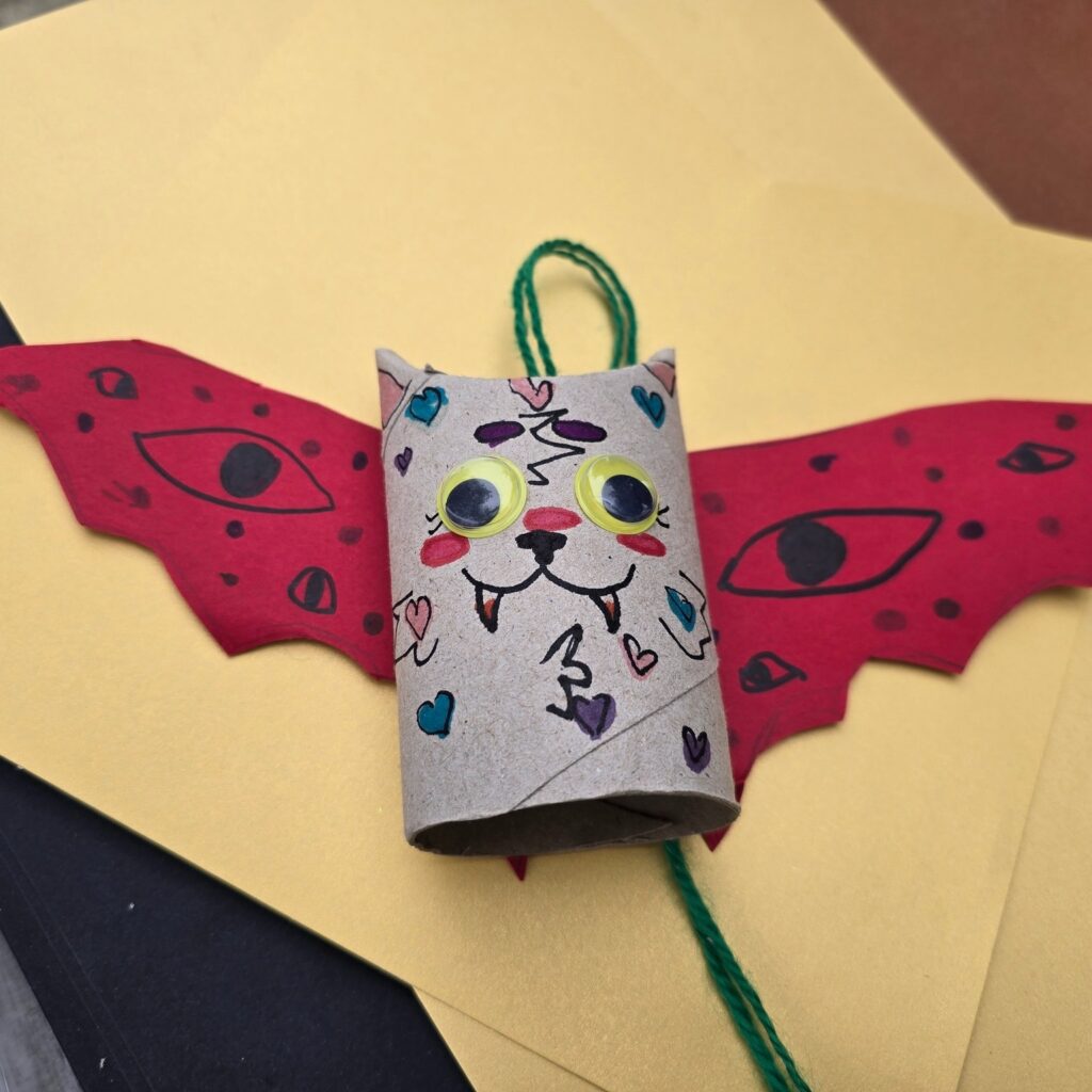 Über fünfzig bunte Fledermäuse wurden auf dem Kärwamarkt gebastelt! Mit WC-Papierrollen, Buntpapier, Wackelaugen und Filzstiften haben die Kinder ihre eigenen kleinen fliegenden Freunde erschaffen. Einige waren so begeistert, dass sie gleich eine ganze Fledermausfamilie mit nach Hause nahmen! 🎨
