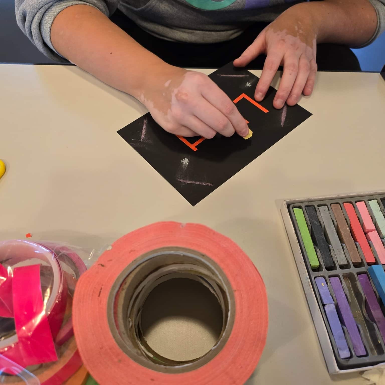 Die Teilnehmenden haben bunte Acrylbilder in verschiedenen Techniken gestaltet. Mit Tape Art kombiniert entstanden geometrische, farbenfrohe Kunstwerke, die...