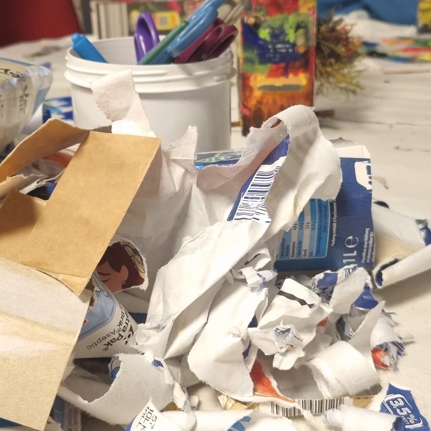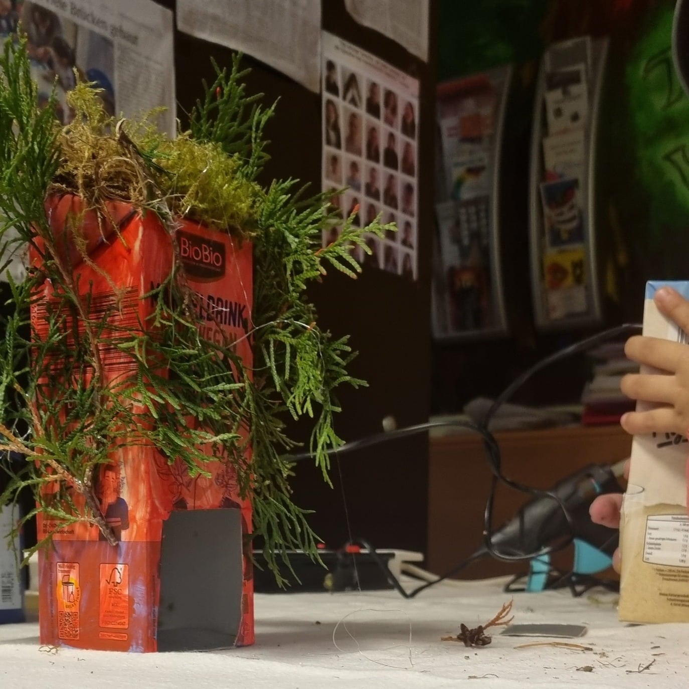Im Mehrgenerationenhaus Rehau haben die Kinder heute aus allen möglichen Materialien – Schuhkartons, Pappe, Kunststoffreste – bunte, kugelige...