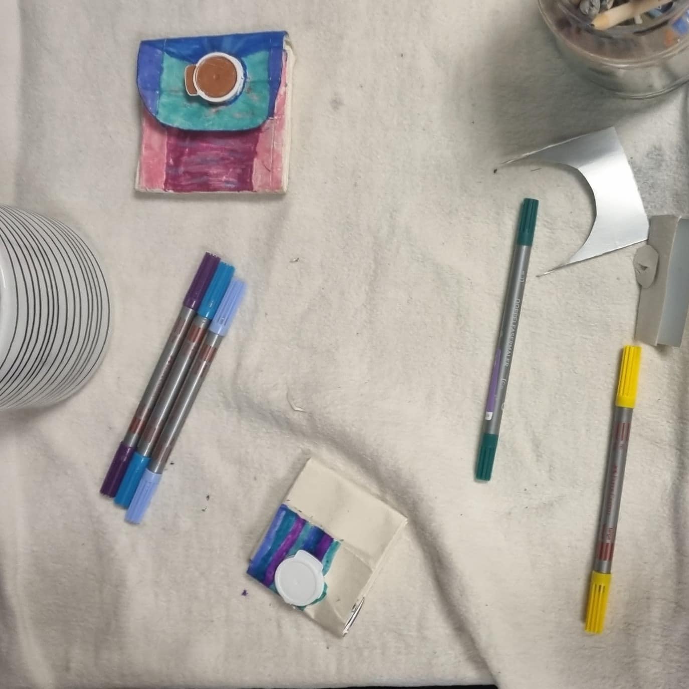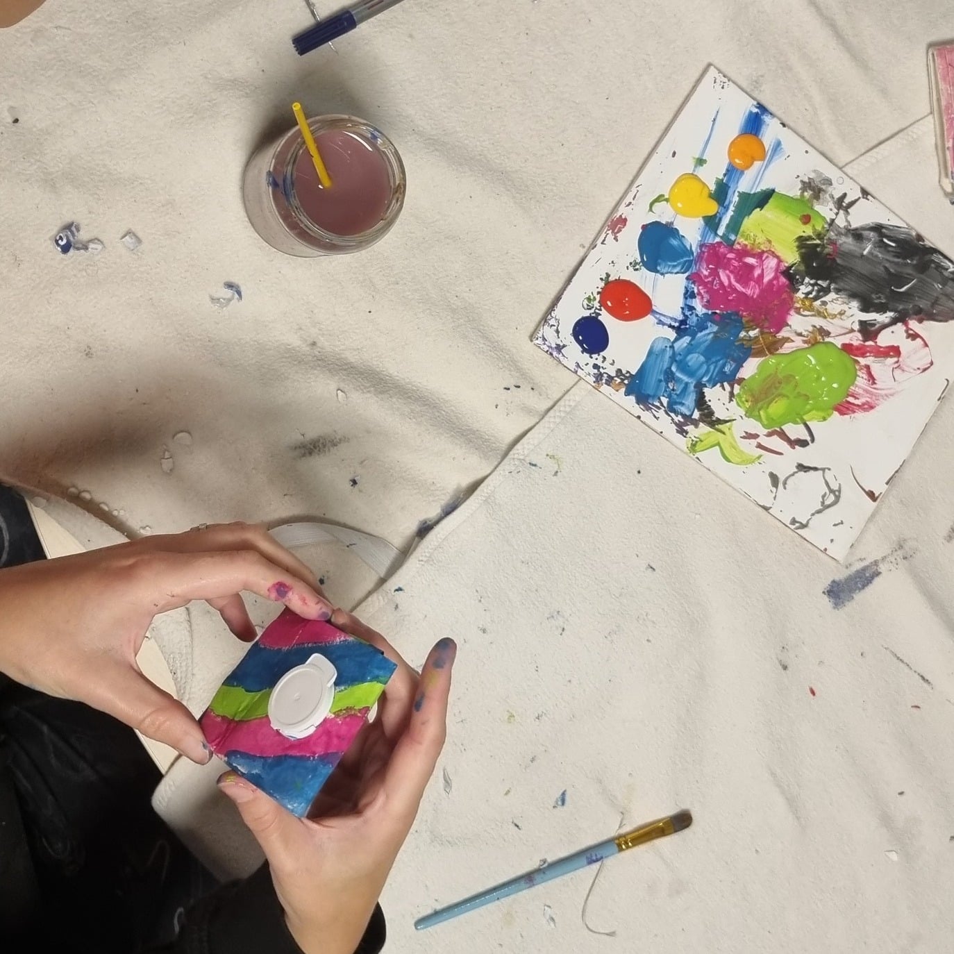 Die Kunstwerke vom letzten Termin wurden bunt bemalt und wer wollte, konnte noch mit Glitzerperlen dekorieren. Alle Kinder,...