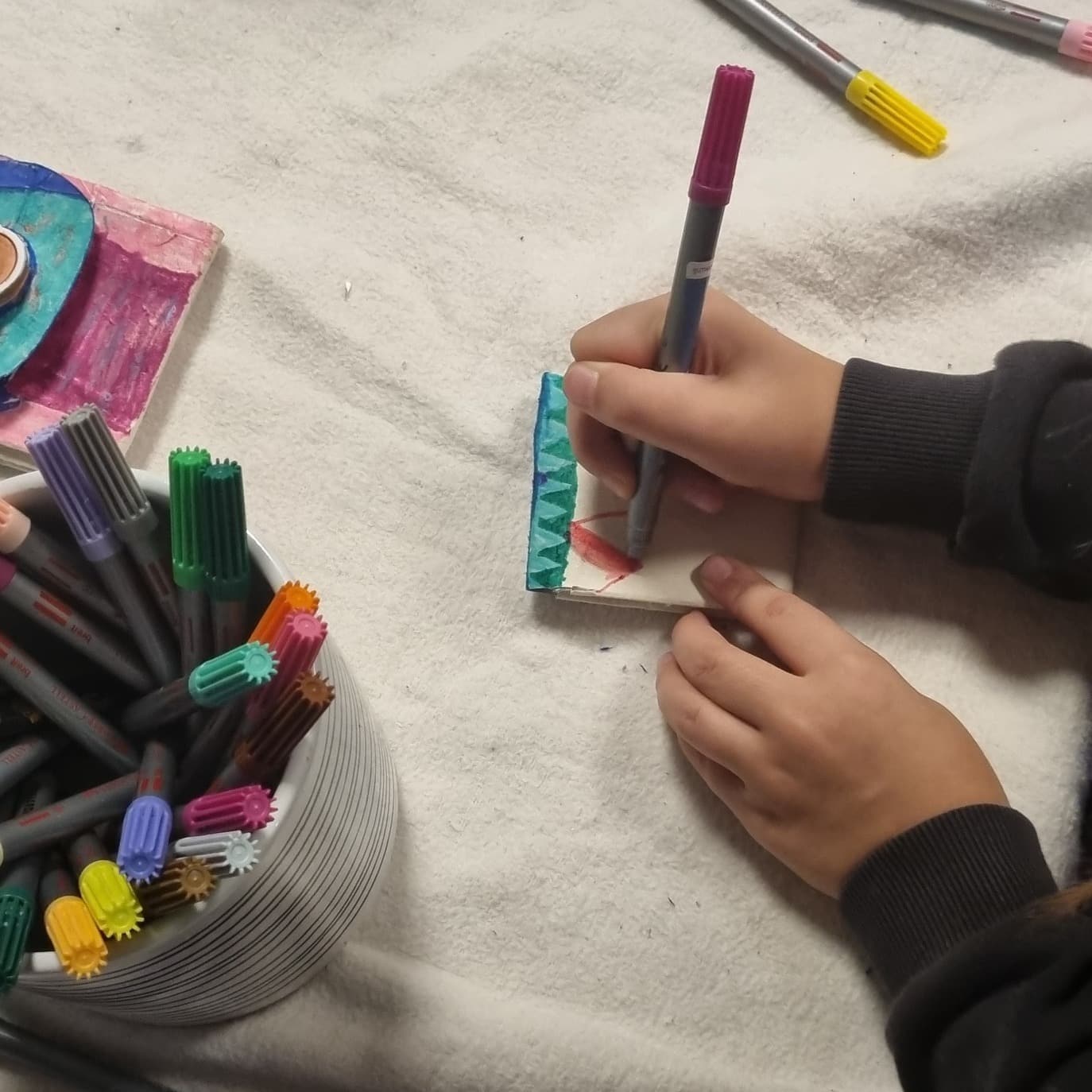 Im Jugendtreff Konradsreuth war die Stimmung richtig gut: Die individuell gestalteten Tonsachen aus den letzten Terminen wurden bemalt...