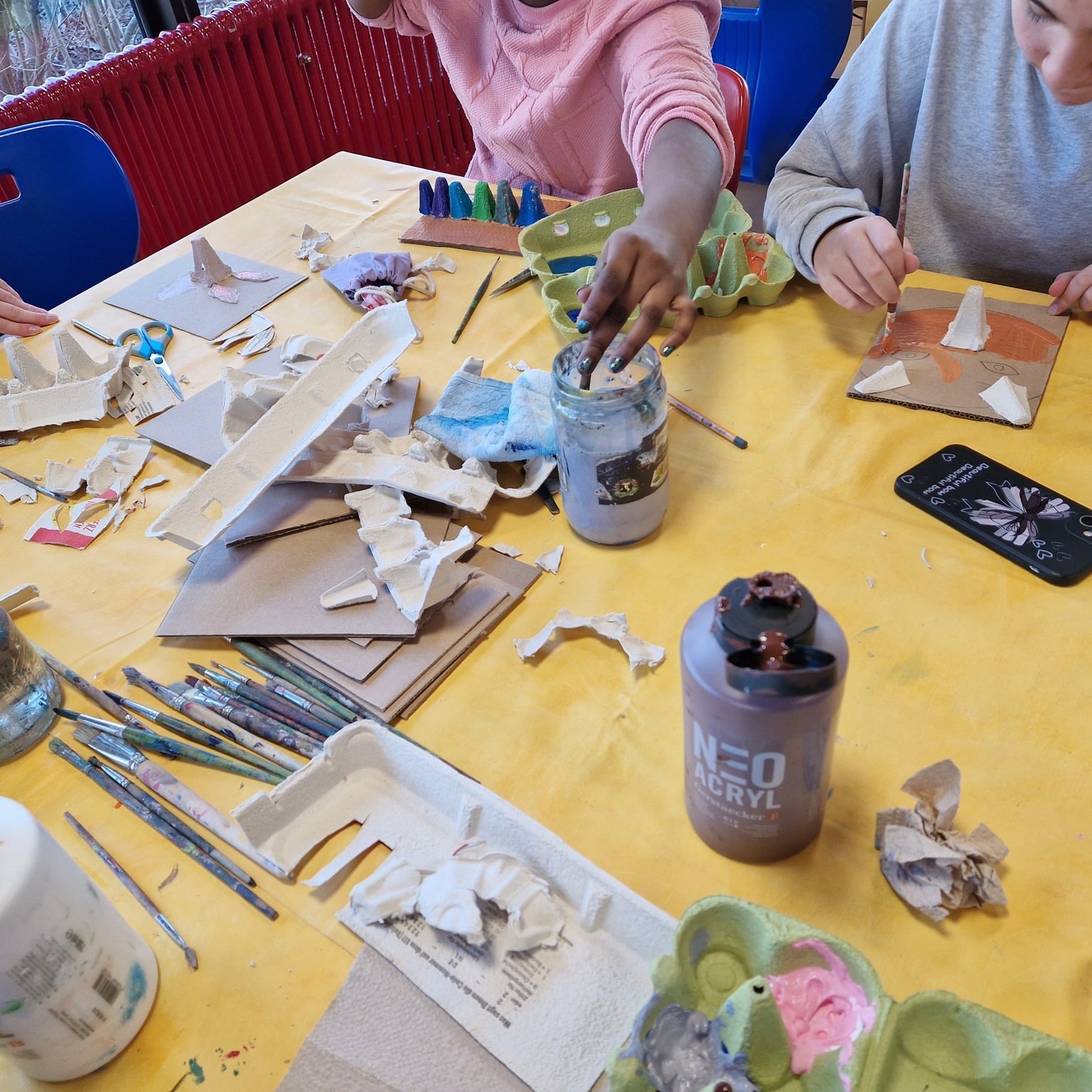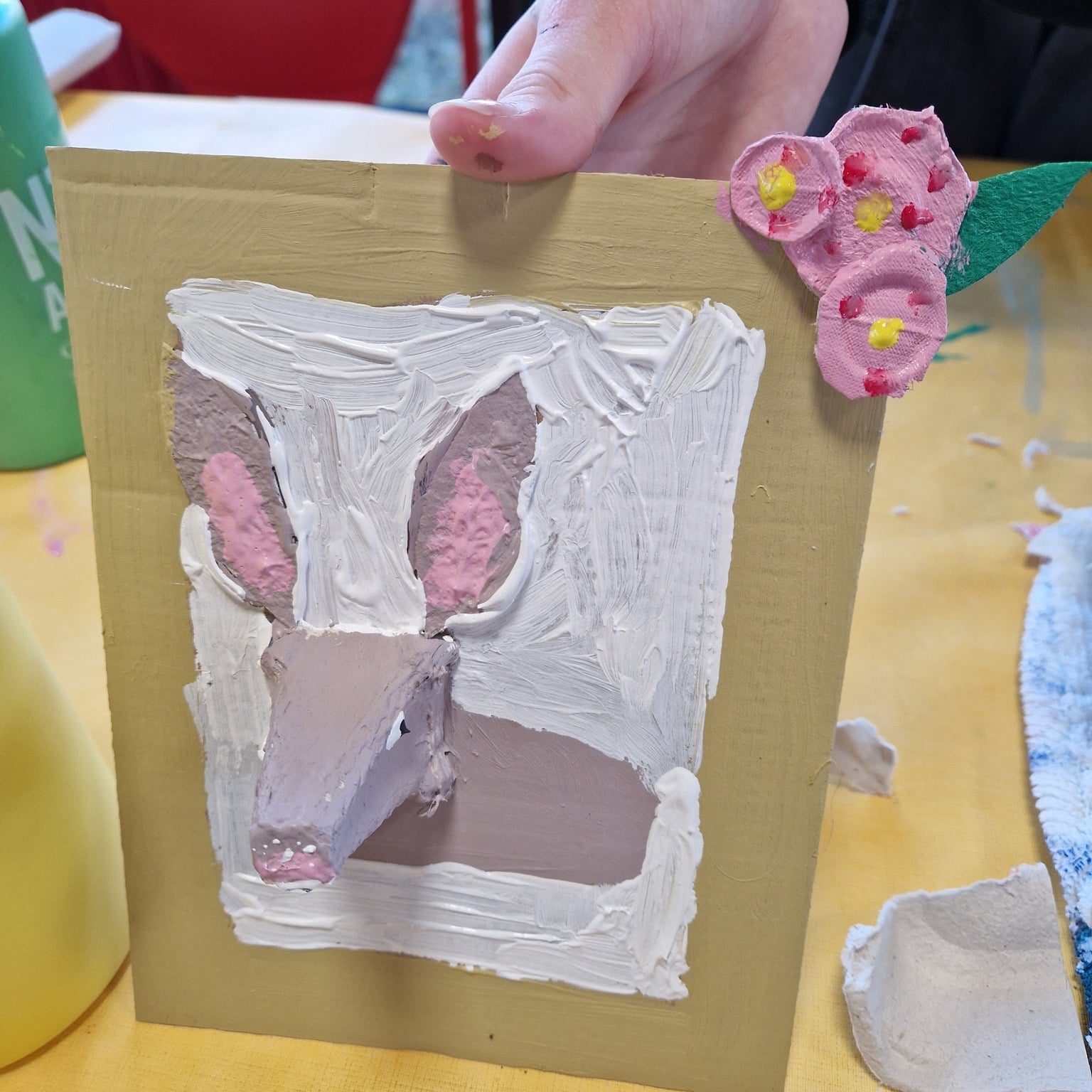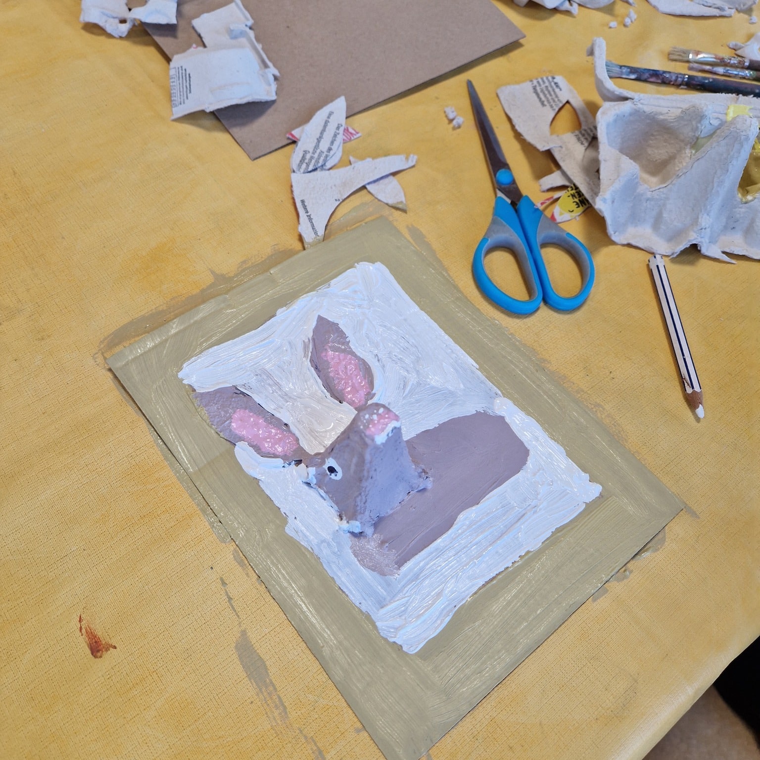 Mit jeder Menge Fantasie und Begeisterung entstanden aus Eierschachteln und Pappe tierische Kunstwerke. Ob Fuchs, Maus oder Hase – die Kinder schnitten, klebten und malten mit viel Freude. Die plastischen Nasen und Ohren bekamen mit Acrylfarben ihren ganz eigenen Charakter, und ein gemalter Rahmen rundete jedes Bild ab.