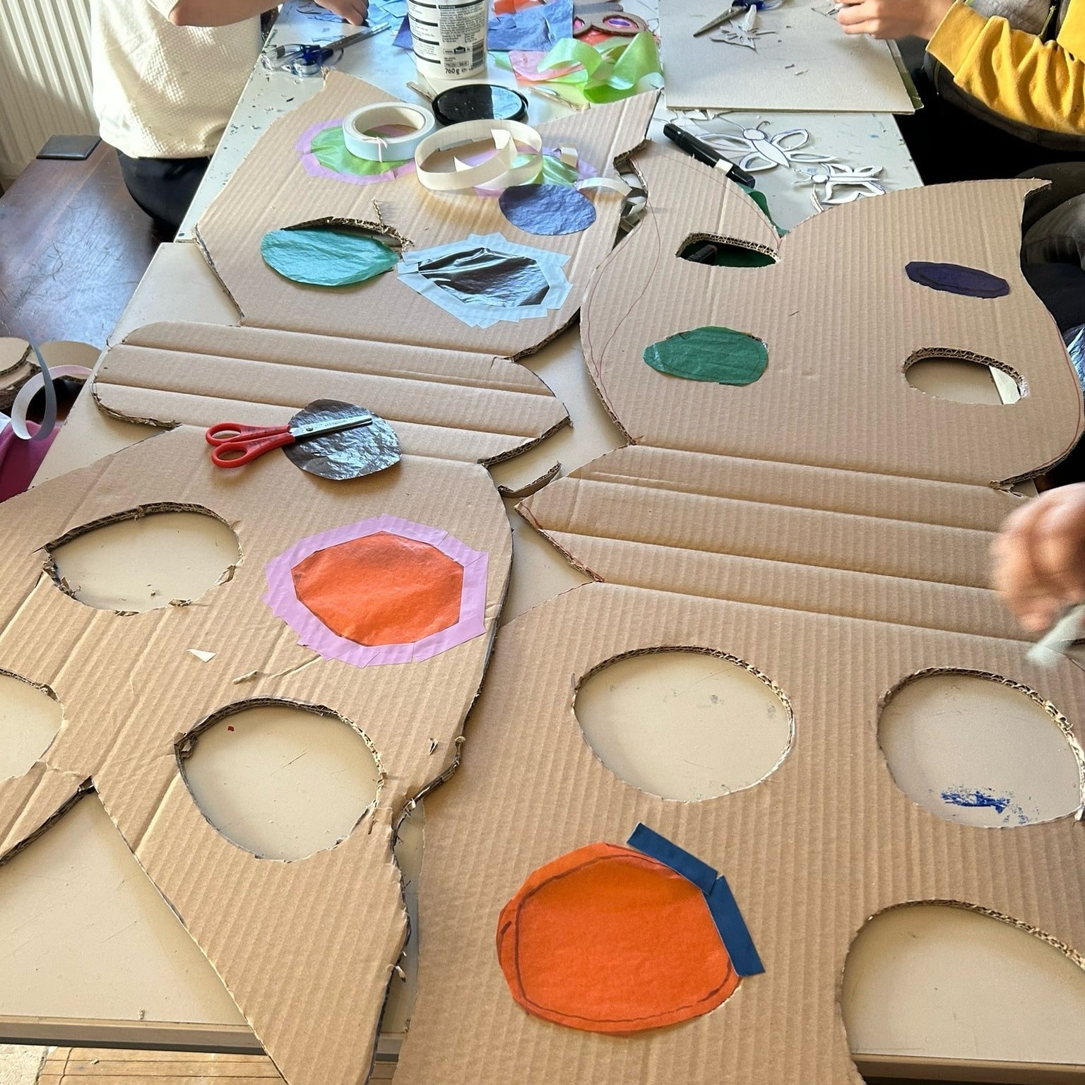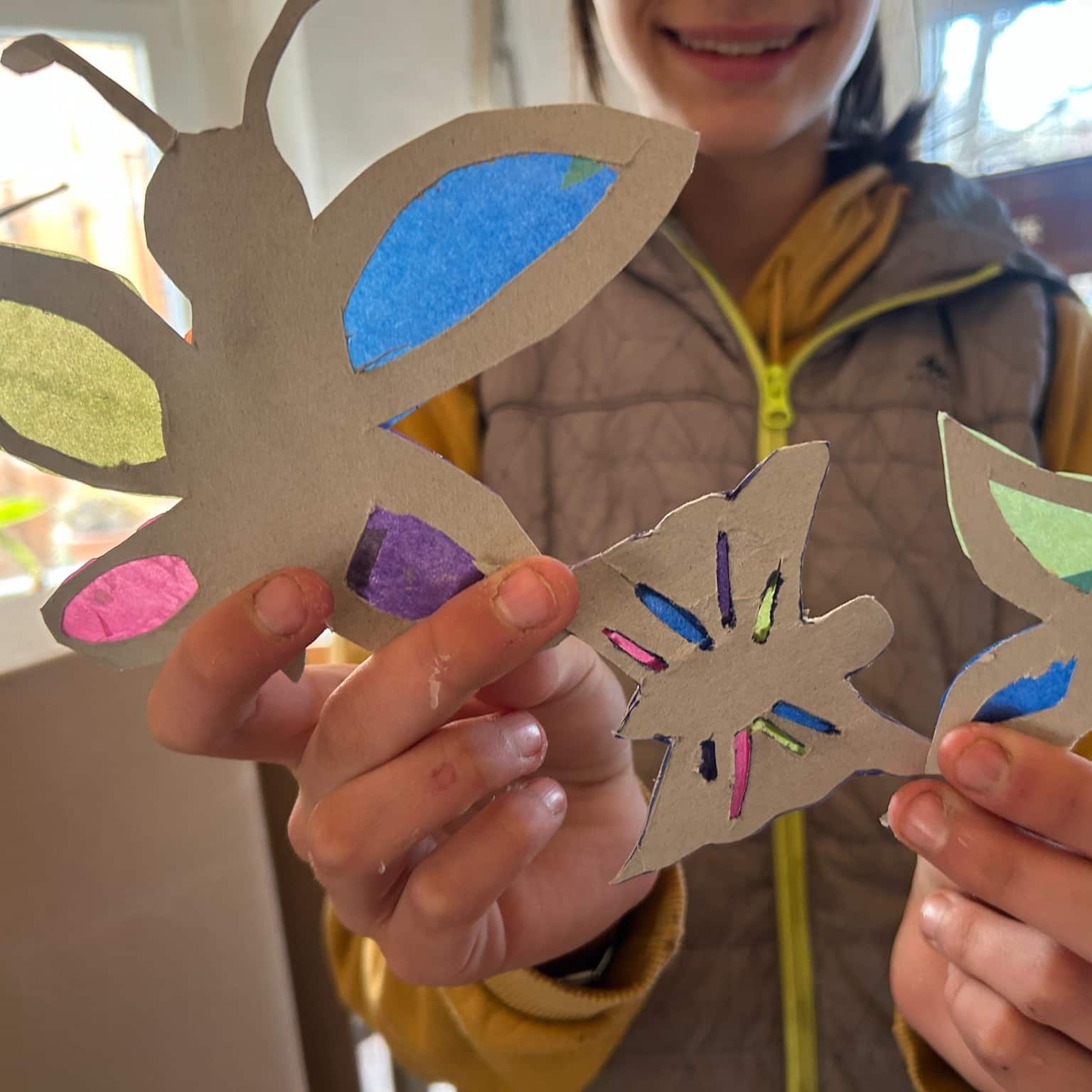 In einer kleinen, konzentrierten Runde haben wir Schmetterlinge aus Pappe und Transparentpapier entstehen lassen.
