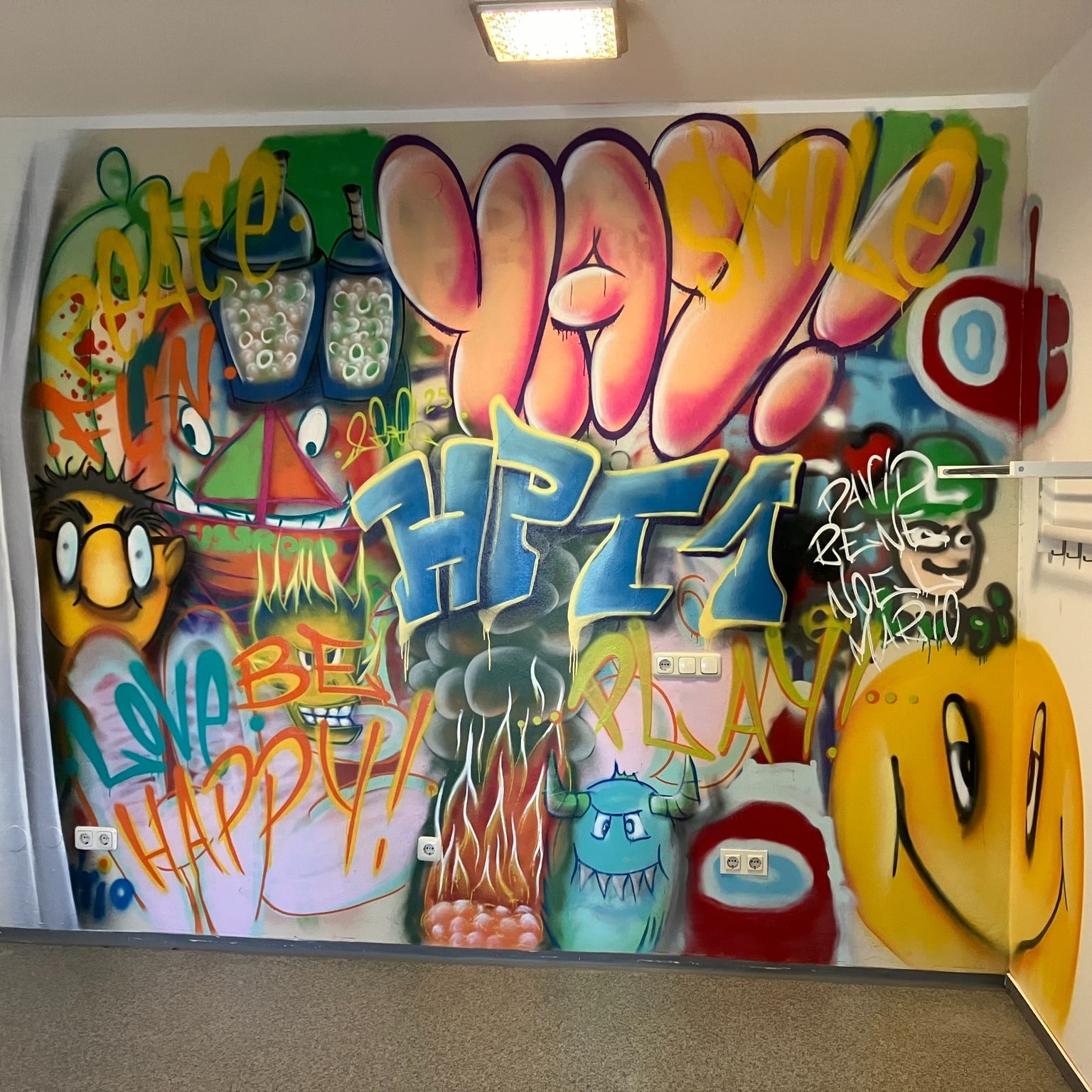 Mit viel Energie und Farbe haben wir aus einem orangen Container eine beeindruckende Graffiti-Landschaft erschaffen! 🌆✨ Verschiedene Figuren...