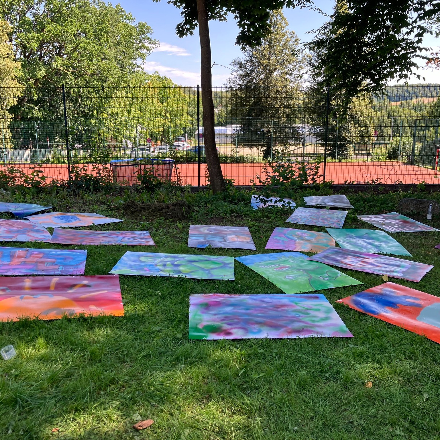 Die Teilnehmenden waren hoch motiviert und hatten richtig Lust, sich mit der Spraydose auszuprobieren. Voller Energie stürzten sie sich auf das Material und brachten die Wände bunt und kreativ zum Leuchten.