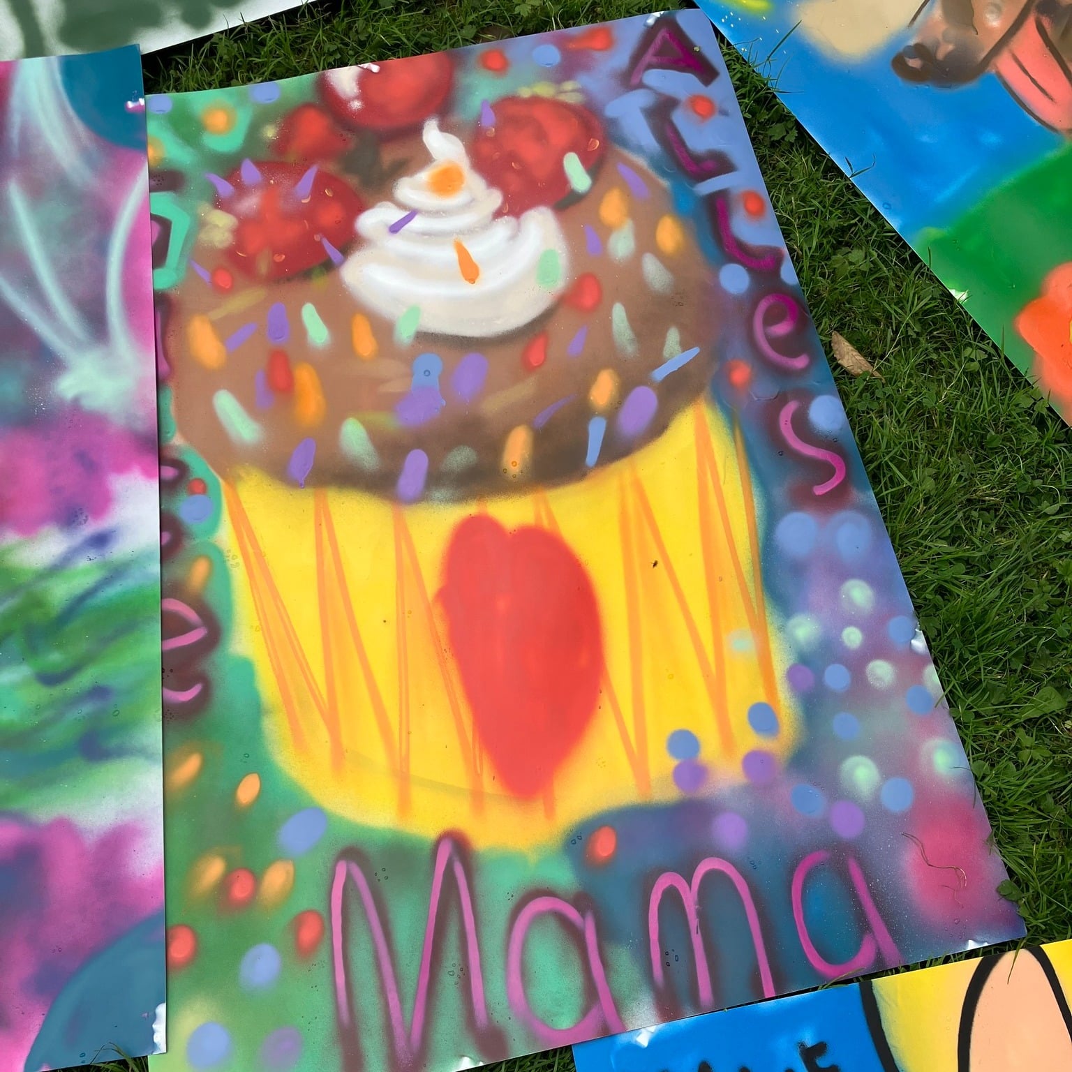 Ob freie Formen, Schriftzüge oder fantasievolle Figuren – jedes Werk zeigte den individuellen Ausdruck der Kinder und Jugendlichen und füllte den Raum mit Farbe, Freude und Begeisterung.