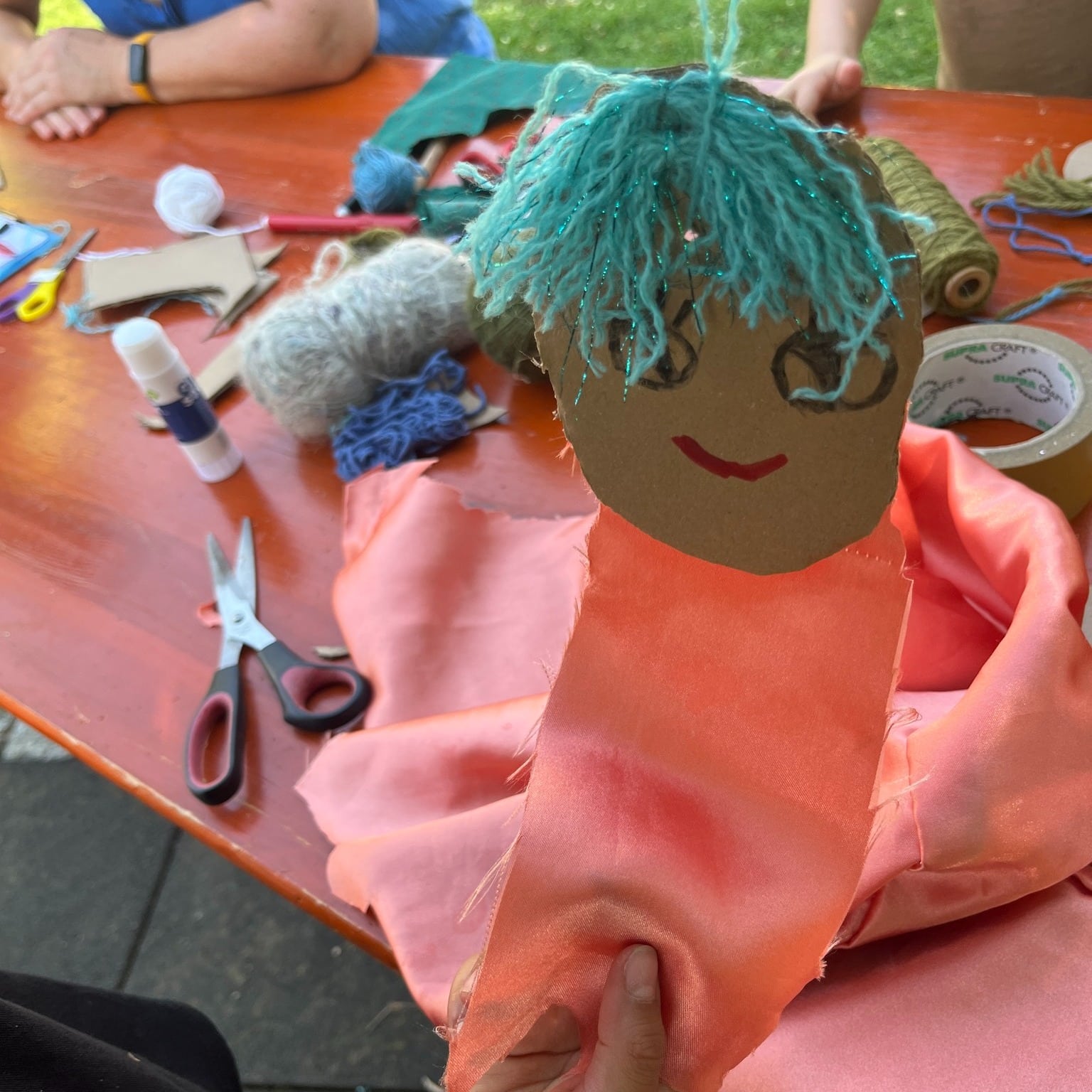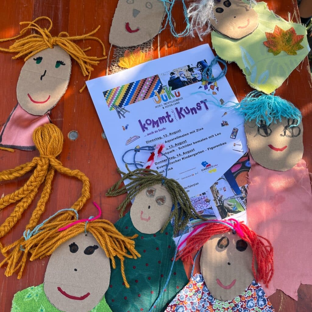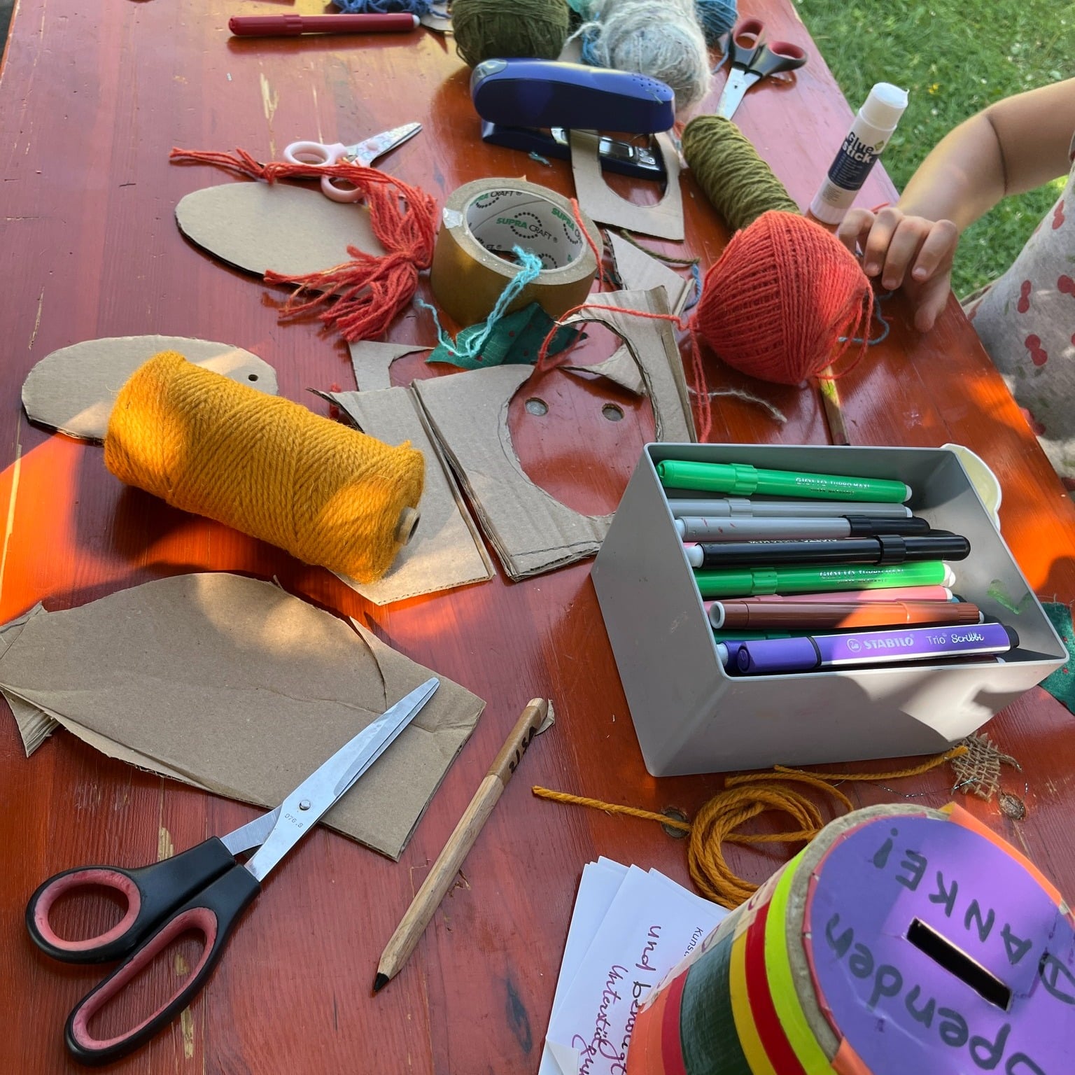 Bei sommerlicher Hitze waren zwar viele im Schwimmbad, doch die, die dabei waren, hatten umso mehr Freude. Mit Stoff, Pappe und bunten Stiften entstanden fantasievolle Figürchen, und nebenbei wurde viel gelacht, erzählt und gesprochen. Kunst wurde hier zum Ort der Begegnung, Kreativität und des Miteinanders. 🌞✨