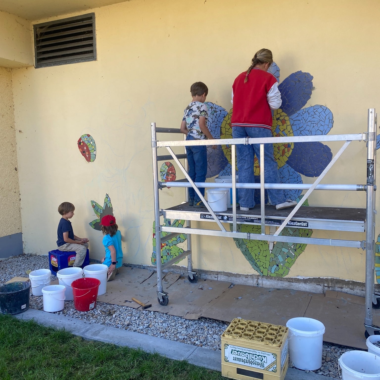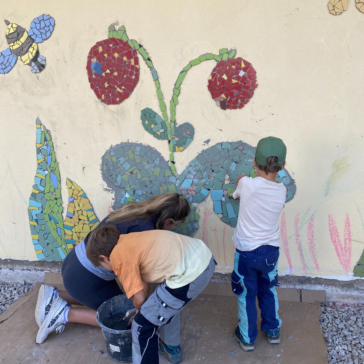 Mit viel Geduld, Motivation und Teamgeist gestalteten Kinder und Jugendliche in Schirnding ein beeindruckendes Mosaik aus Blumen, Marienkäfern und Schmetterlingen für die Rathauswand. Besonders die älteren Teilnehmenden ließen sich von der Mosaiktechnik begeistern und arbeiteten mit Ausdauer und Stolz an ihrem Kunstwerk.