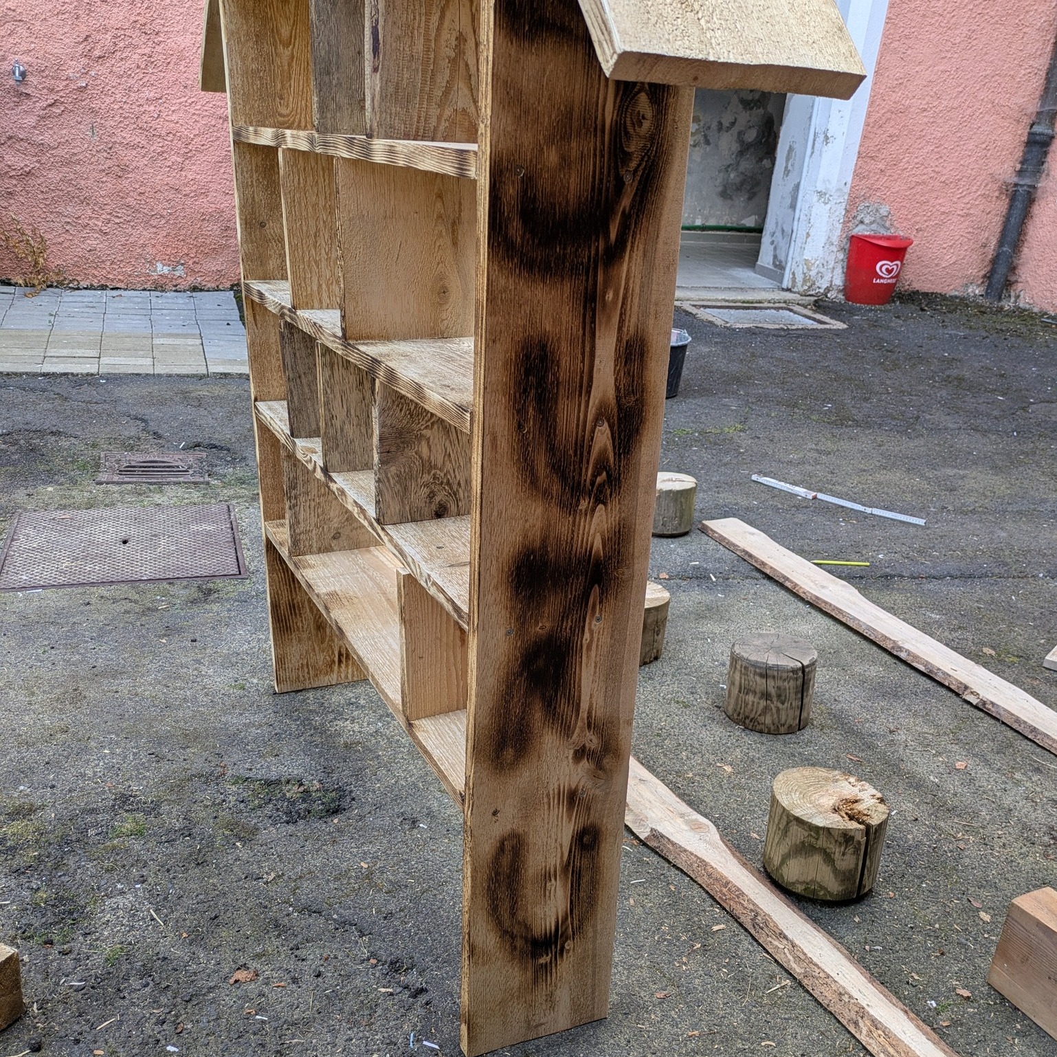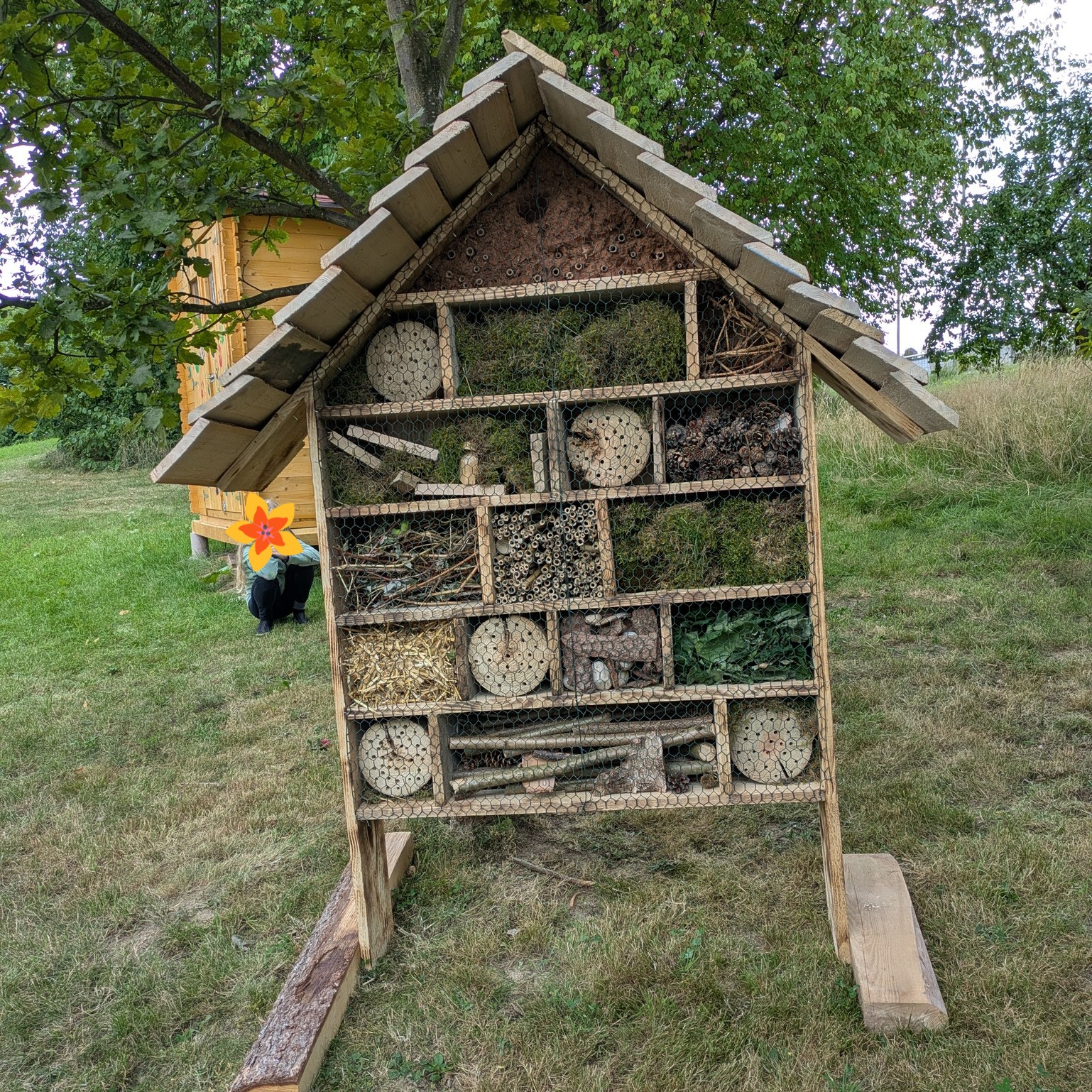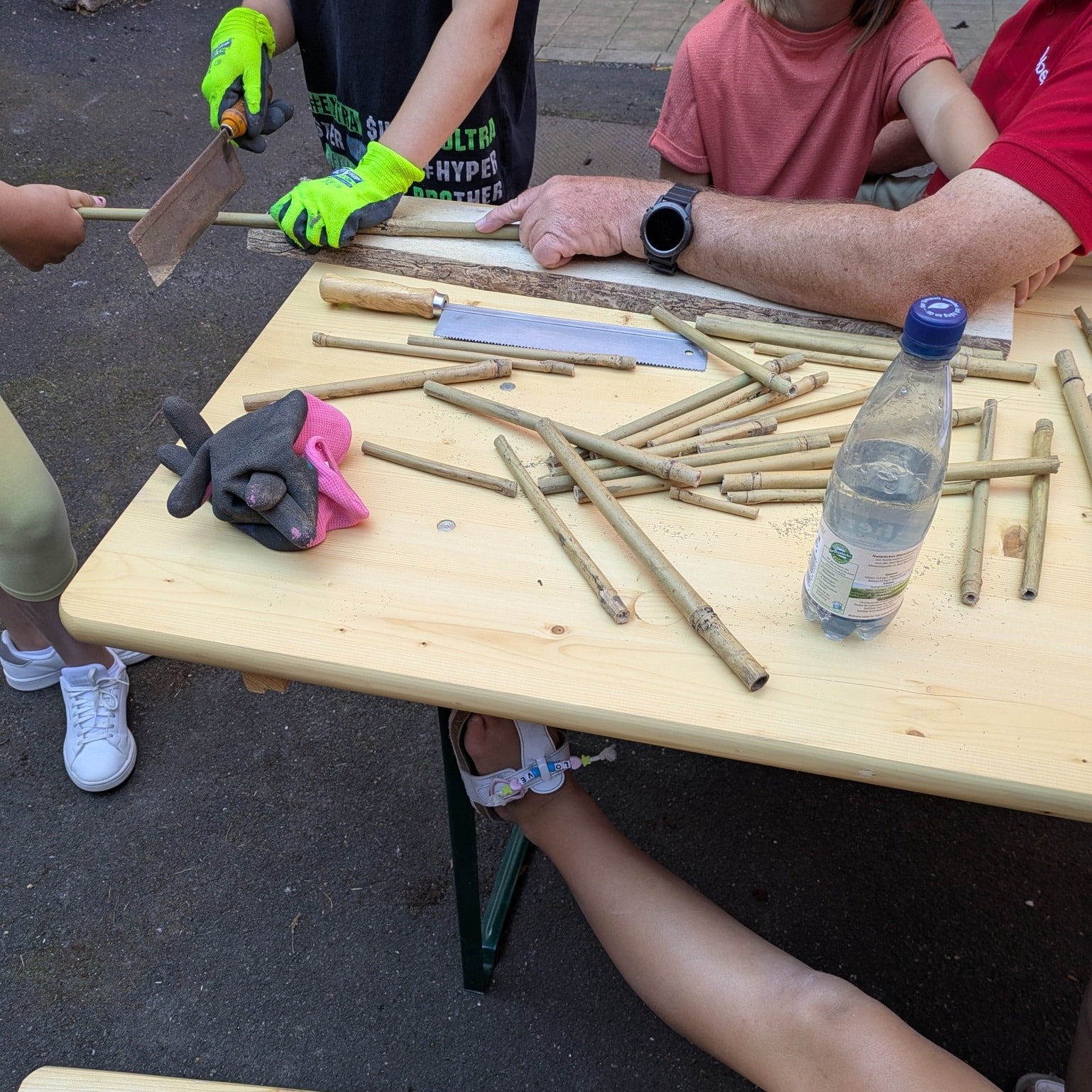 Drei Tage lang wurde gebohrt, gesägt, geschraubt und geschliffen – mit voller Begeisterung und jeder Menge Teamgeist entstand ein großartiges Insektenhotel! 🔩🪚